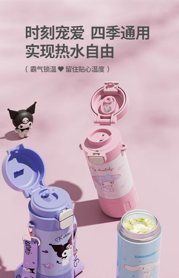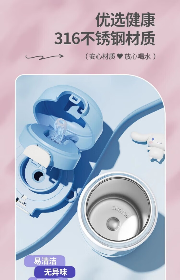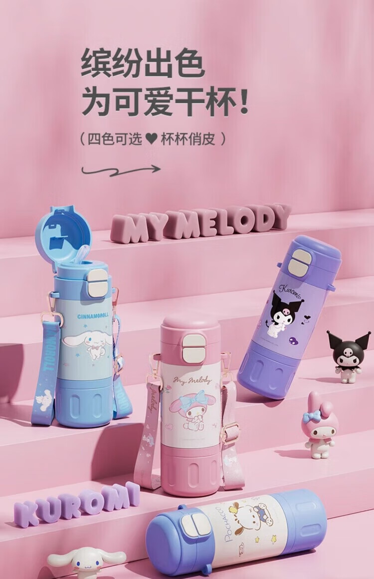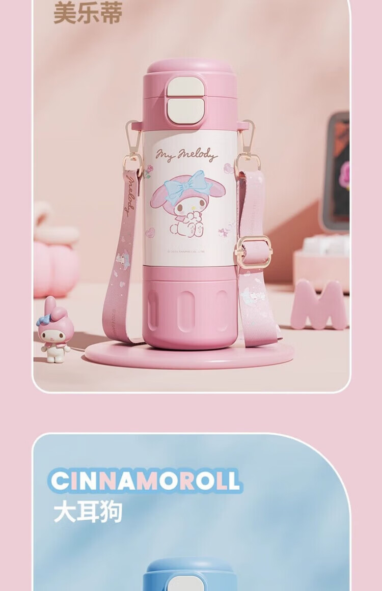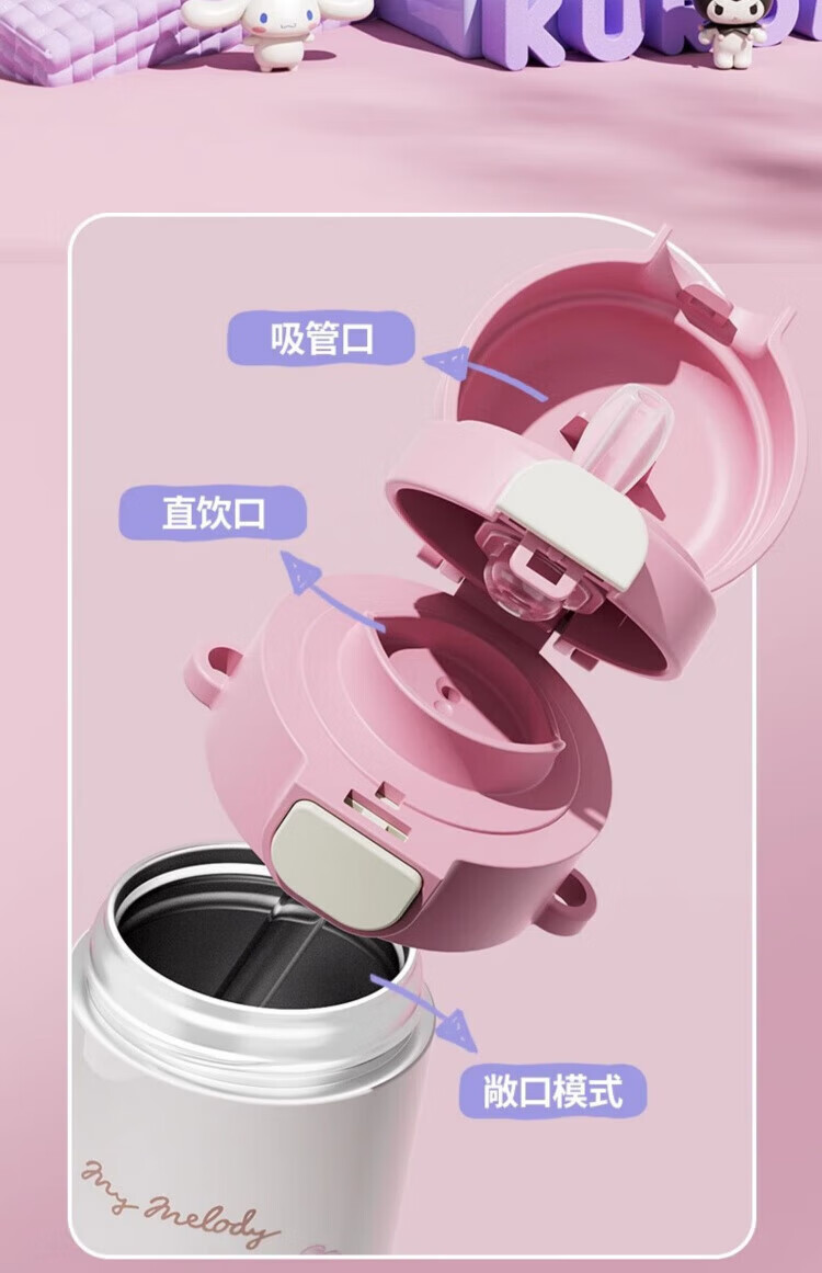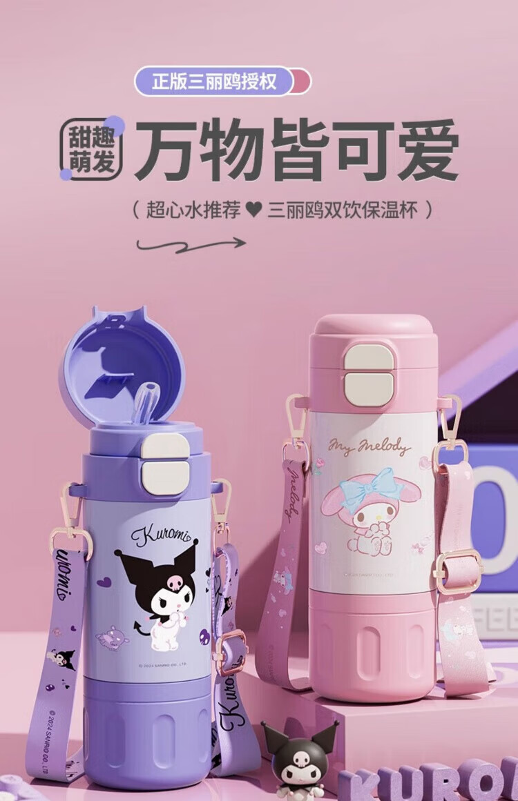 DEATKN德国高端儿童保温水杯女孩童小学生上学吸管双饮杯2025新款一年级 美乐蒂【316可放书包侧兜】