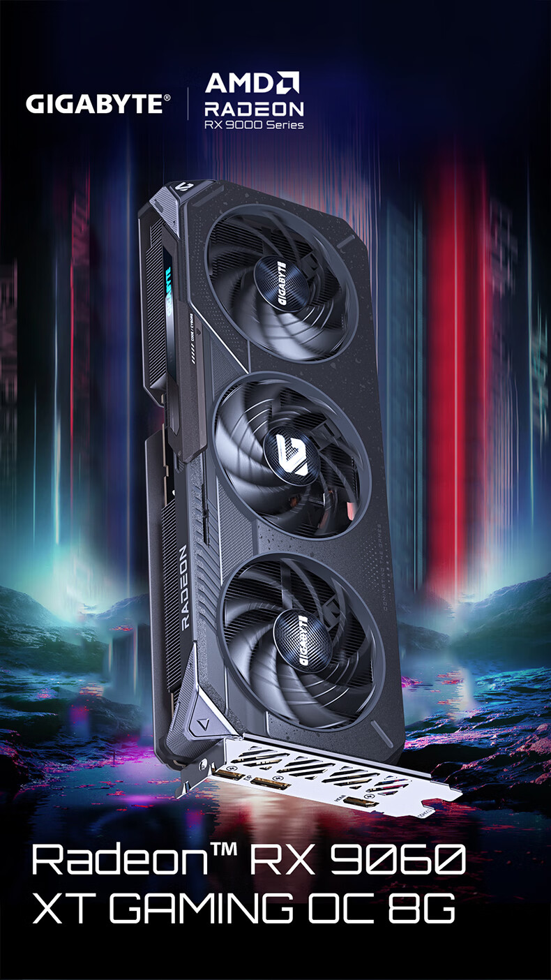 技嘉(GIGABYTE)9060XT显卡 魔鹰 AMD Radeon RX 9060 XT GAMING OC 8G 电竞游戏设计智能AI电脑独立显卡