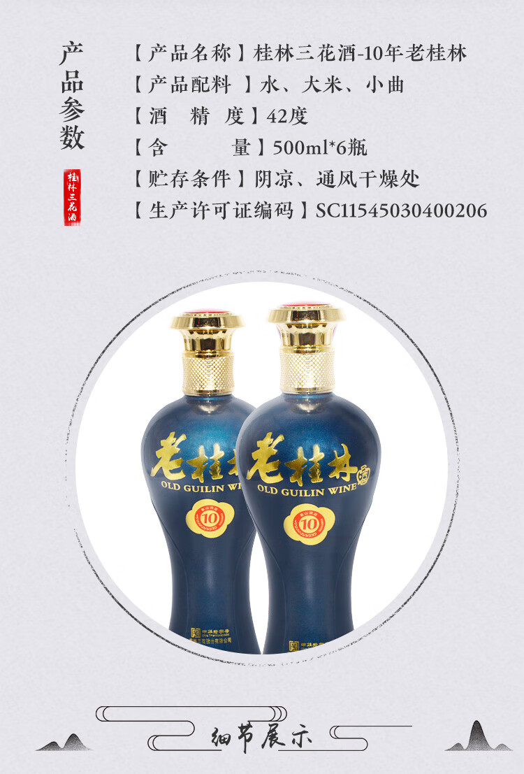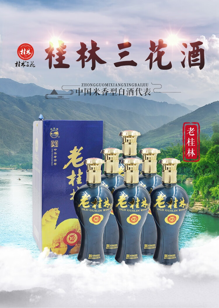 桂林三花酒 老桂林陈酿10 米香型白酒 42度 500ml*6瓶整箱装 送礼