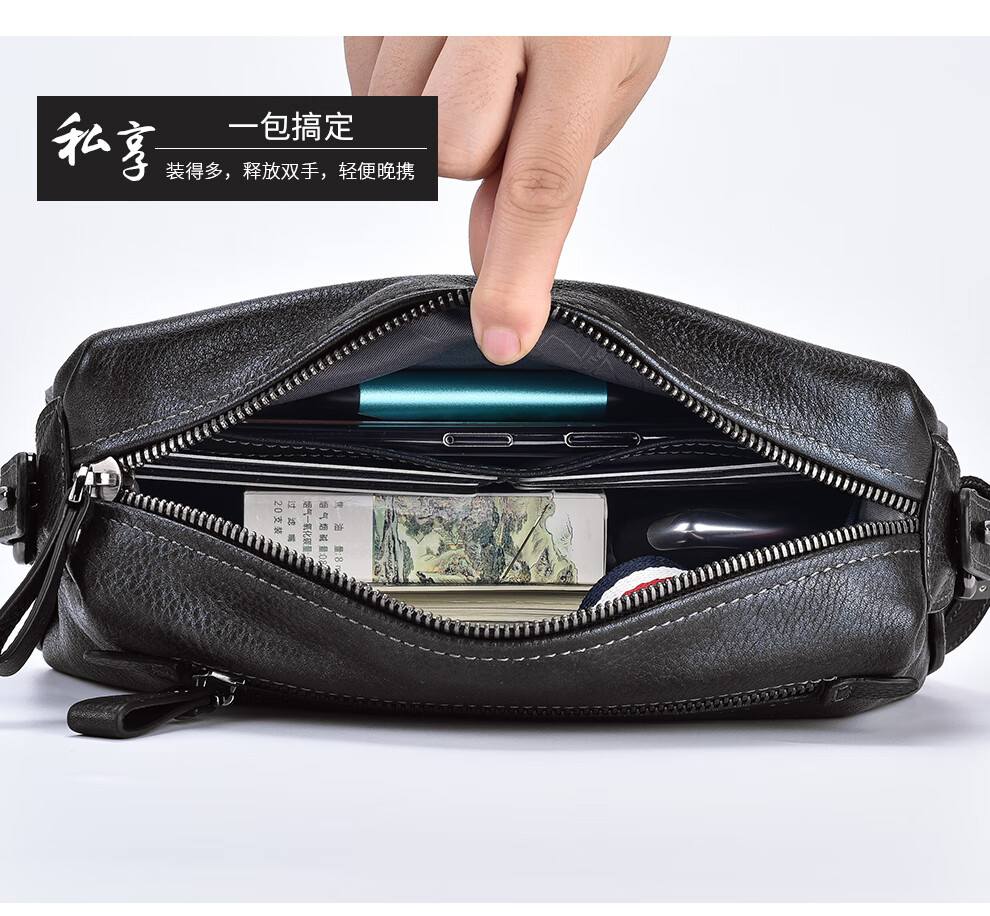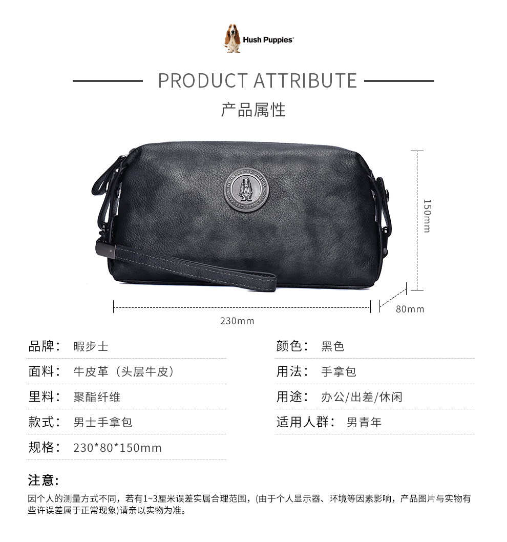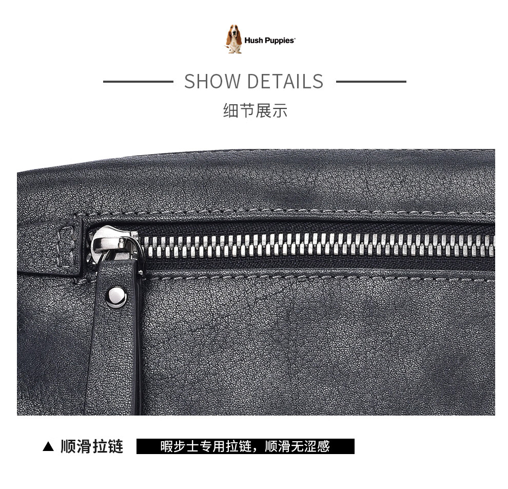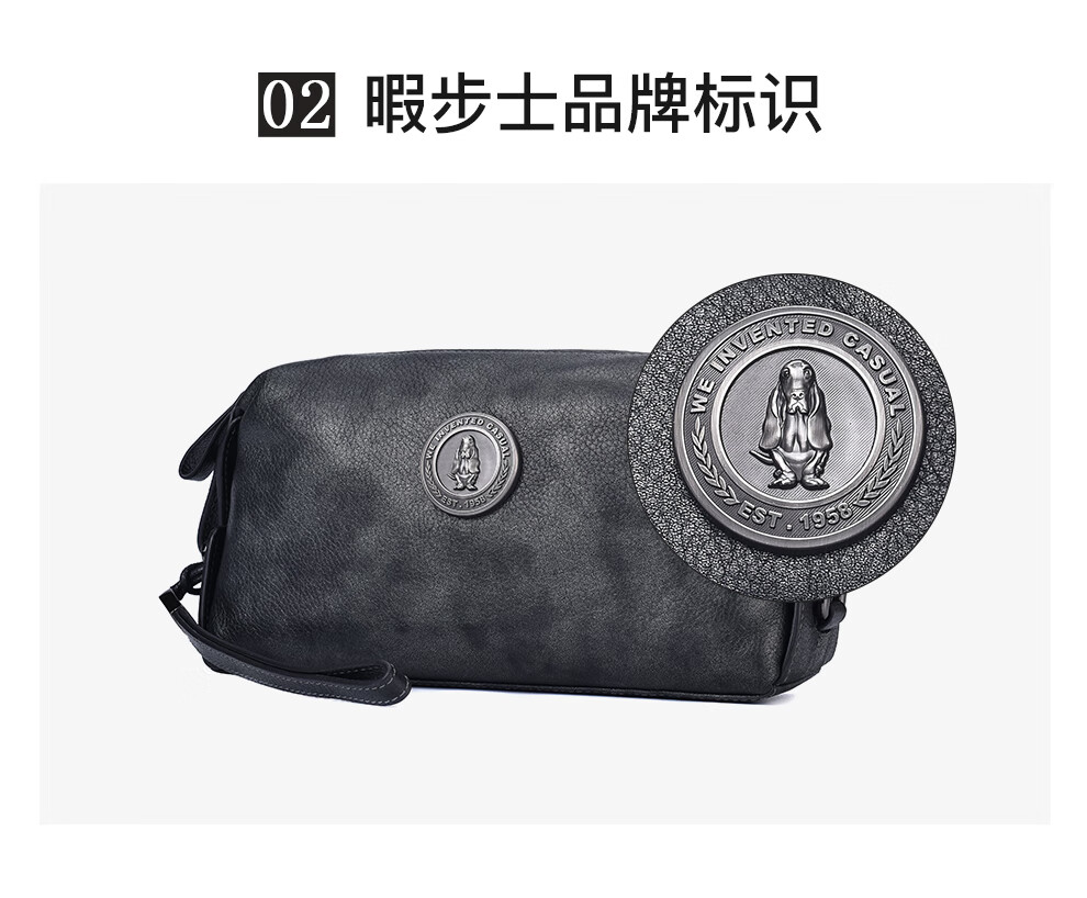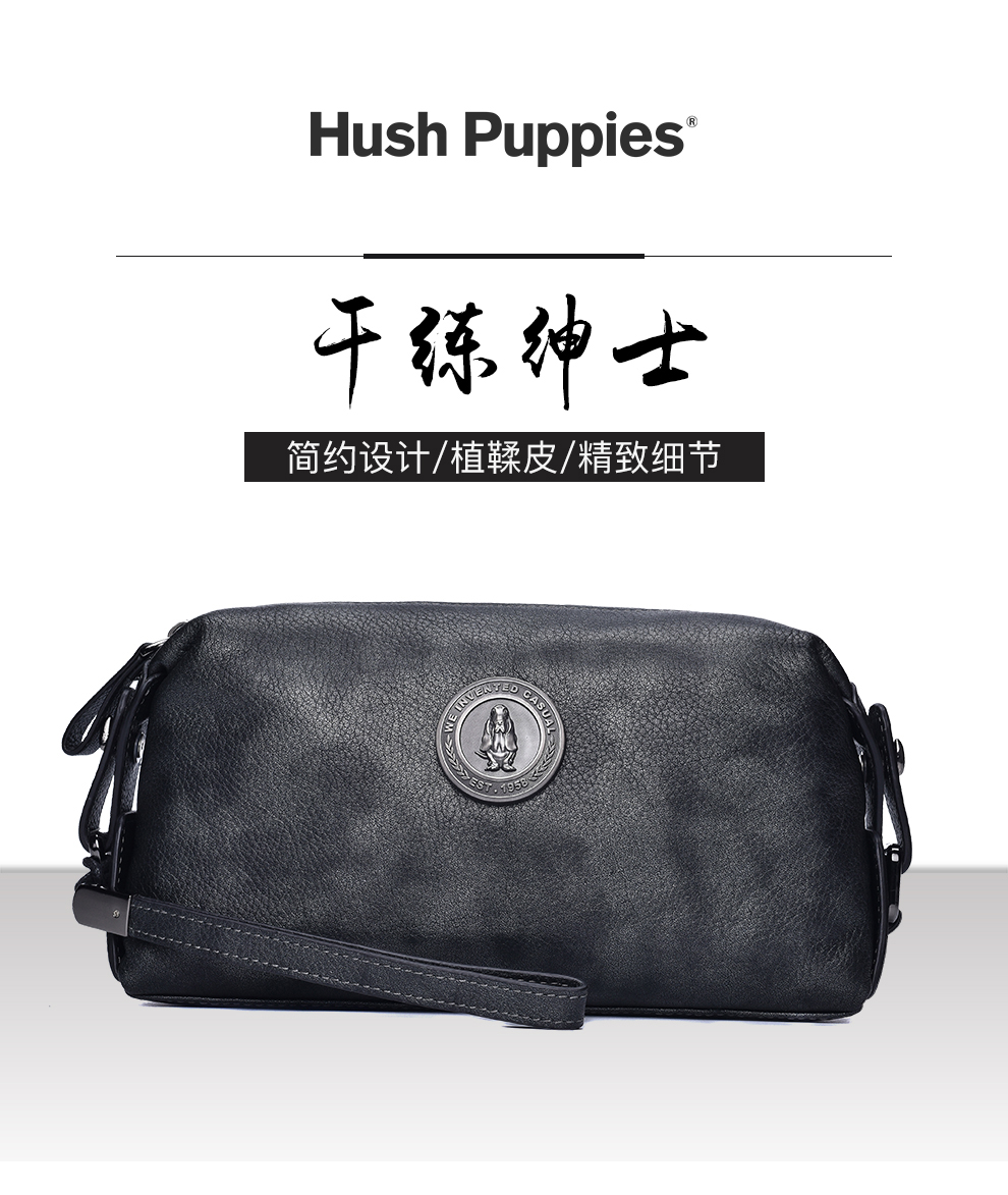 暇步士(Hush Puppies) 手拿包包头层牛皮大容量休闲商务男包银灰色送男朋友生日礼物