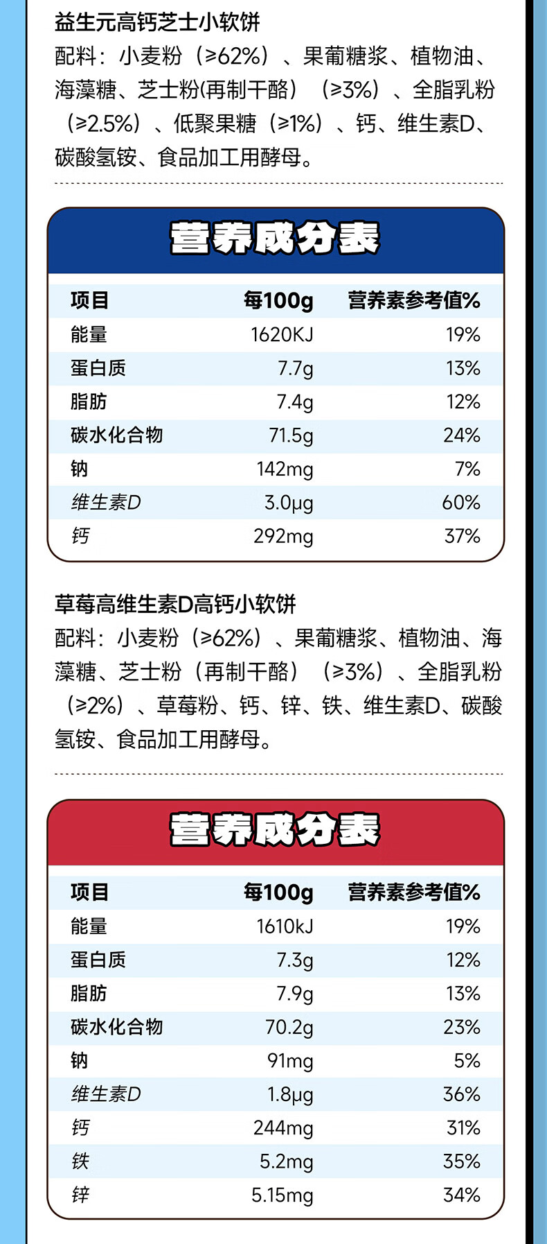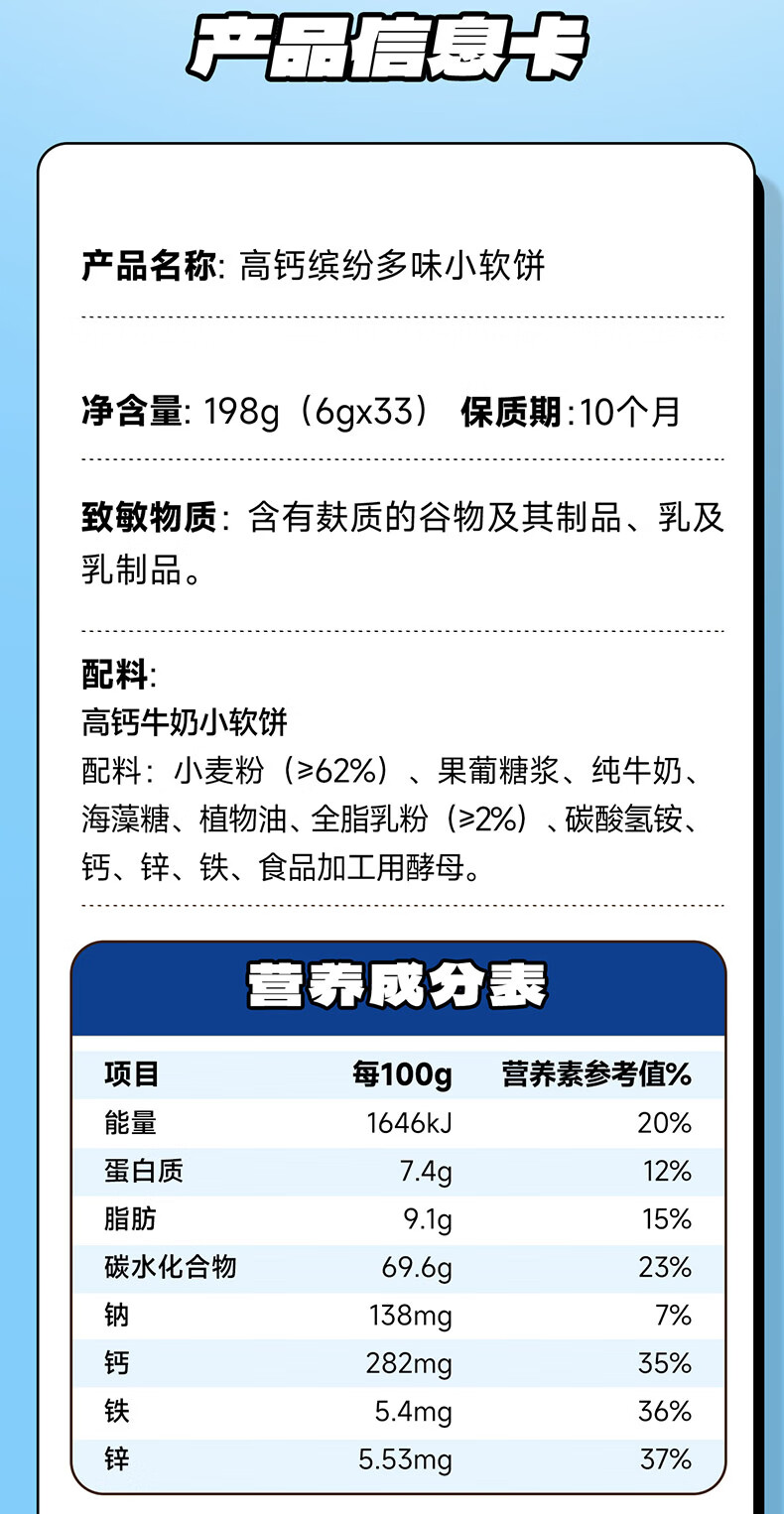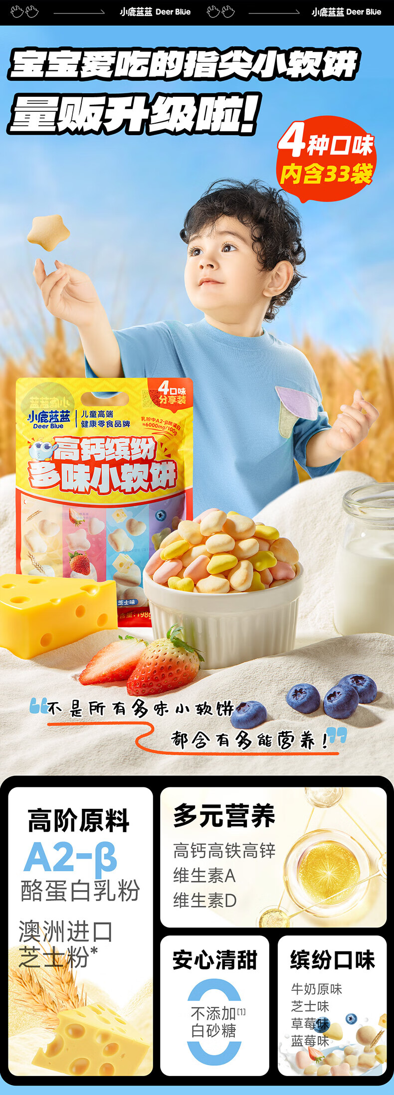 小鹿蓝蓝高钙缤纷多味小软饼 宝宝儿童零食饼干 糕点点心代餐198g
