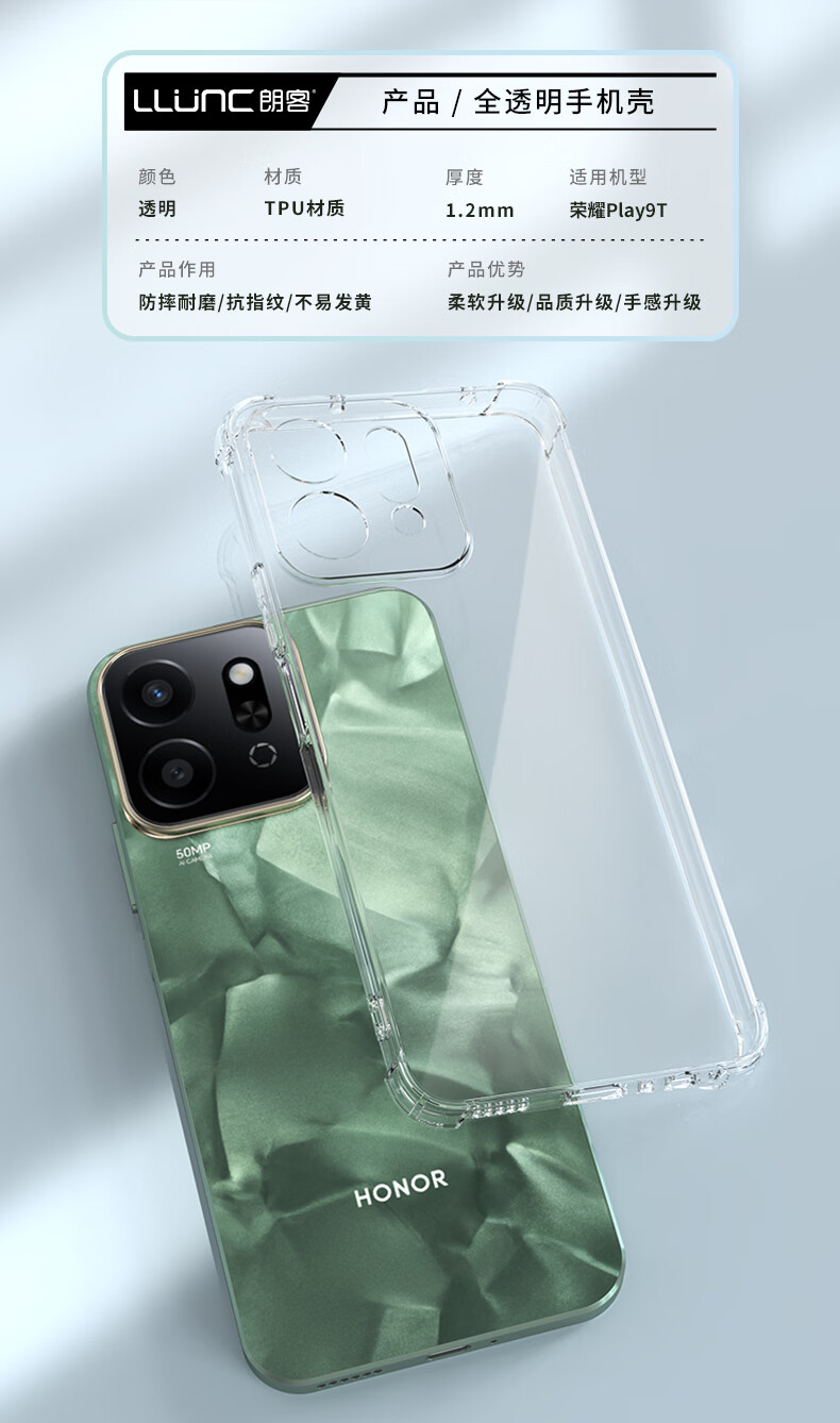 朗客适用荣耀Play9T手机壳play9t透明壳镜头全包四角气囊防摔保护壳简约TPU软壳裸机手感男女通用