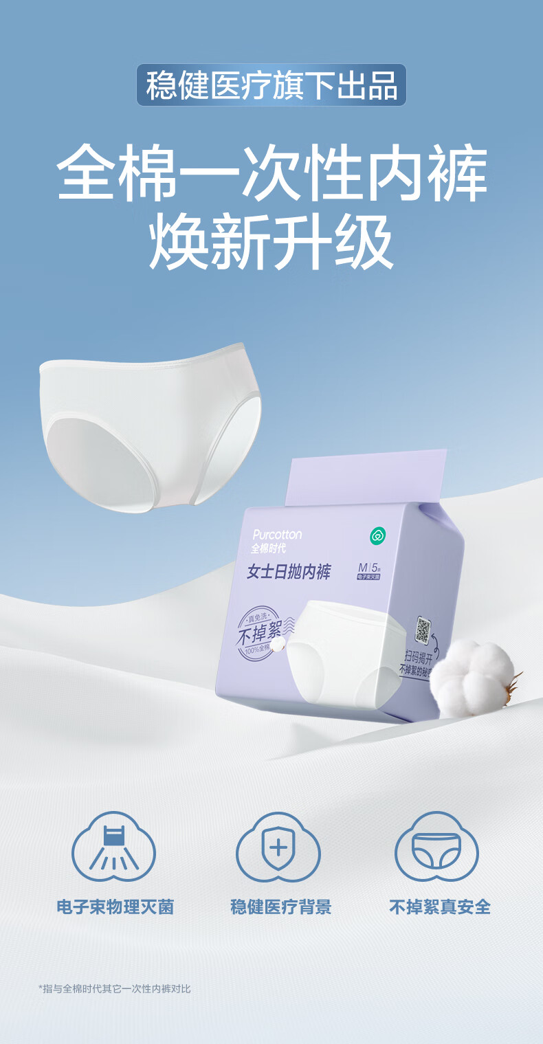 全棉时代女士一次性内裤纯棉无菌月子产妇旅行免洗不掉絮电子束灭菌内裤