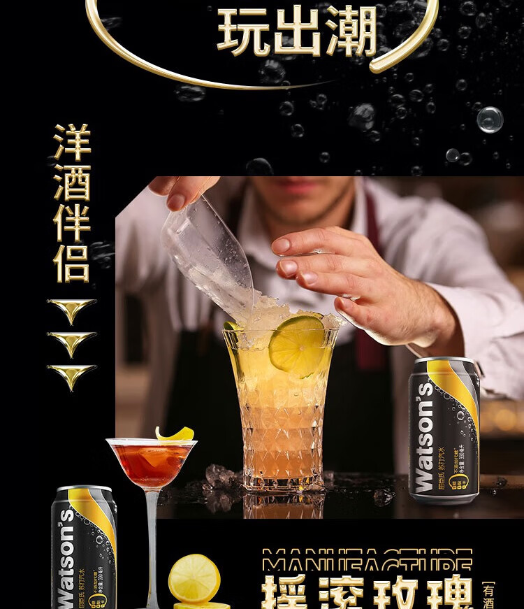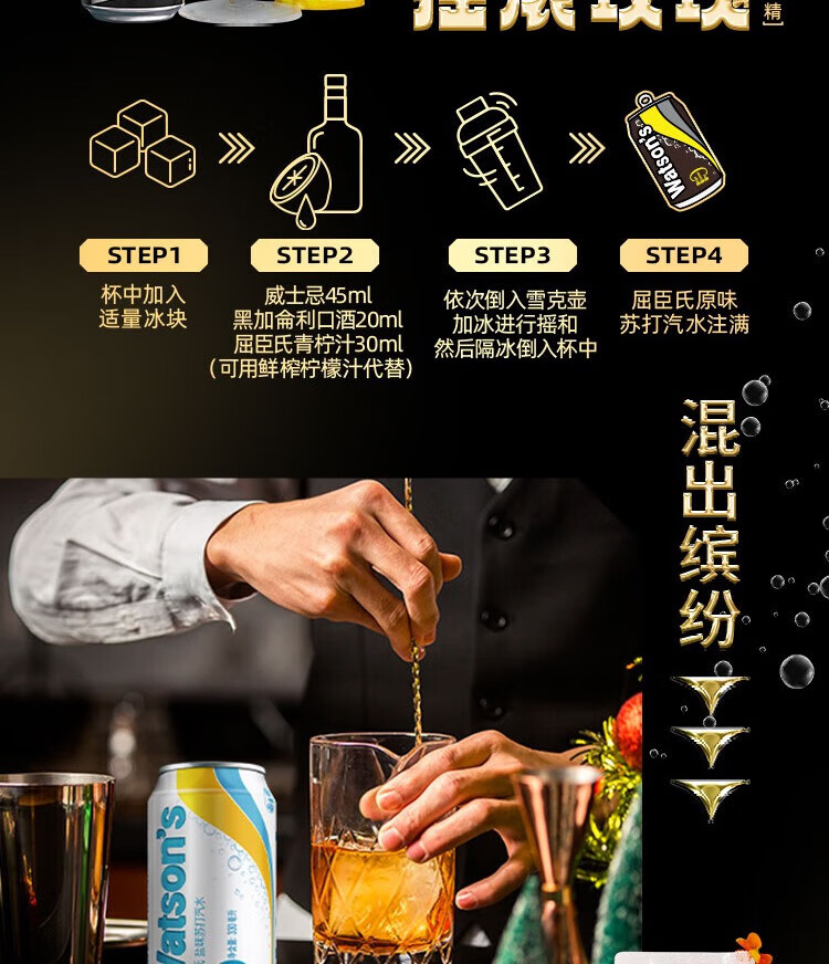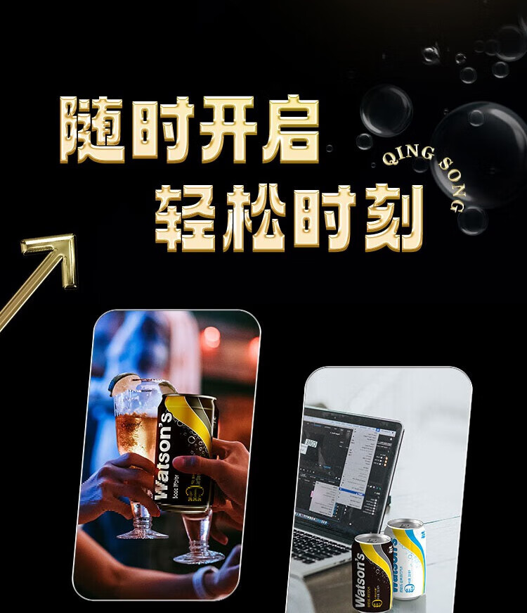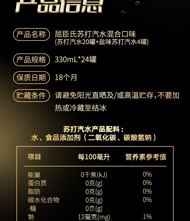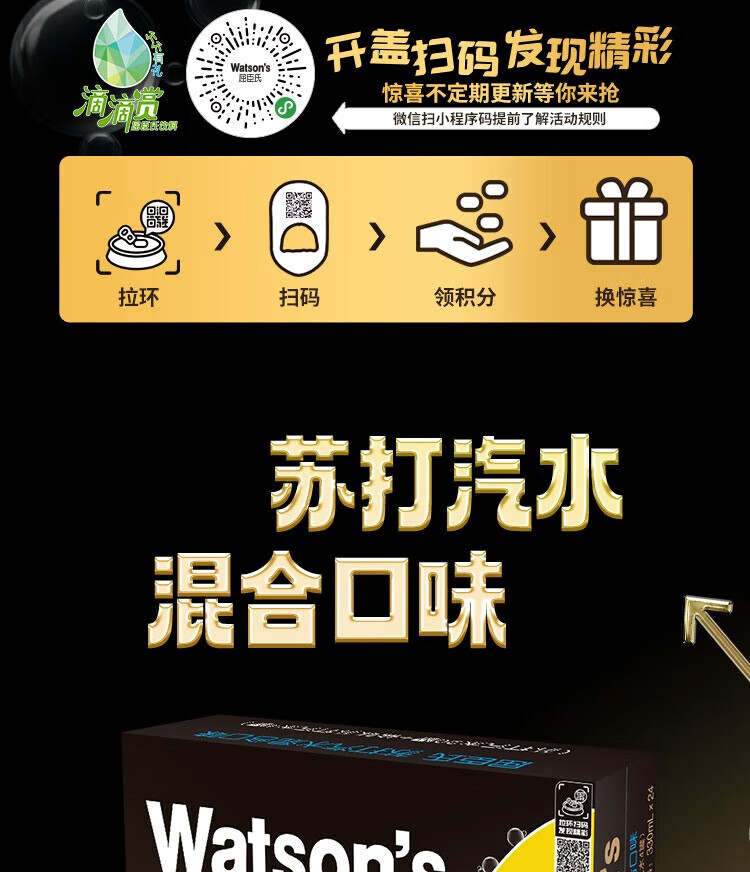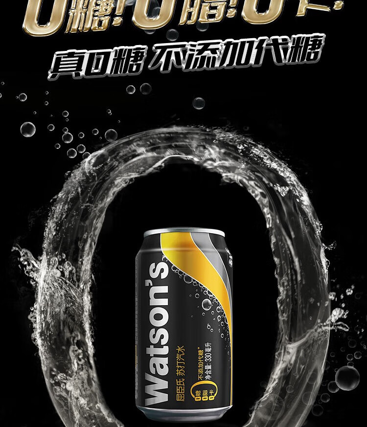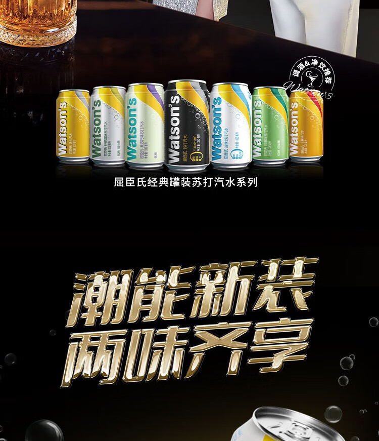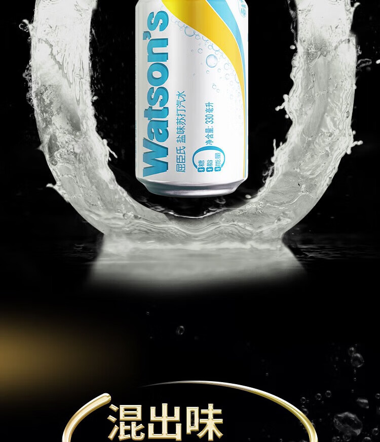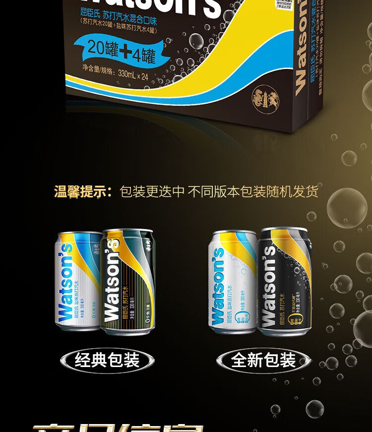 屈臣氏(Watsons)苏打水原味20罐送盐味4罐气泡水饮料调酒推荐330ml*24罐整箱