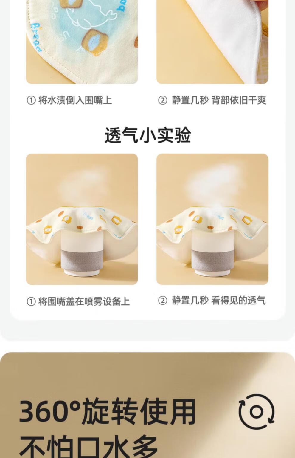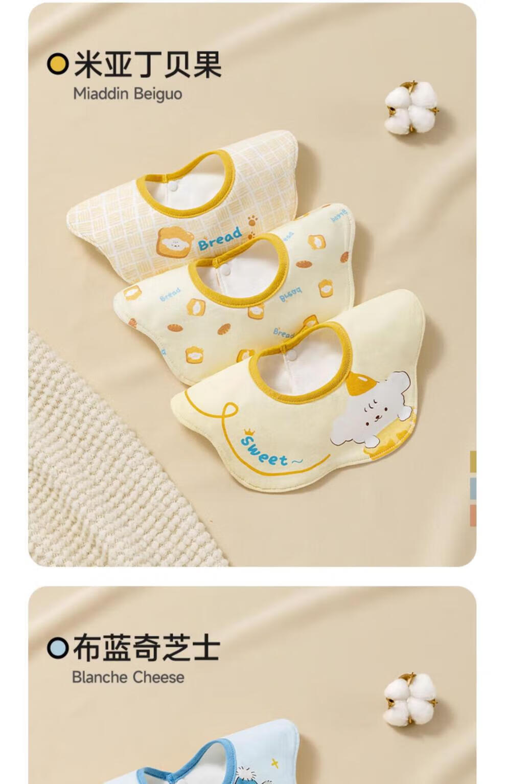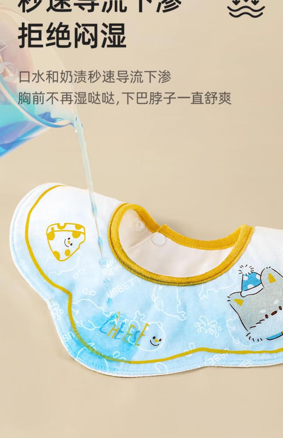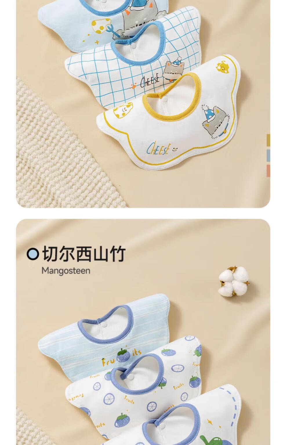 贝肽斯婴儿口水巾围嘴宝宝防吐奶纯棉防水新生儿饭兜围兜 切尔西山竹-防水*导湿速干3条装