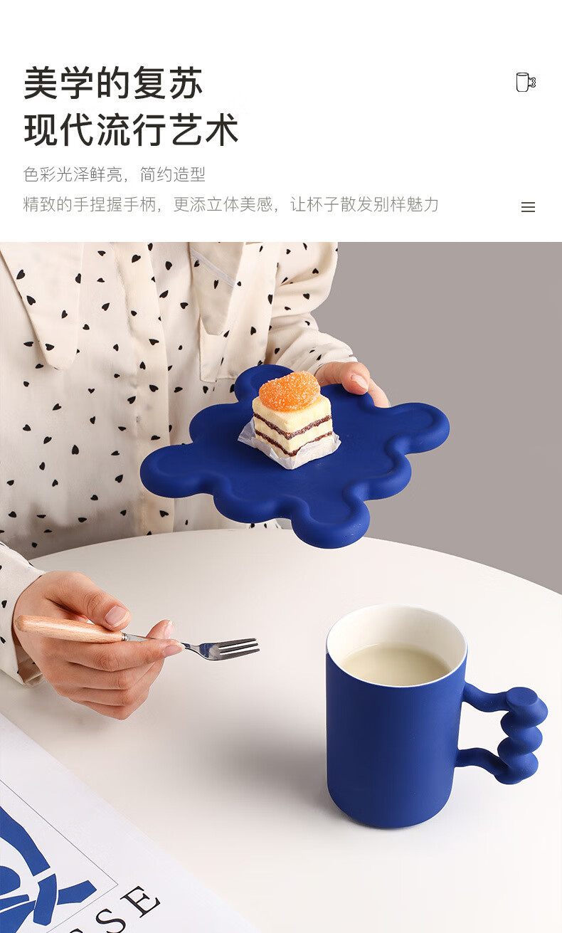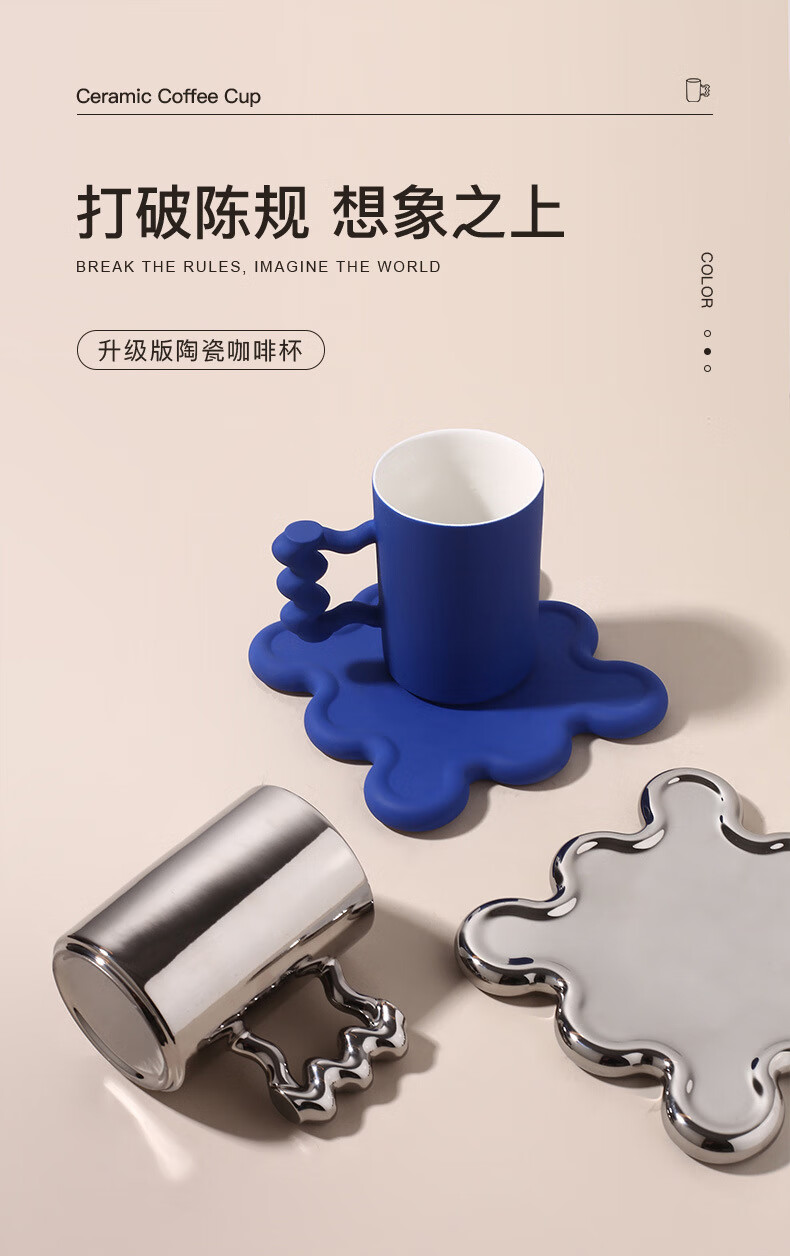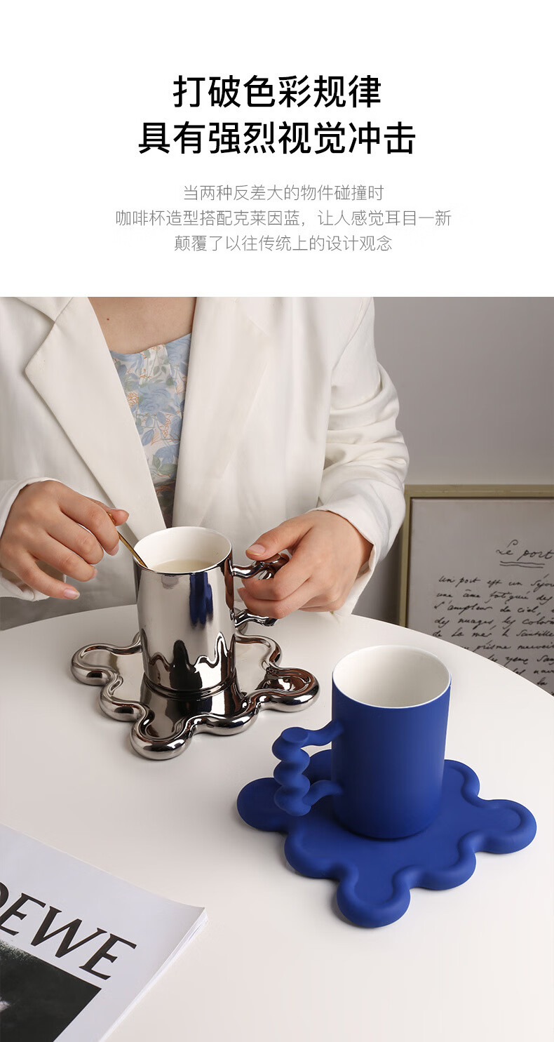 孟菲斯咖啡杯景德镇创意陶瓷家居 酒柜装饰摆件七夕情人节礼品 克莱茵蓝咖啡杯(不含咖啡勺)