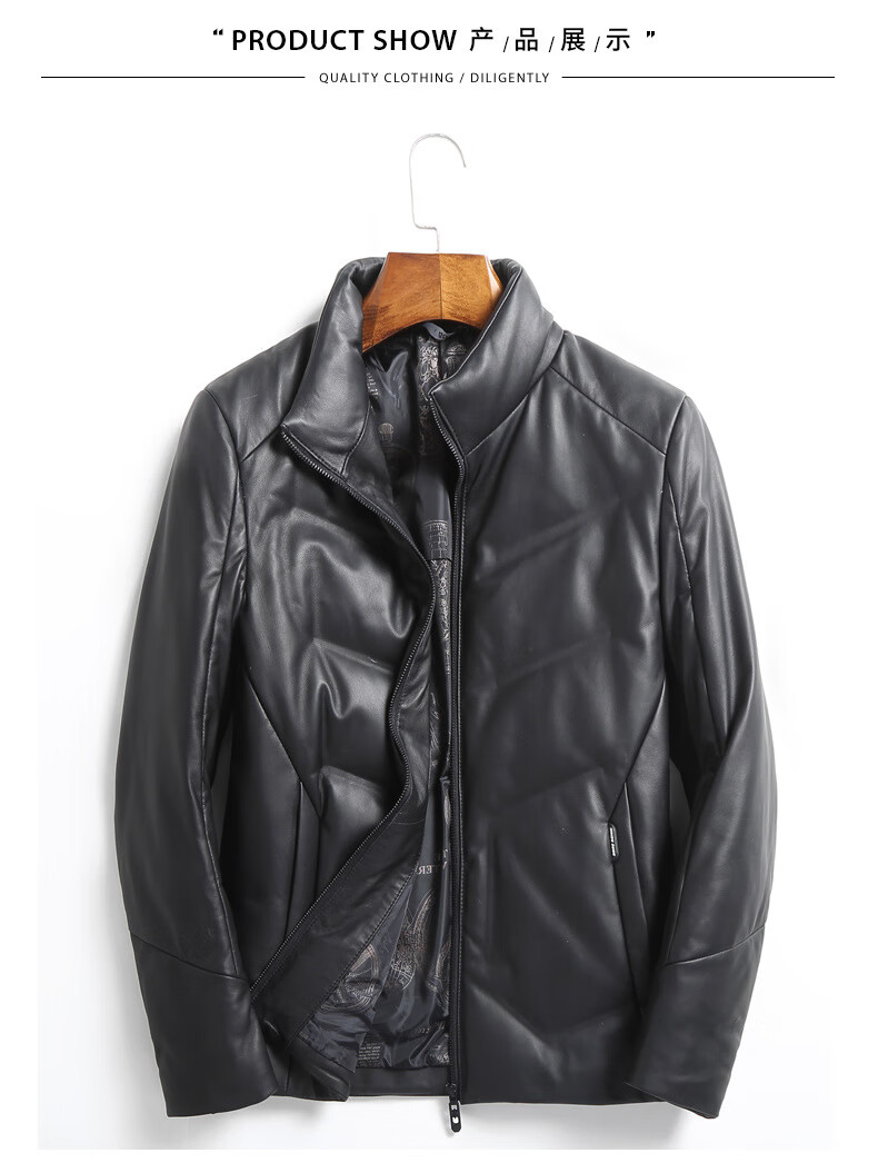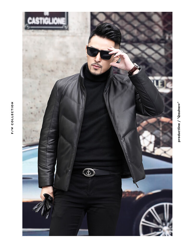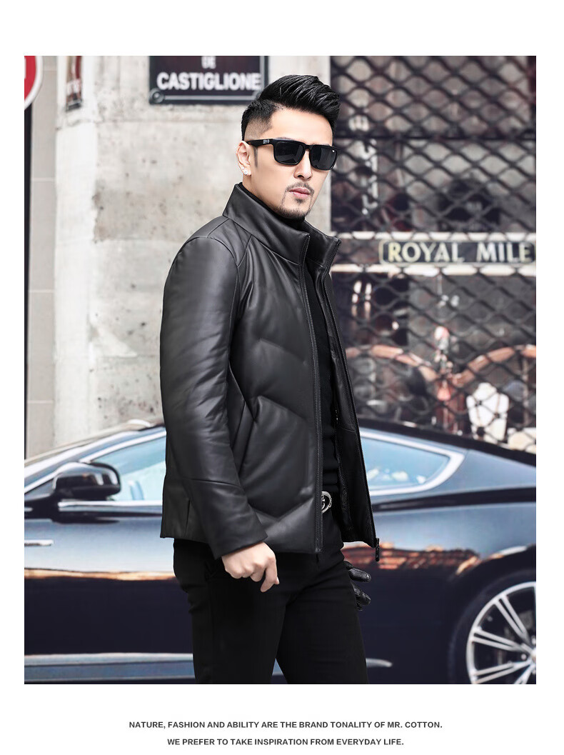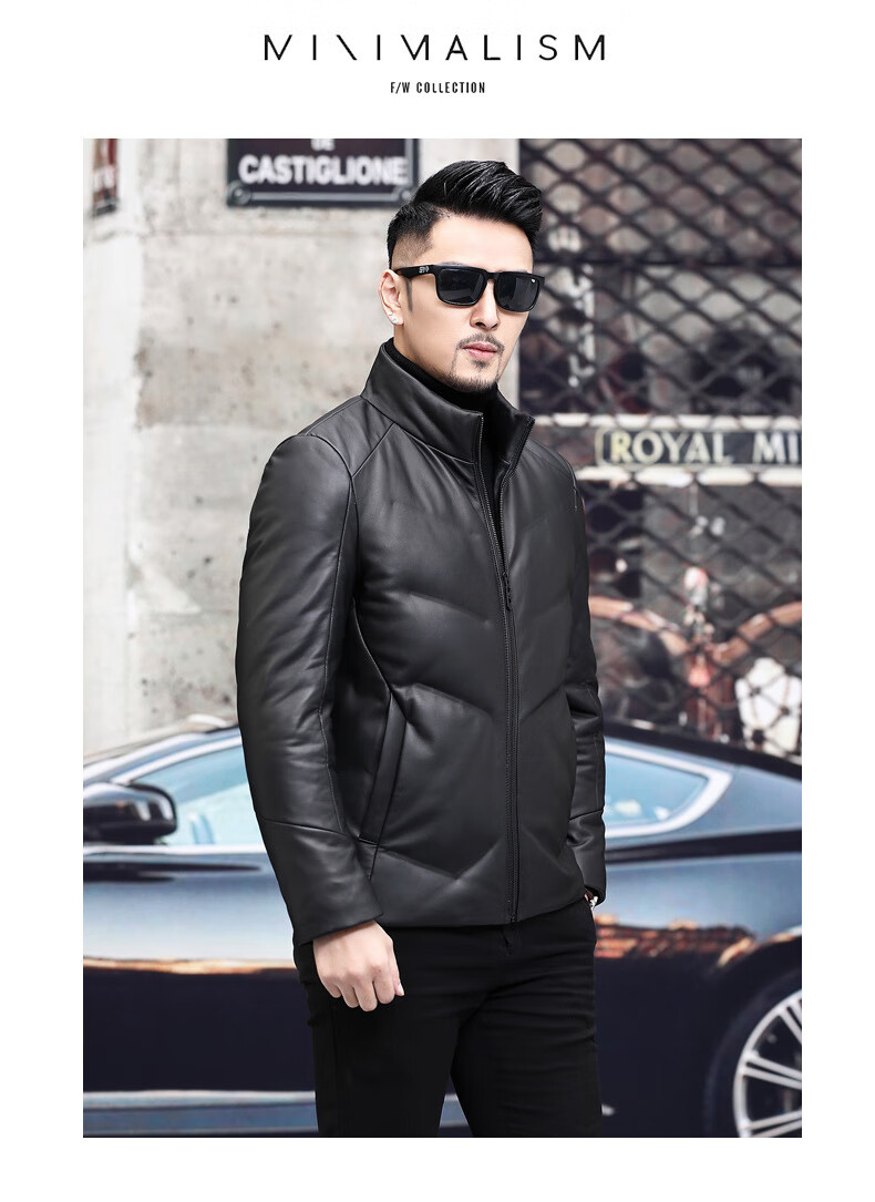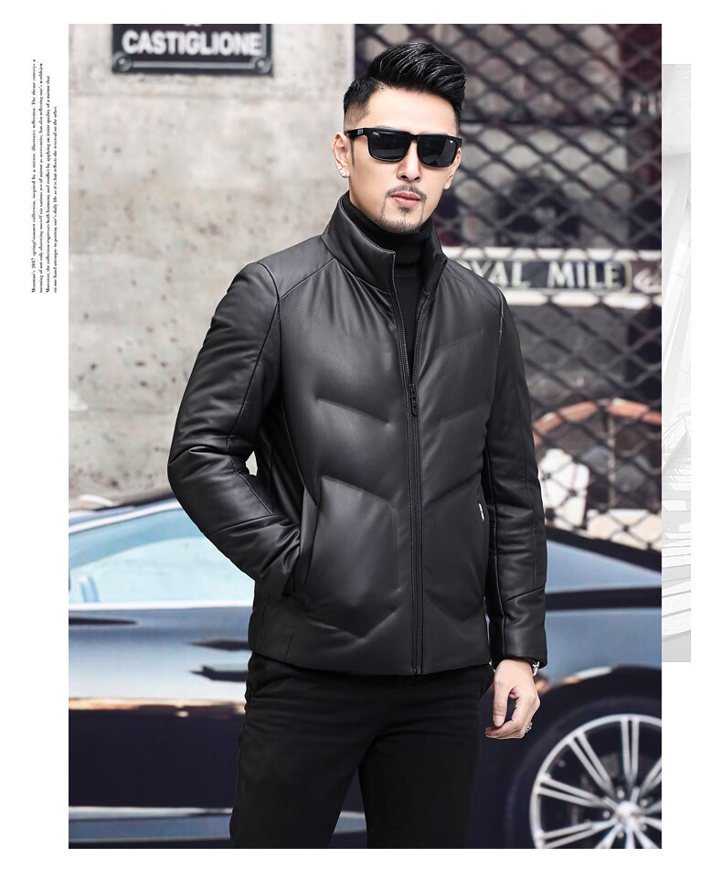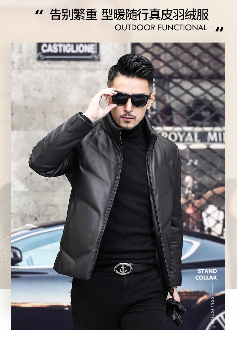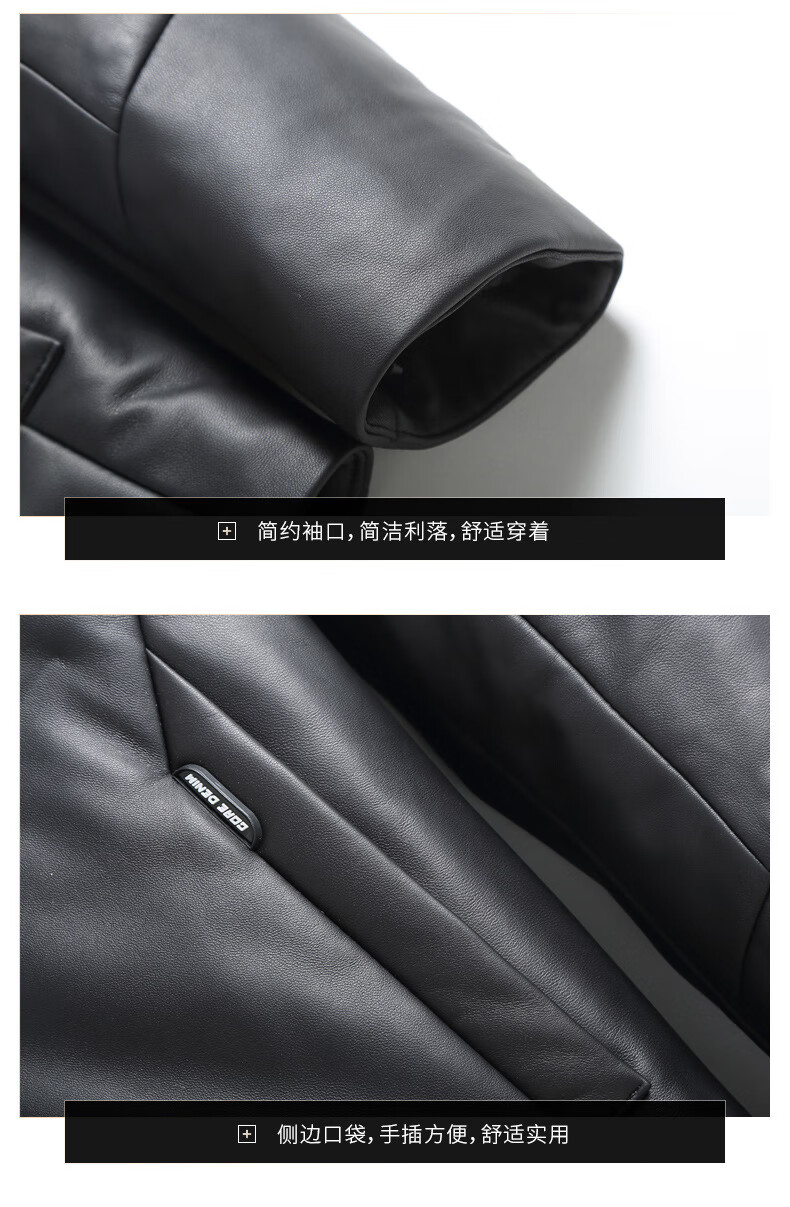 恒源祥冬季海宁真皮皮衣男士绵羊皮羽绒服皮夹克男装白鹅绒加绒加厚外套 黑色 M 165