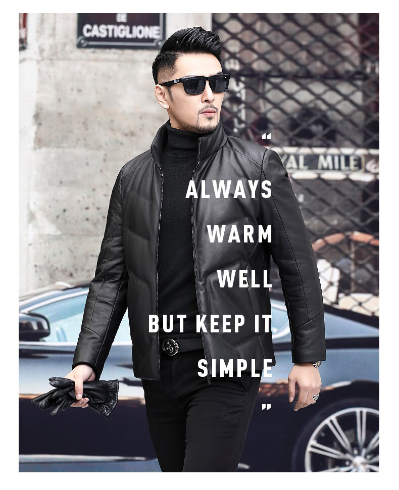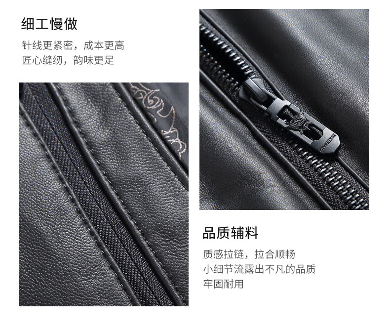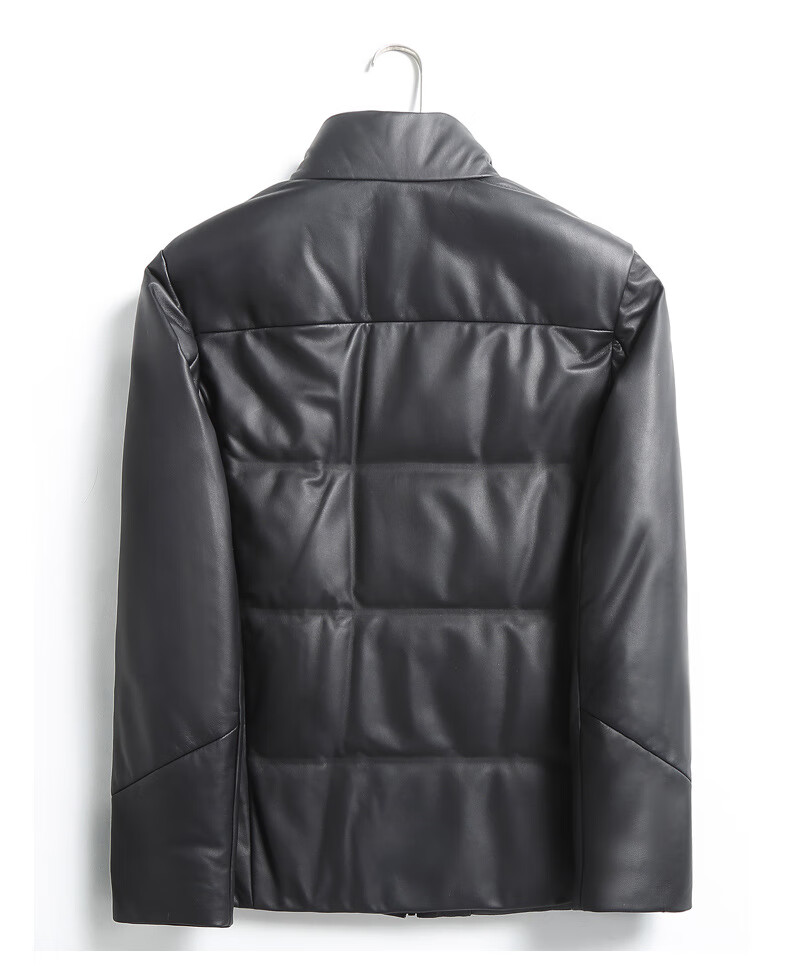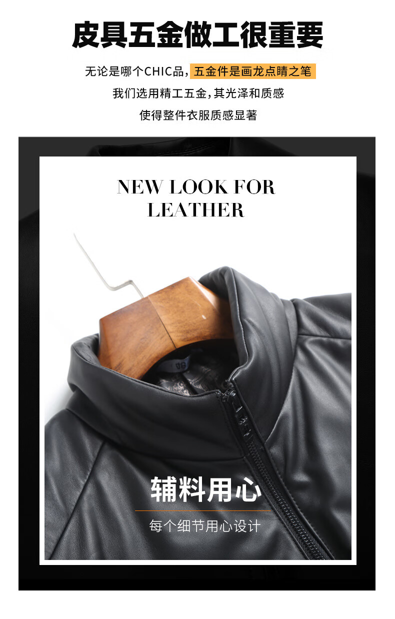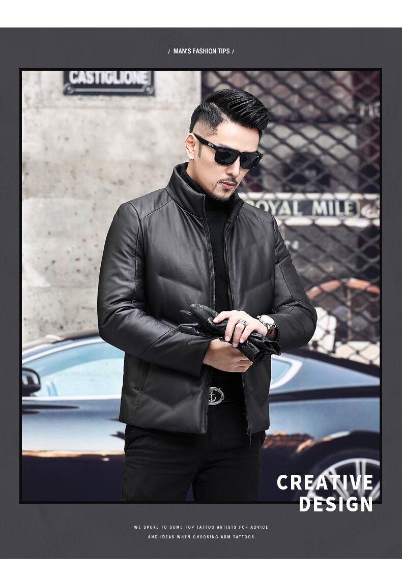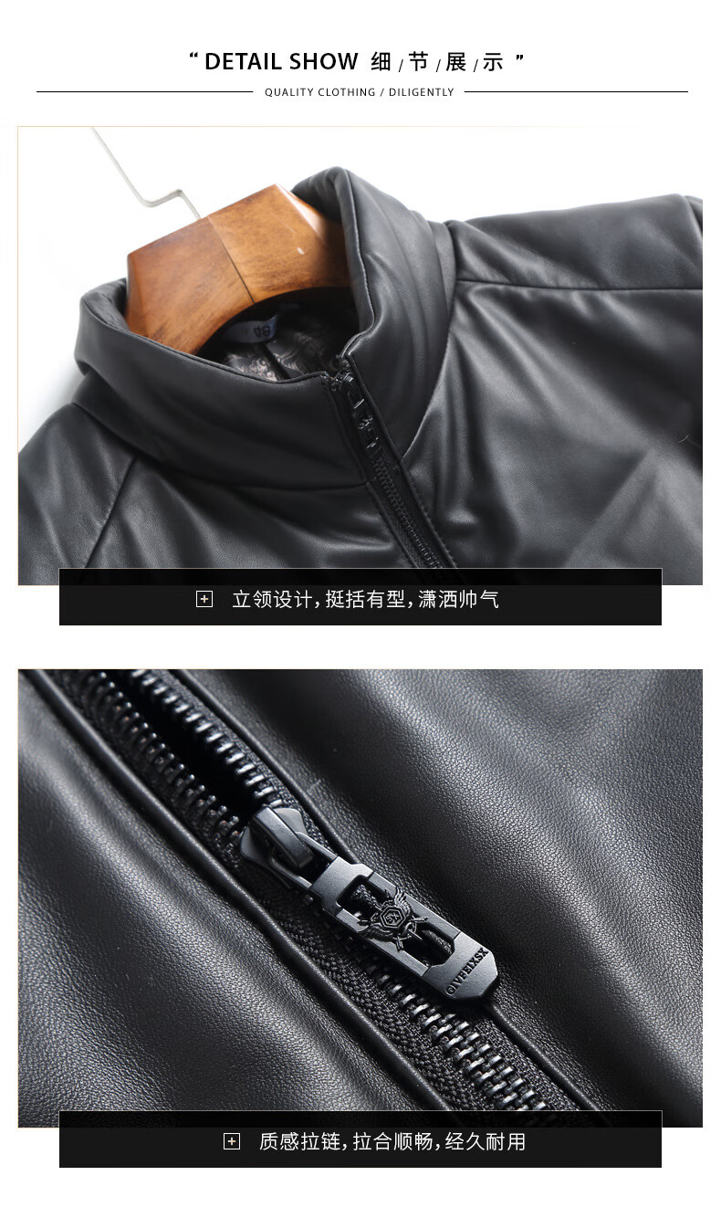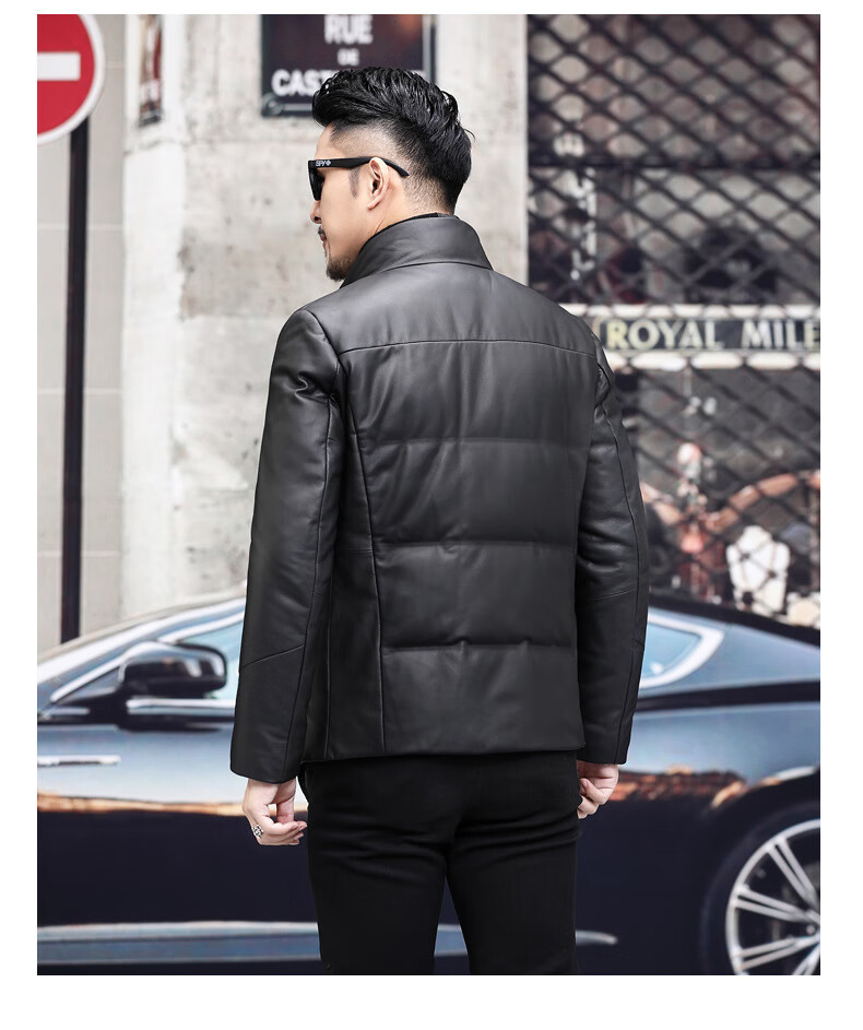恒源祥冬季海宁真皮皮衣男士绵羊皮羽绒服皮夹克男装白鹅绒加绒加厚外套 黑色 M 165