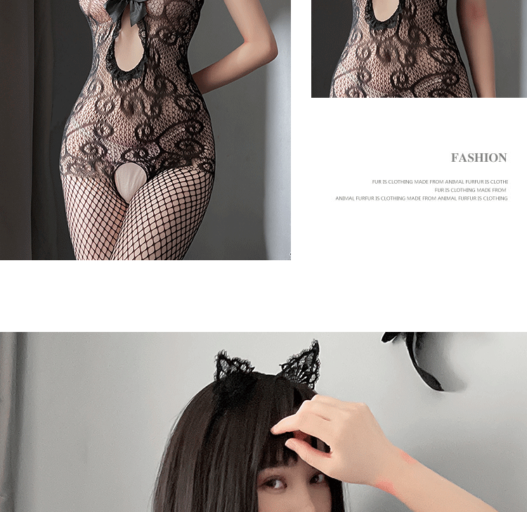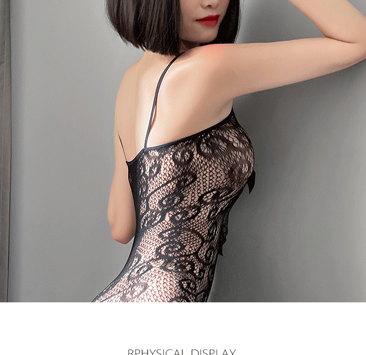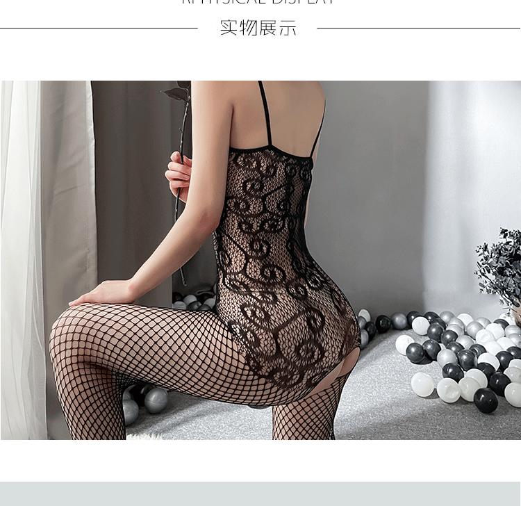 情趣内衣女士吊带镂空透视诱惑性感开档连身袜丝袜 黑色 精装(80-140斤)