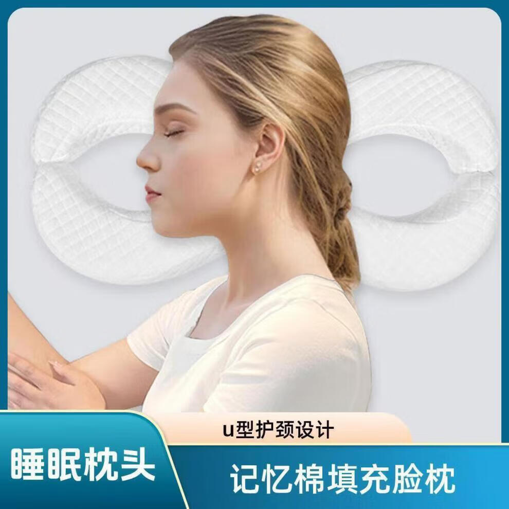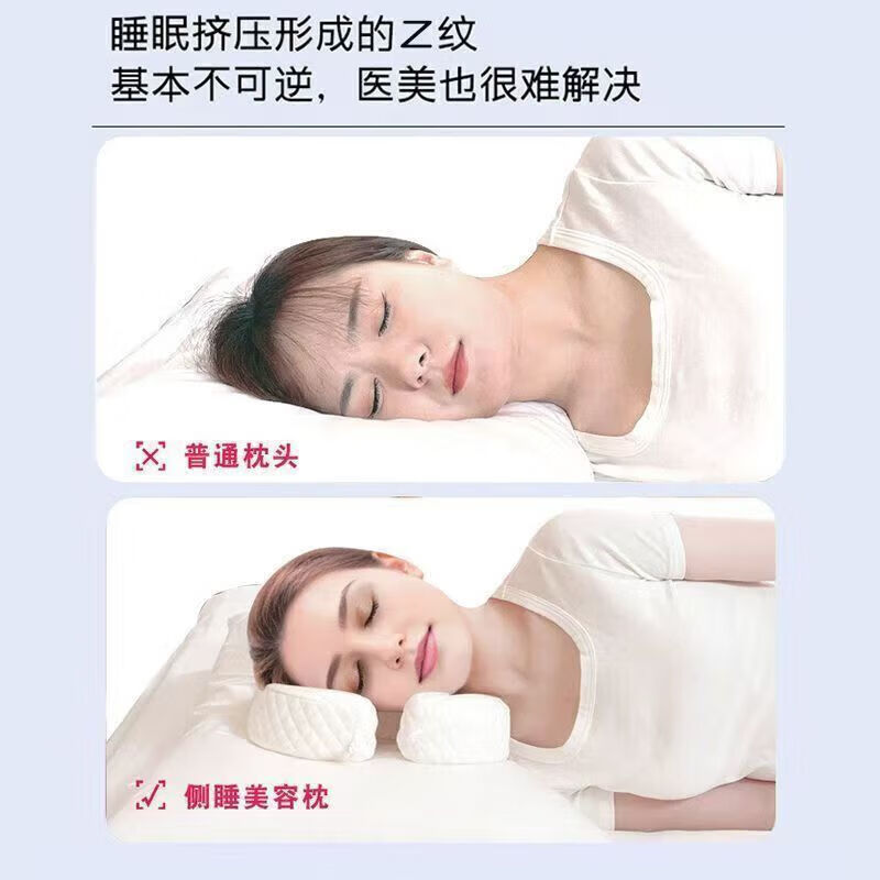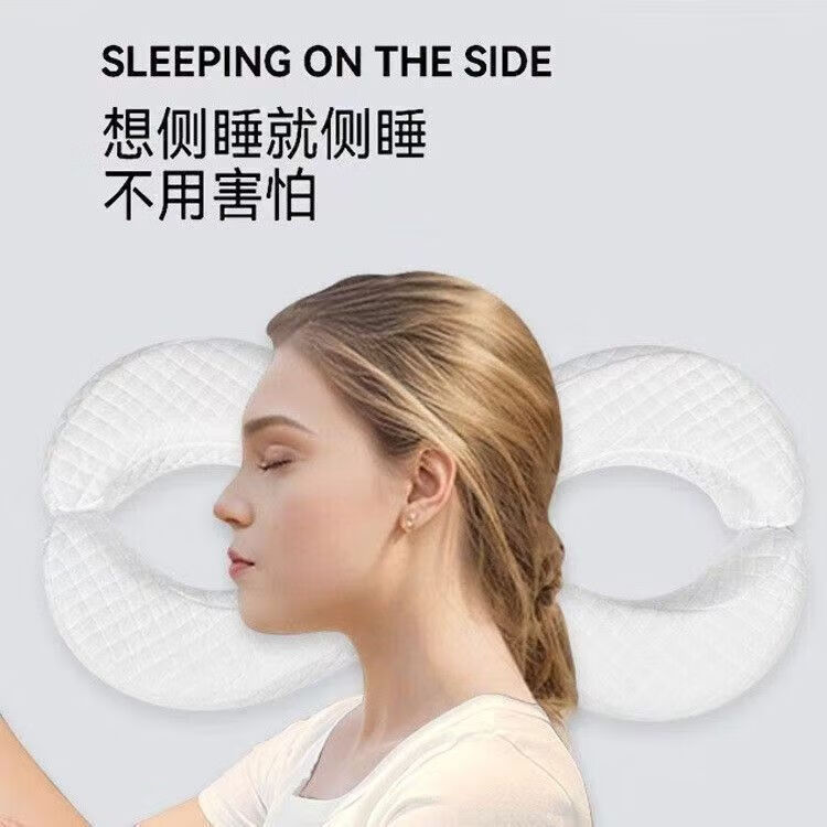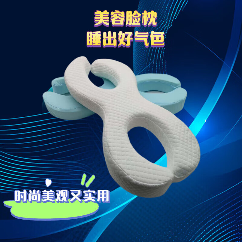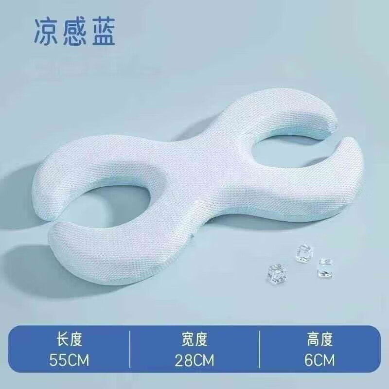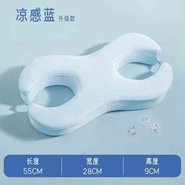 通用侧睡枕头 不压脸防皱纹改善防颈纹护眼枕护耳朵 涼感藍-6cm