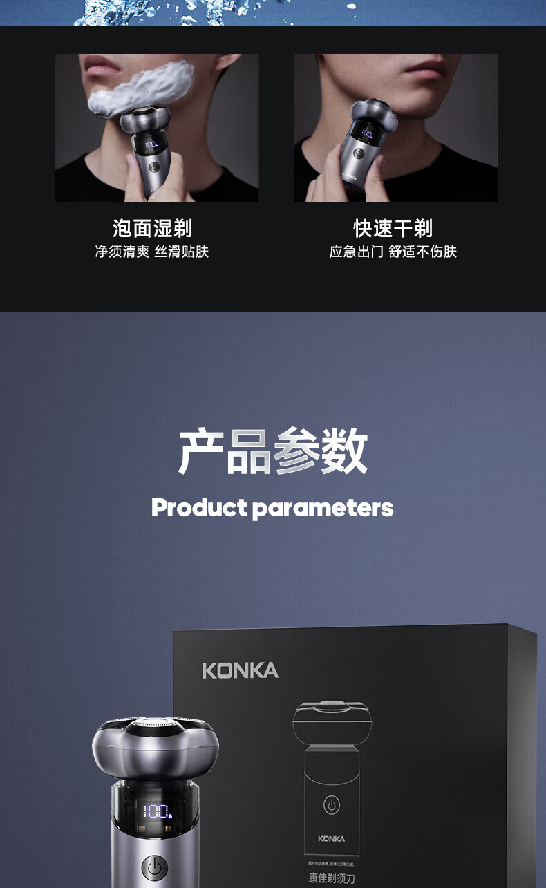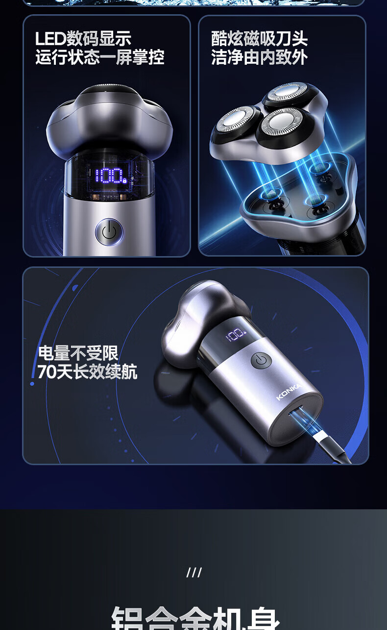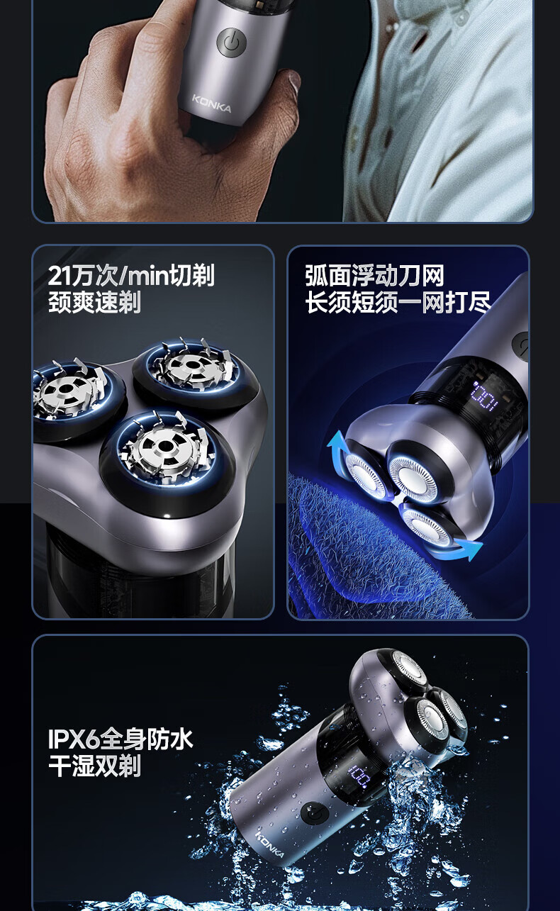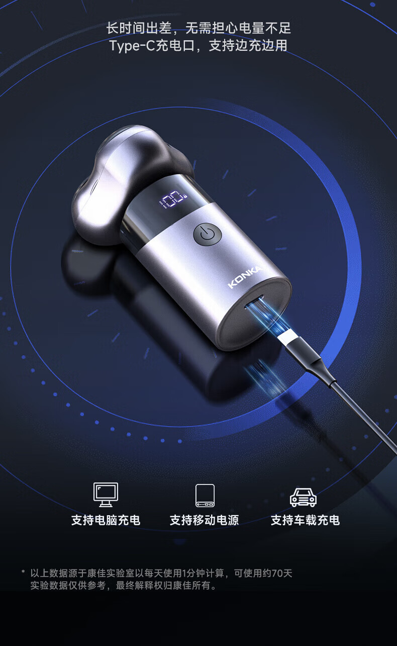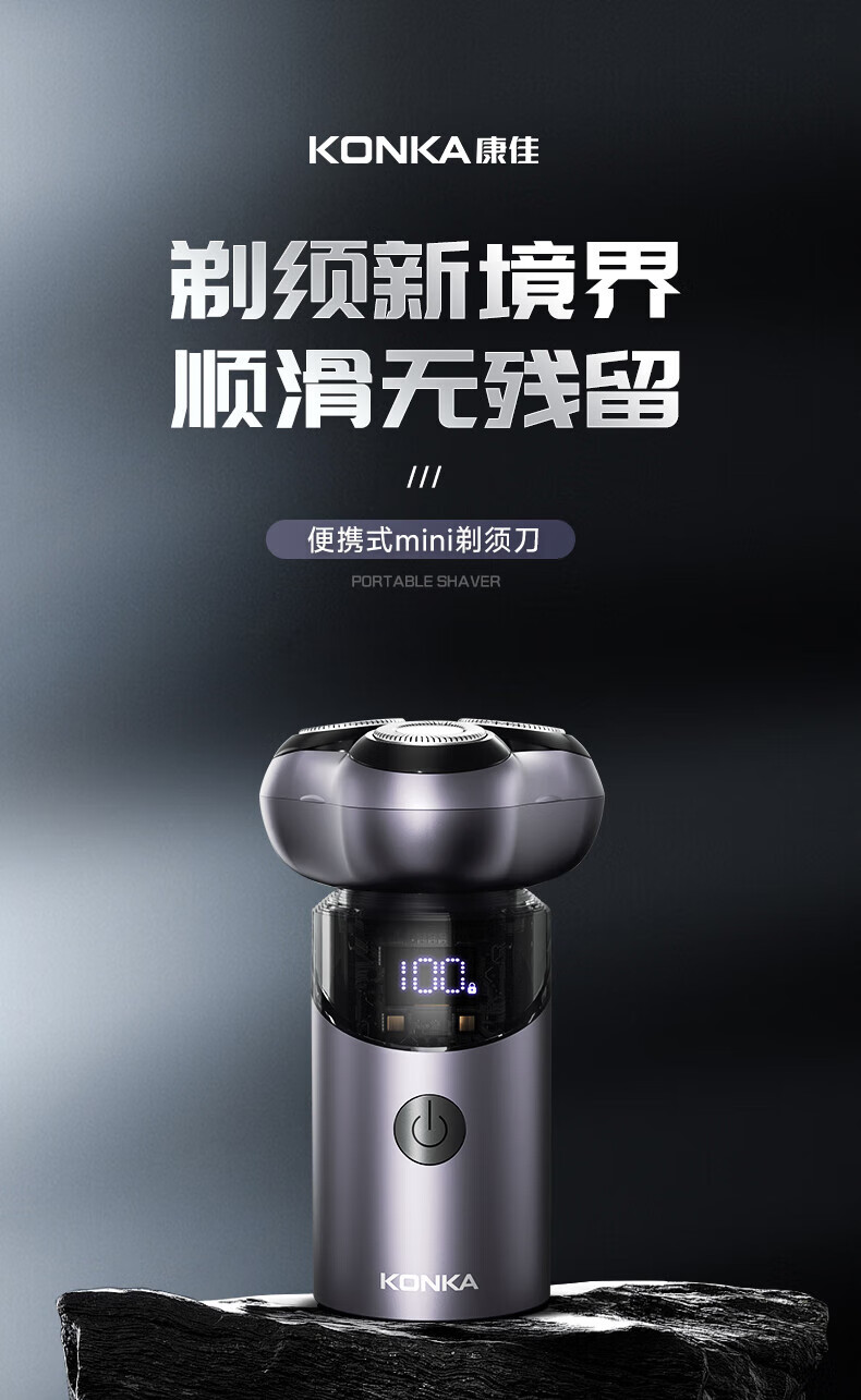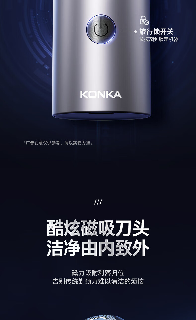 康佳电动剃须刀男士刮胡须刀须刨三刀头迷你剃须刀便携生日节日礼物送男友送老公送爸爸父亲 磁吸刀头mini便携