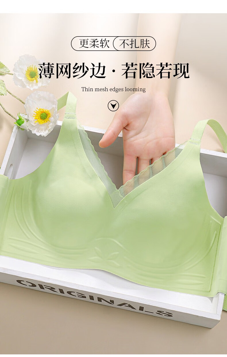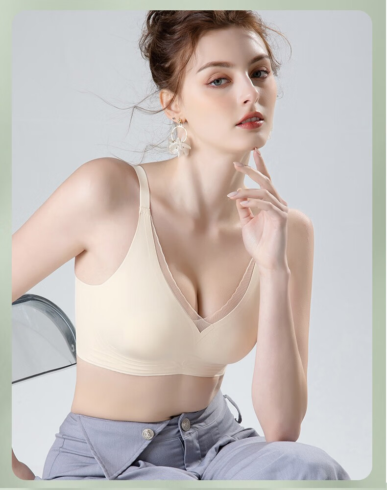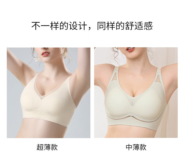 华婷露(Huatinglu)两种厚度超薄内衣女中薄款文胸无痕微聚拢睡眠胸罩兔耳朵内衣显小 超薄款-香槟白 M (适合34/75BC)