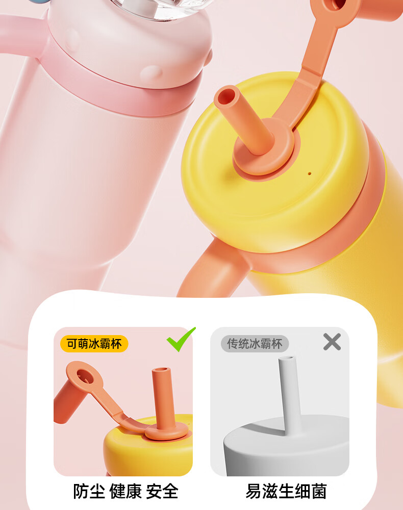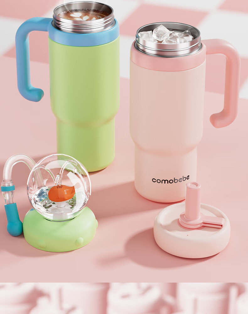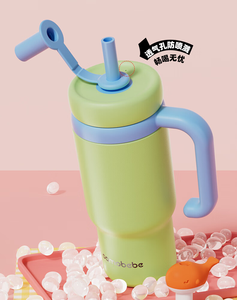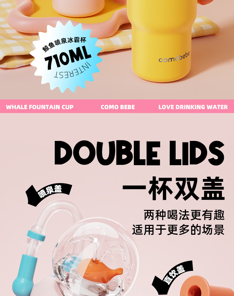 comobebe可萌贝比吸管保温冰霸水杯大容量男女士解压喝水杯学生杯子双头 蓝色710ml【双饮盖】