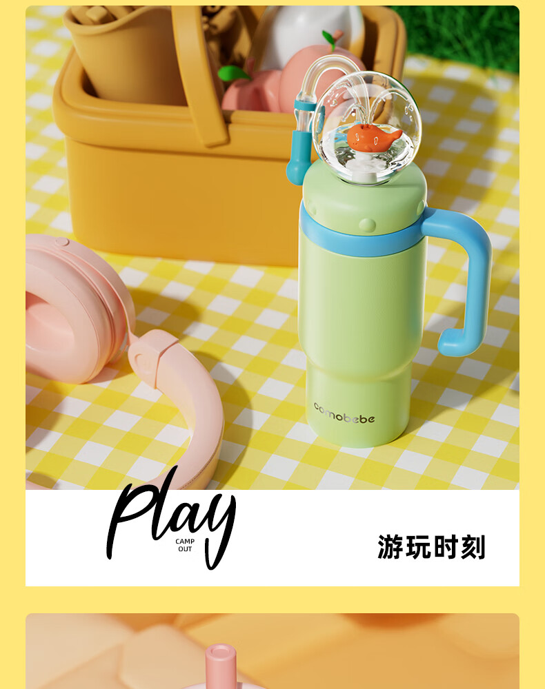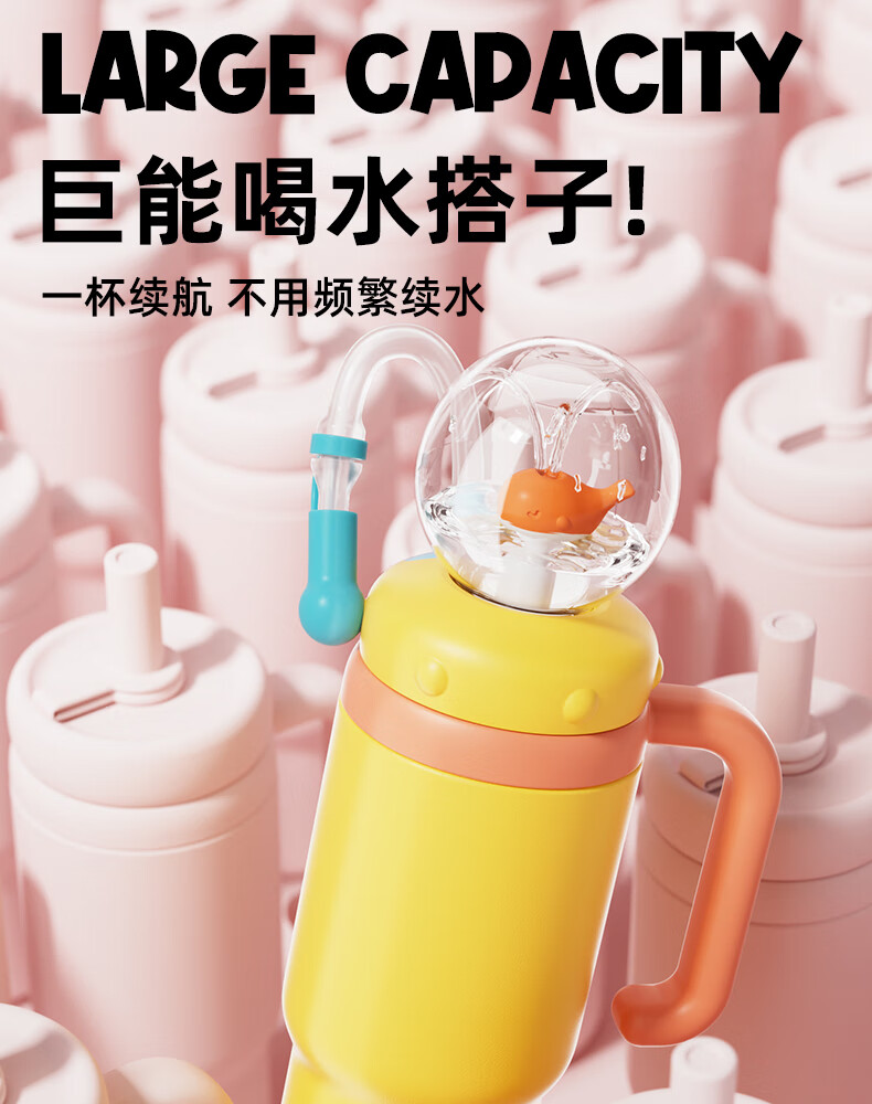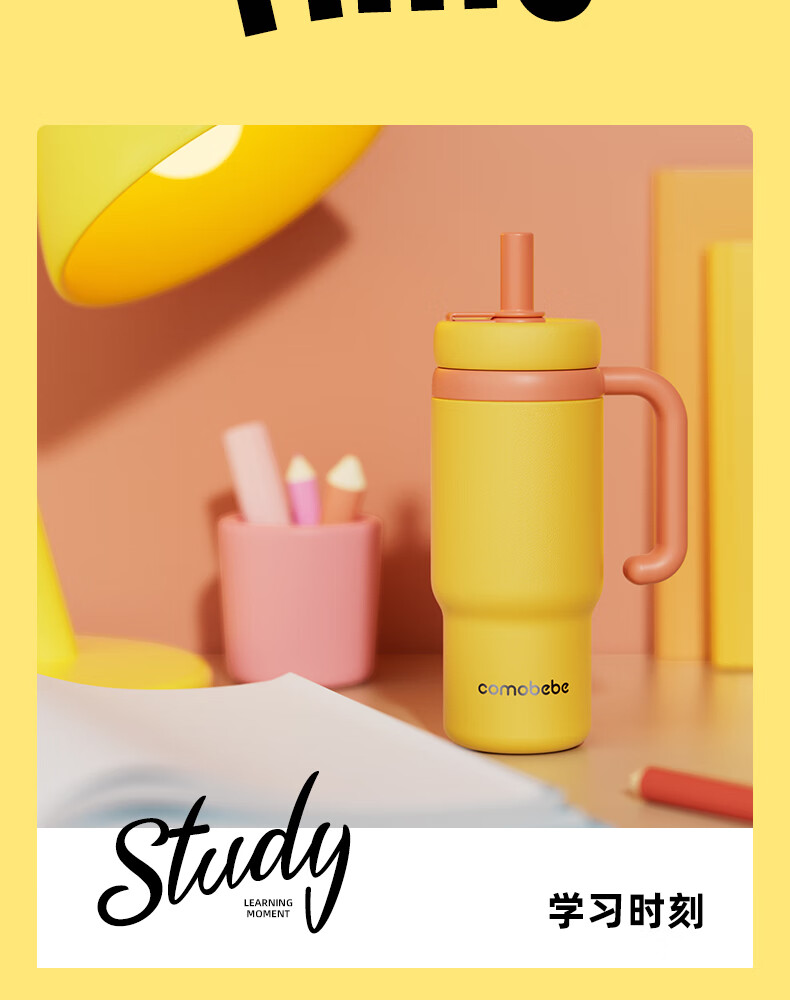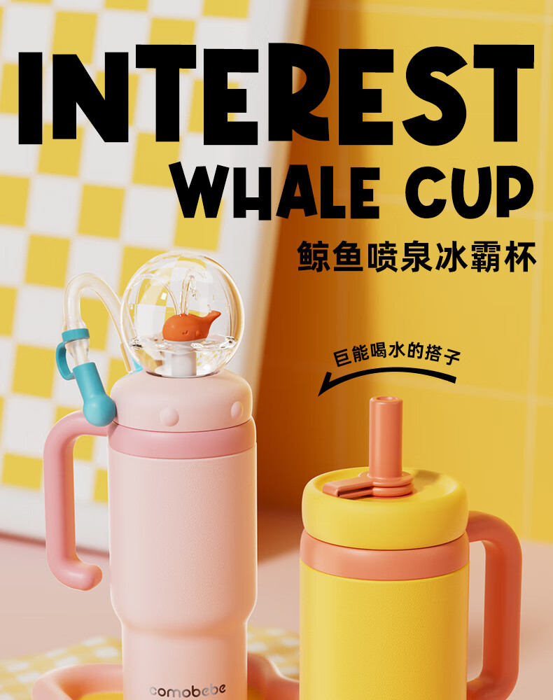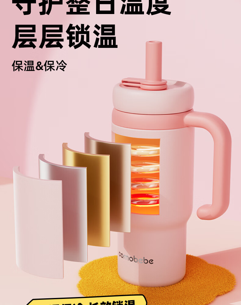 comobebe可萌贝比吸管保温冰霸水杯大容量男女士解压喝水杯学生杯子双头 蓝色710ml【双饮盖】