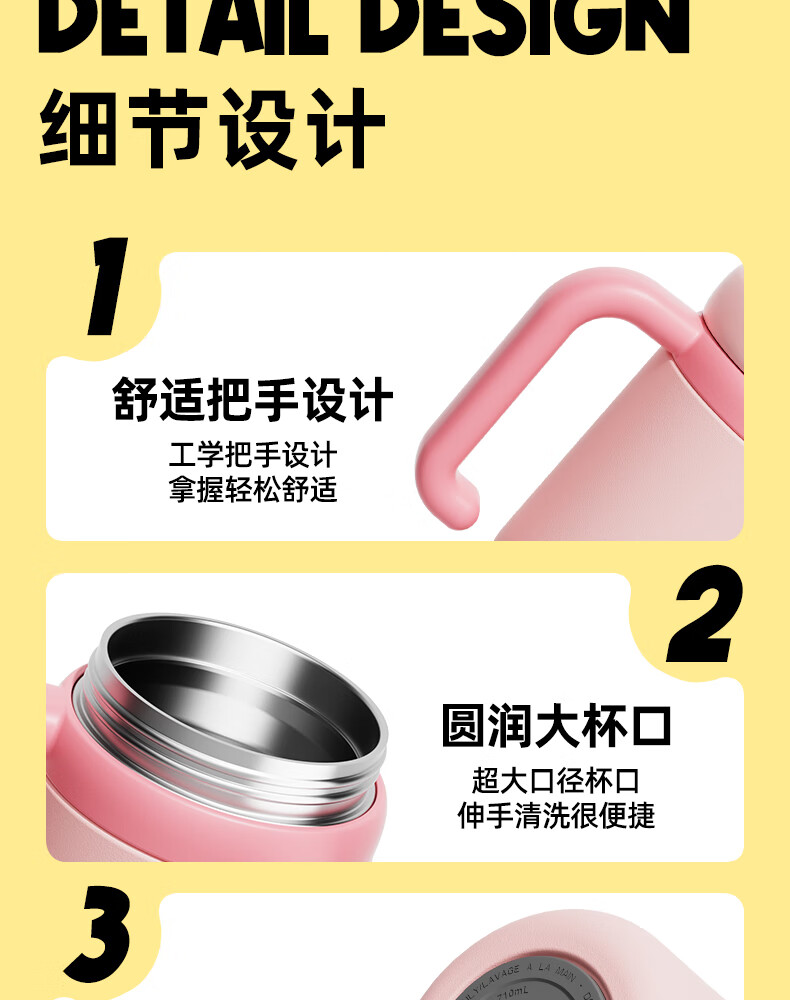 皇家洛克 ROYALLOCKE咖啡杯便携316不锈钢保温杯女士高颜值不锈钢材质杯子原创IP卡通 【316不锈钢】粉色