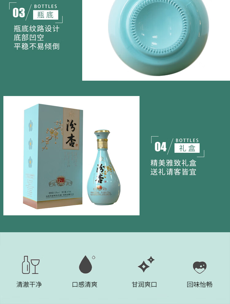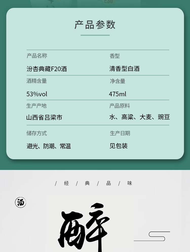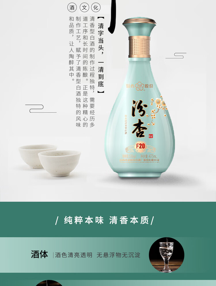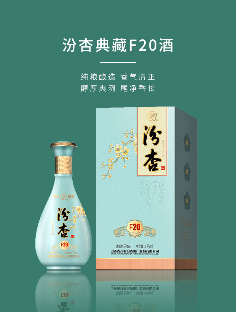 汾杏典藏F20 山西杏花村酒 53度清香型白酒 53度 475mL 1瓶 汾杏F20典藏