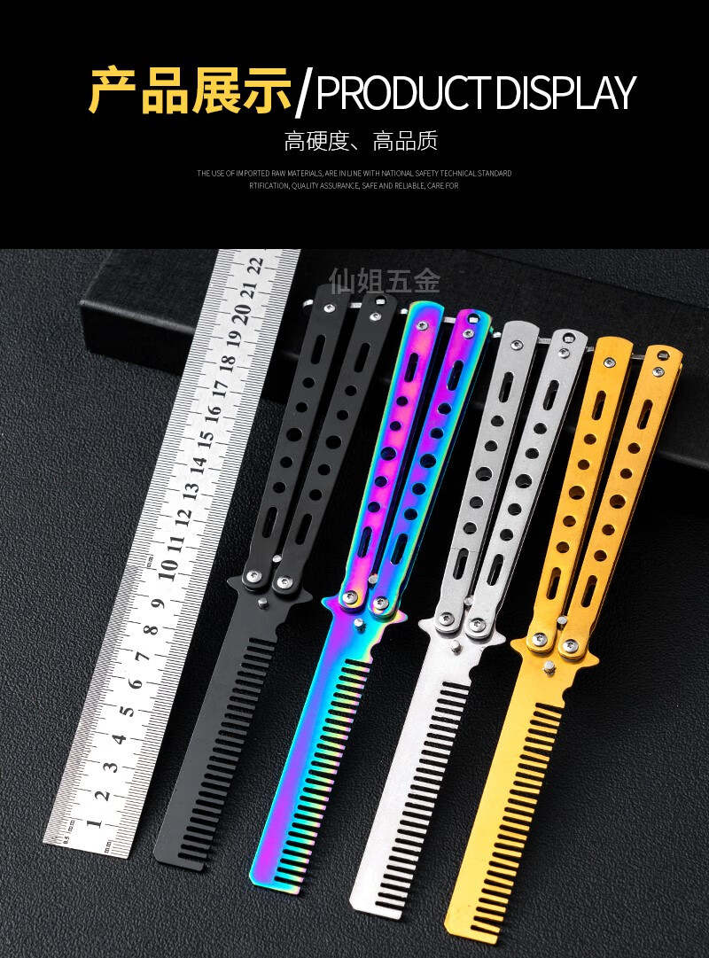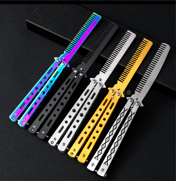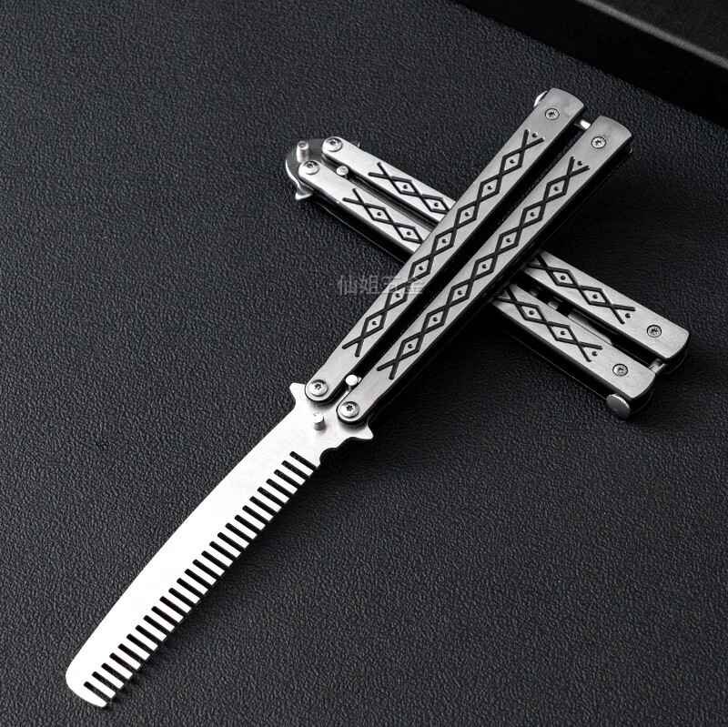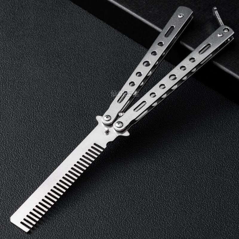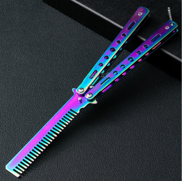 光士刃蝴蝶梳子蝴蝶折叠刀未开刃csgo周边不锈钢甩手练习初学者训练小刀 彩梳 单把+维护扳手+收纳布套+养护油