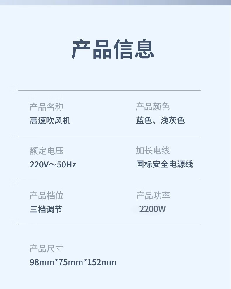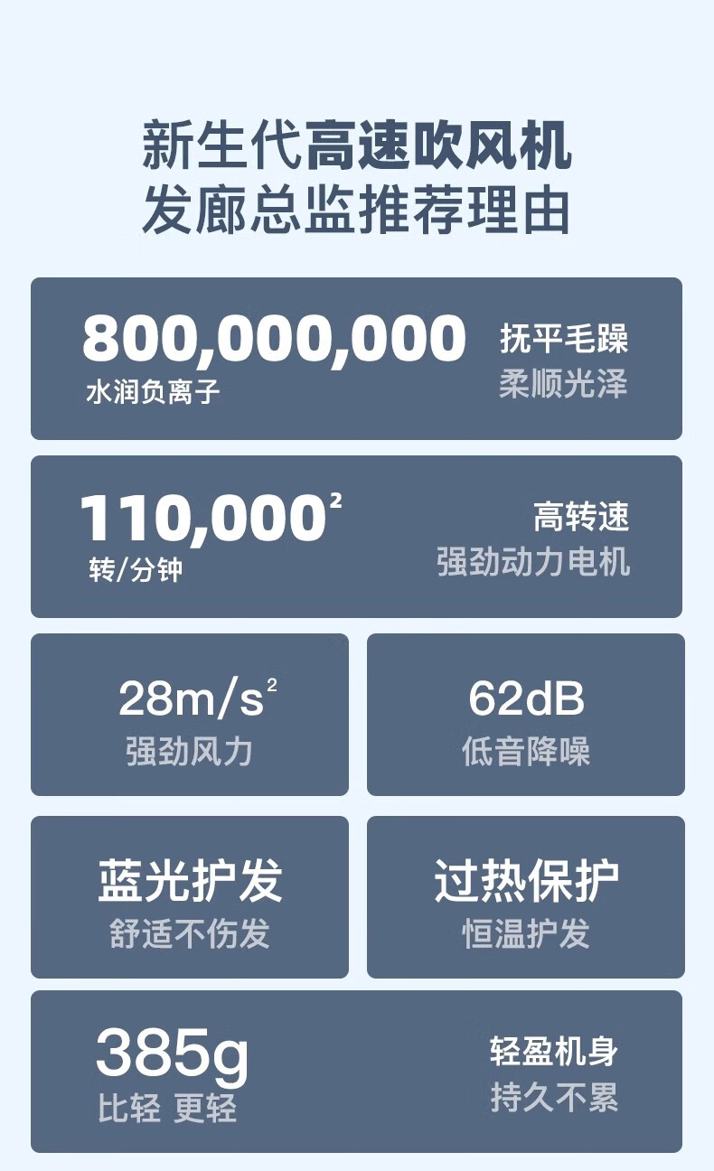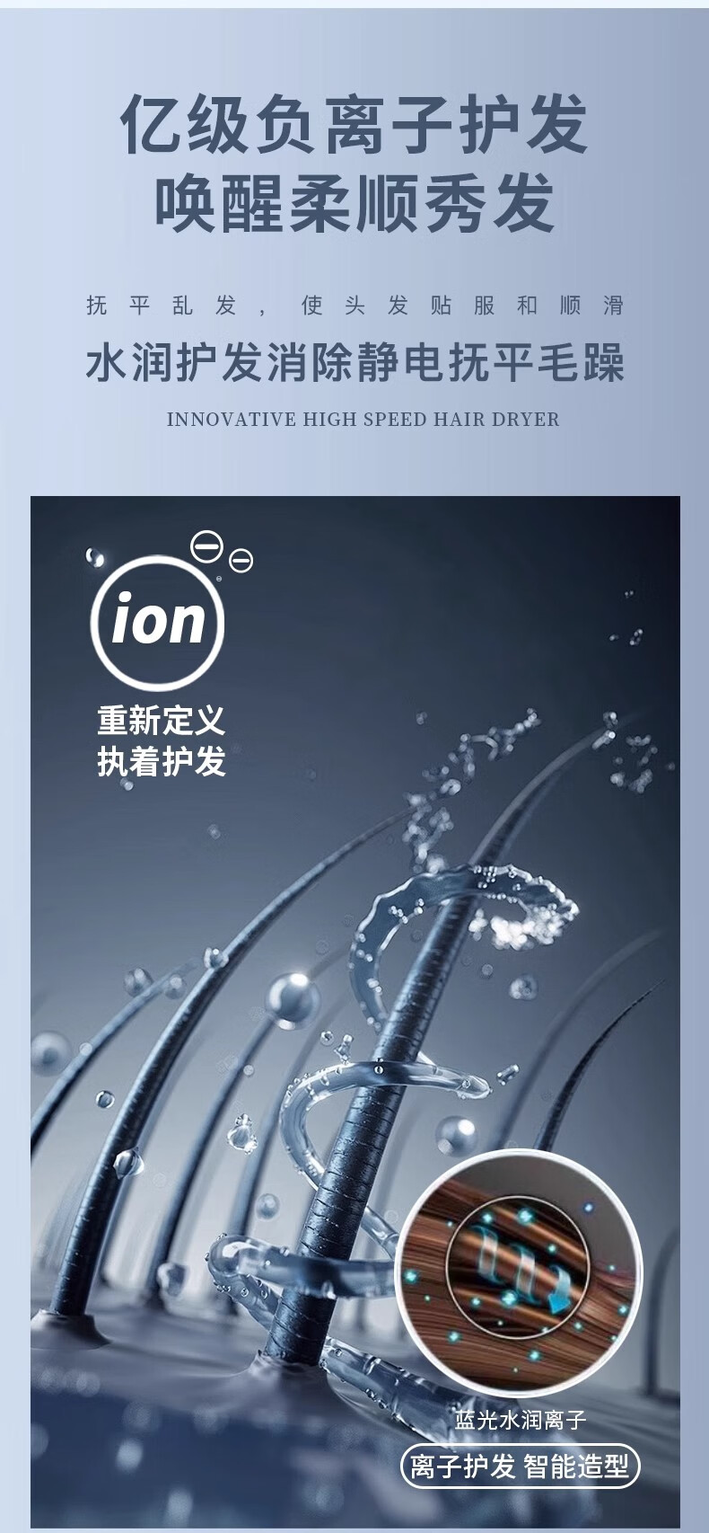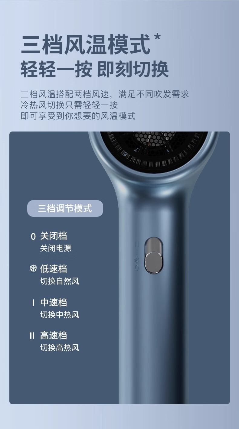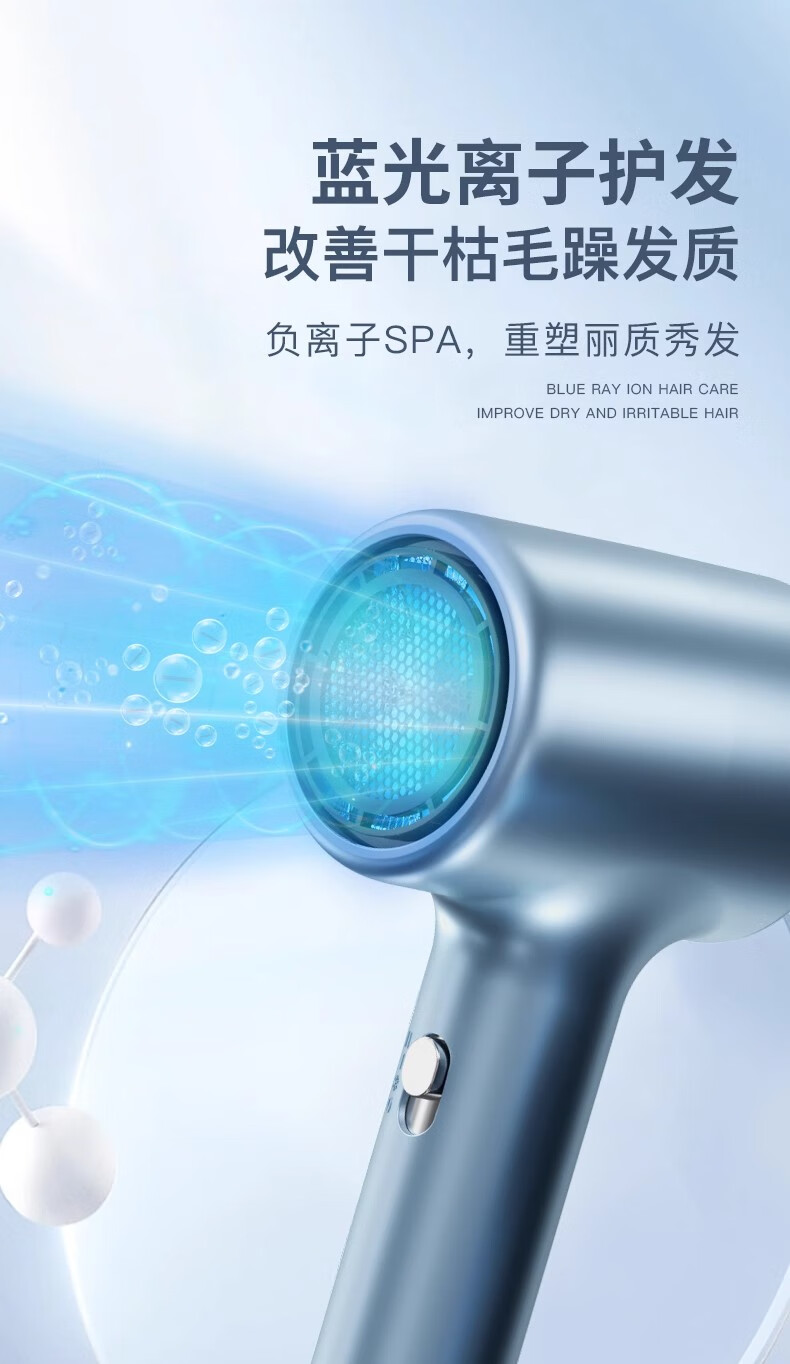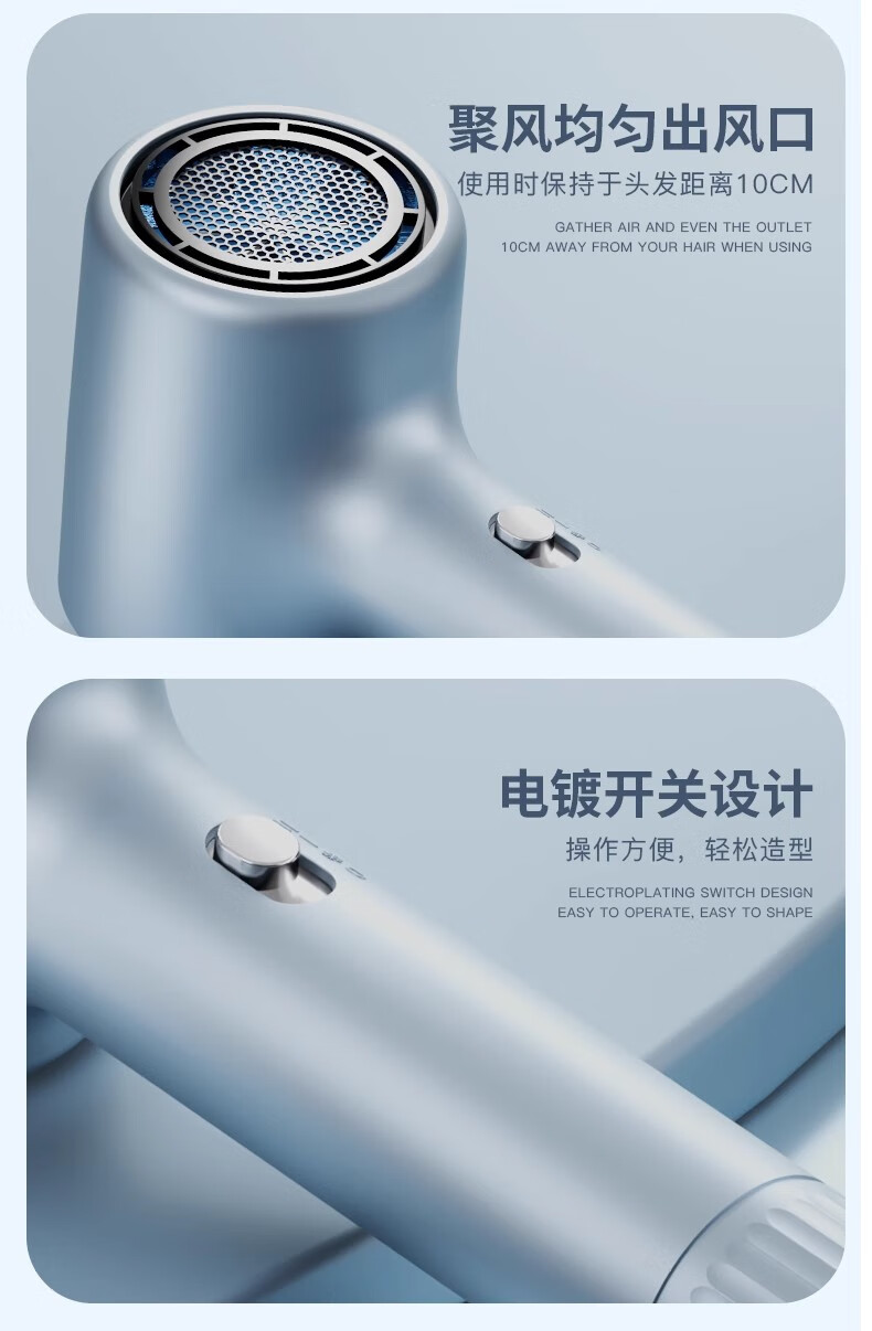 莫妮卡德国品质电吹风机家用负离子不伤发大功率发廊理发店专用大风力风筒速干蓝光护发冷热造型强效速干 星空蓝-升级款2200w礼盒装