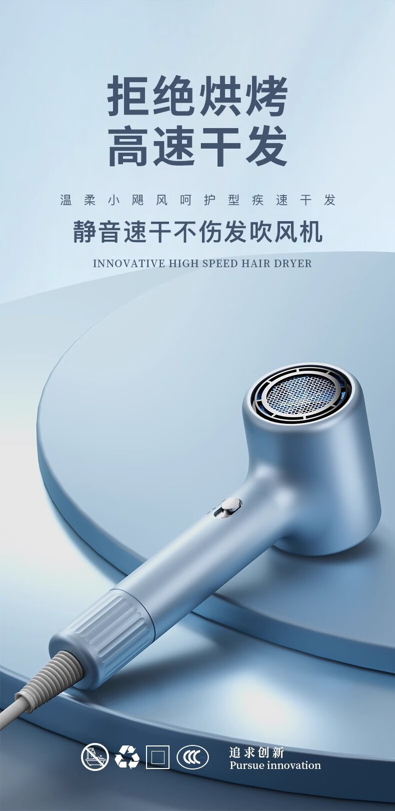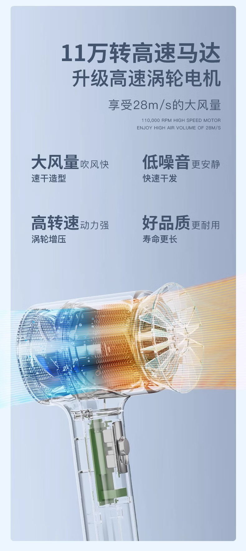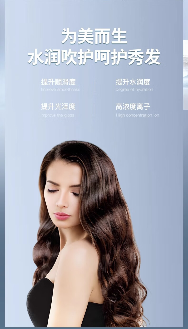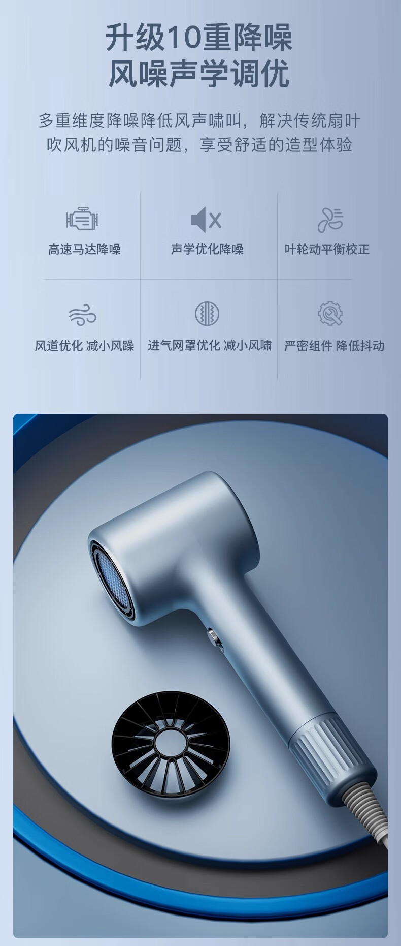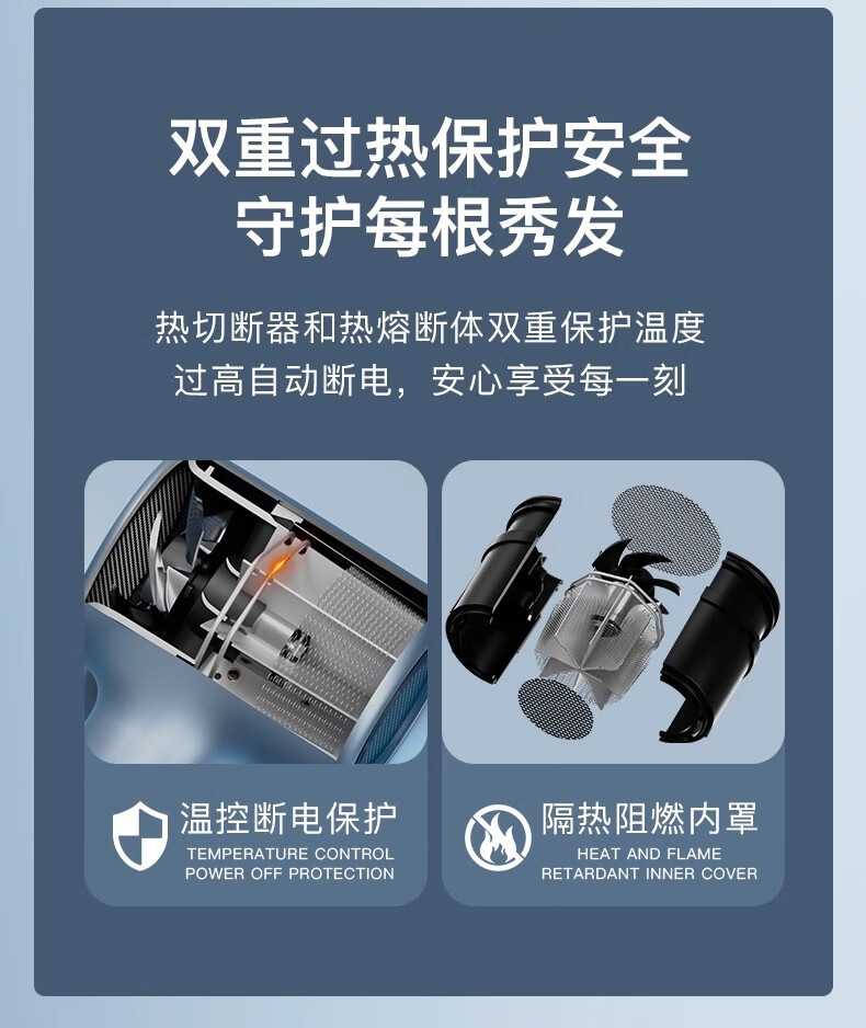莫妮卡德国品质电吹风机家用负离子不伤发大功率发廊理发店专用大风力风筒速干蓝光护发冷热造型强效速干 星空蓝-升级款2200w礼盒装