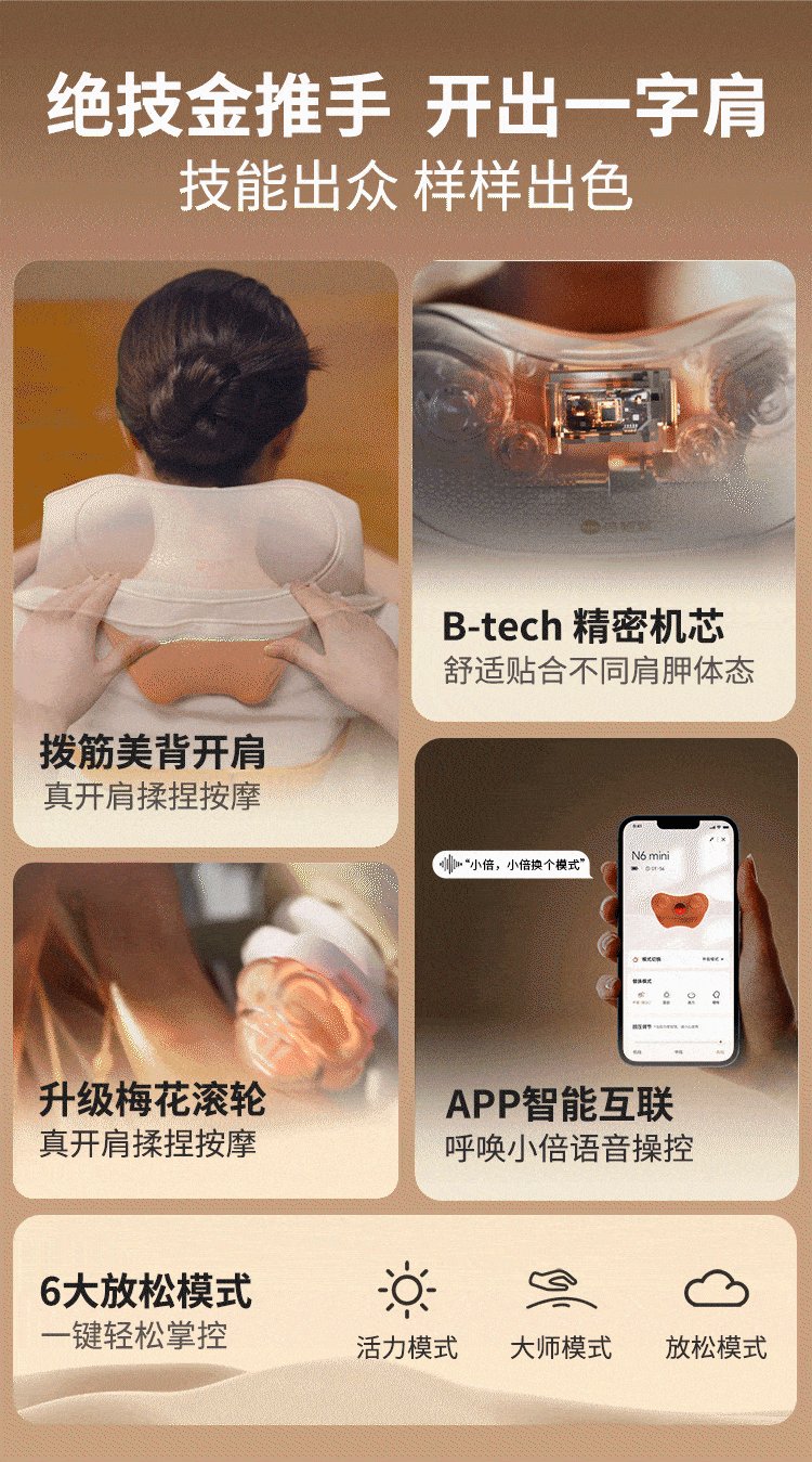 倍轻松(breo)颈椎按摩器 N6mini 按摩仪 肩颈斜方肌腿腰颈部实用生日 送老婆男女友父母长辈 中秋节礼物 【金推手新品】N6mini