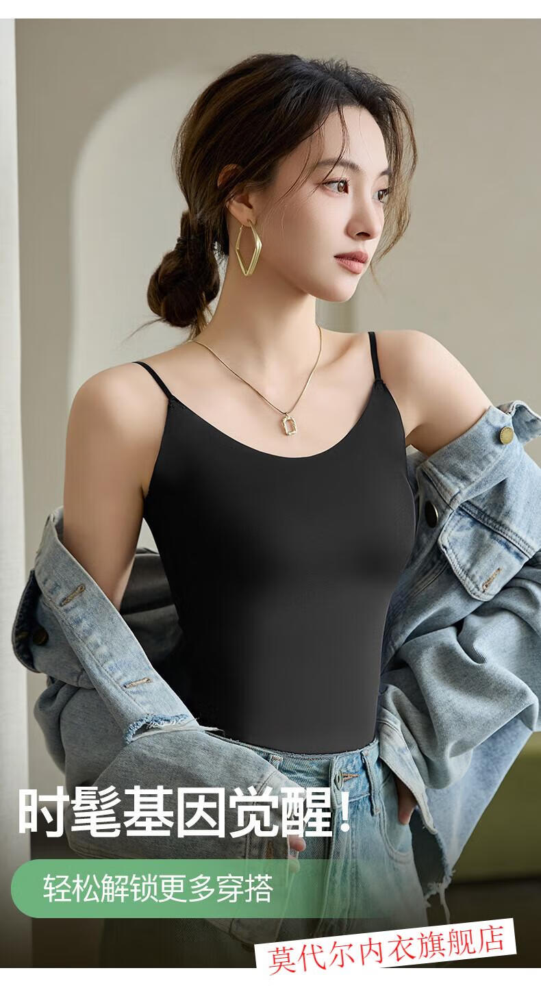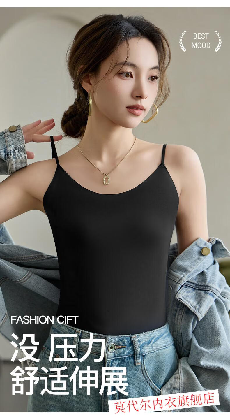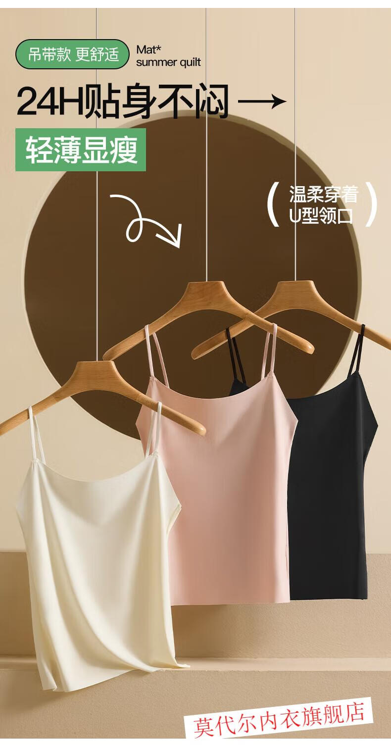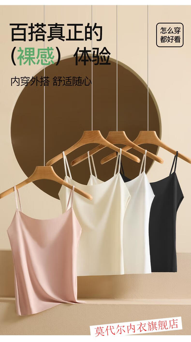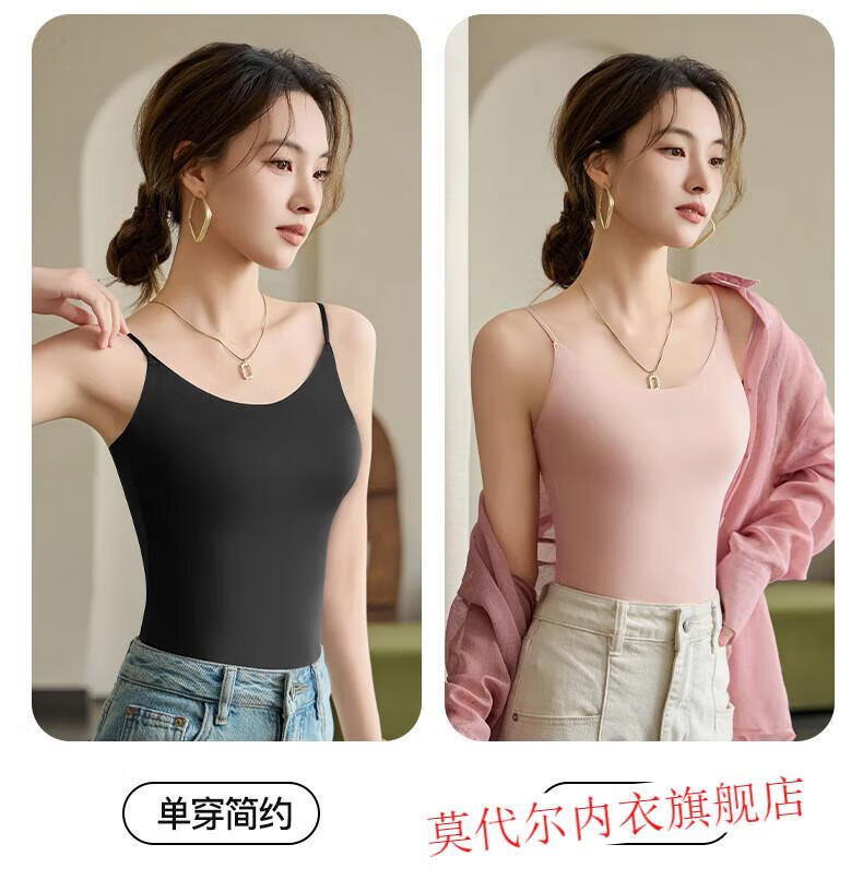 莫代尔新款冰丝裸感无痕美背吊带背心女内搭外穿春夏百搭修身打底背心女 黑色 2XL 【130-150斤】