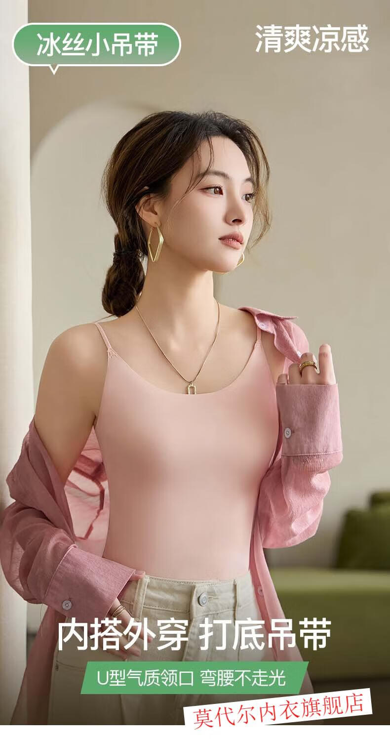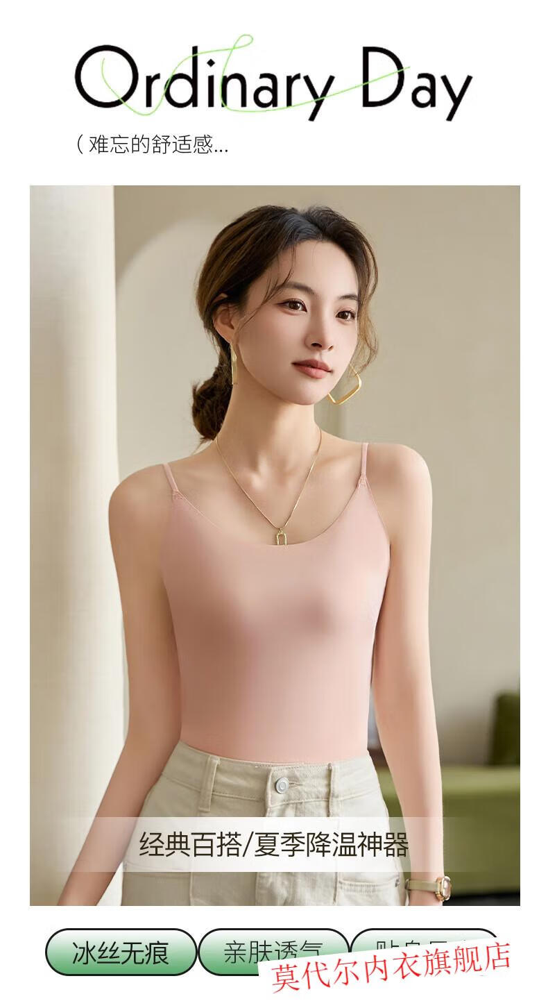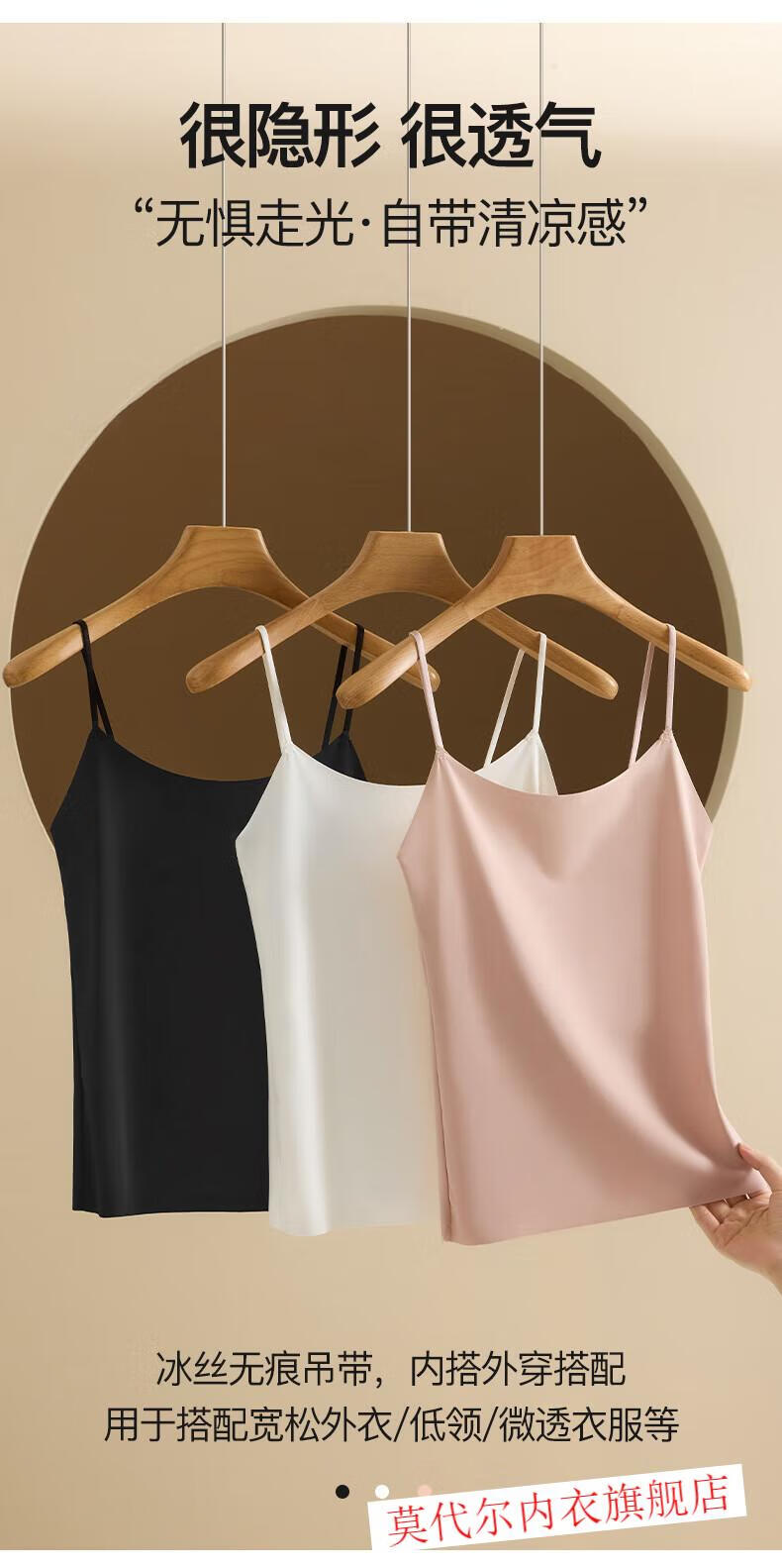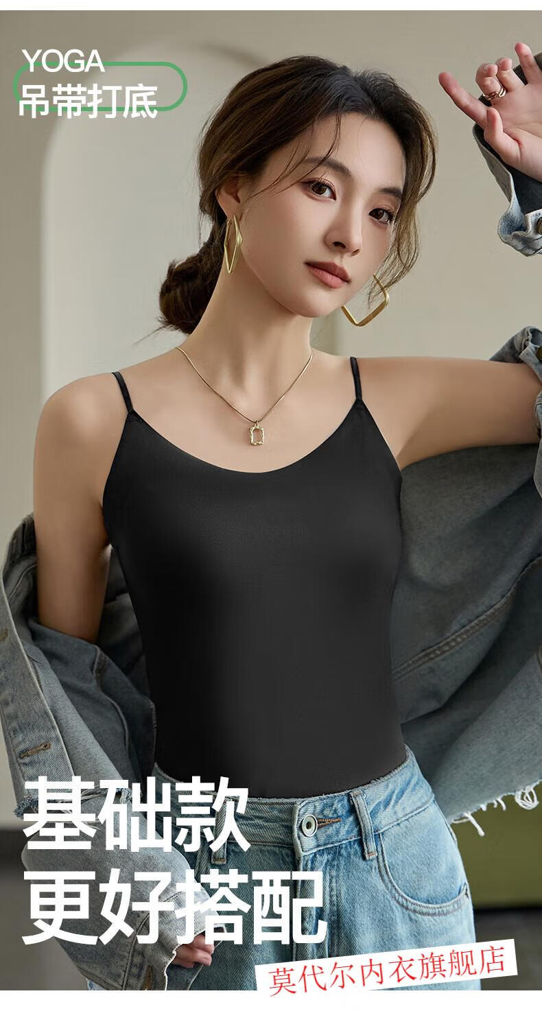 莫代尔新款冰丝裸感无痕美背吊带背心女内搭外穿春夏百搭修身打底背心女 黑色 2XL 【130-150斤】