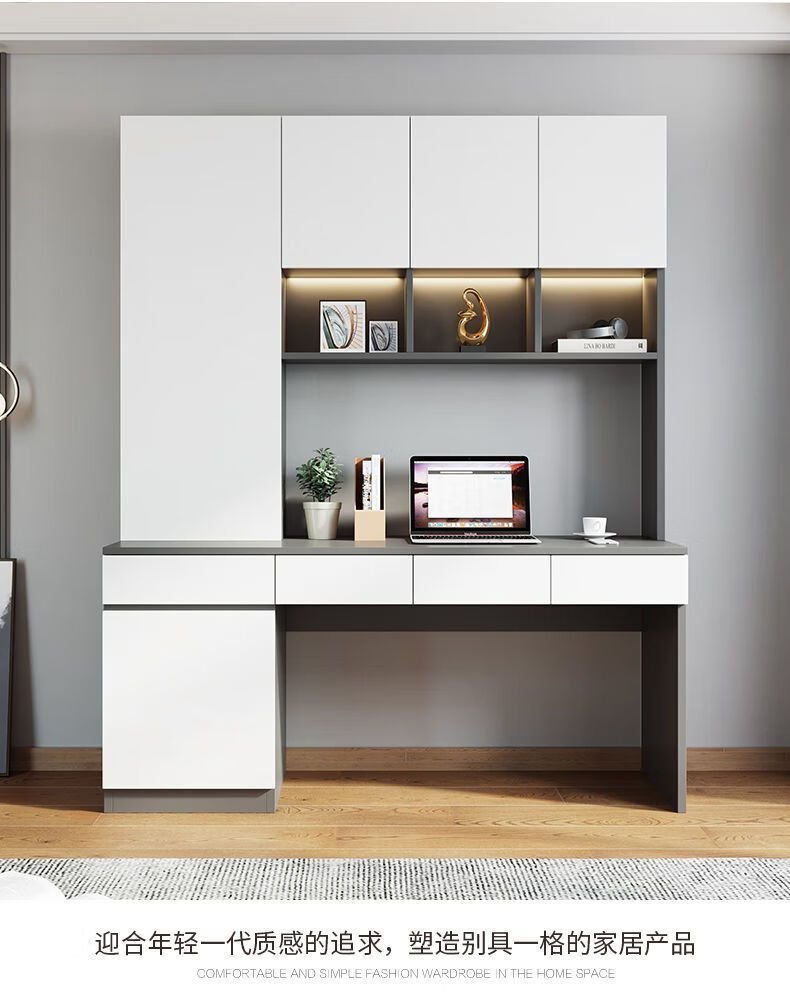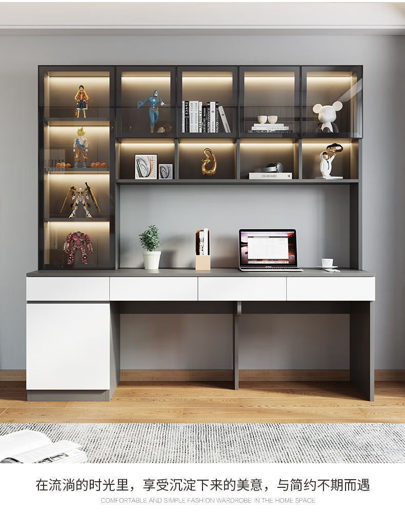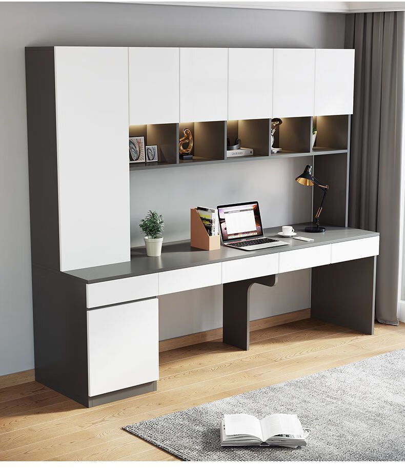 布卡格2025新款实木书桌电脑桌双人书架一体学生写字桌家用台式学习桌子 A款长150深60高220