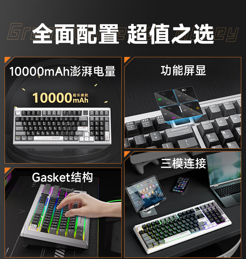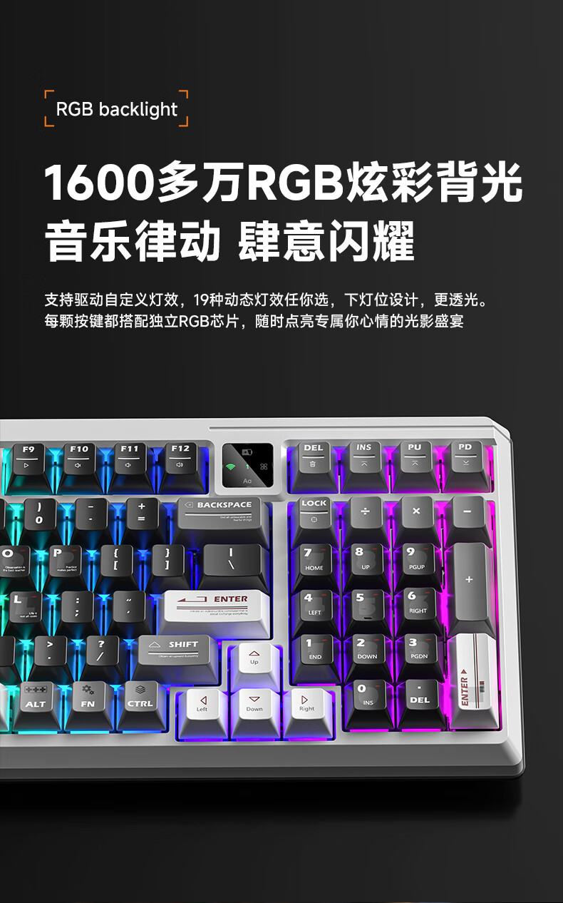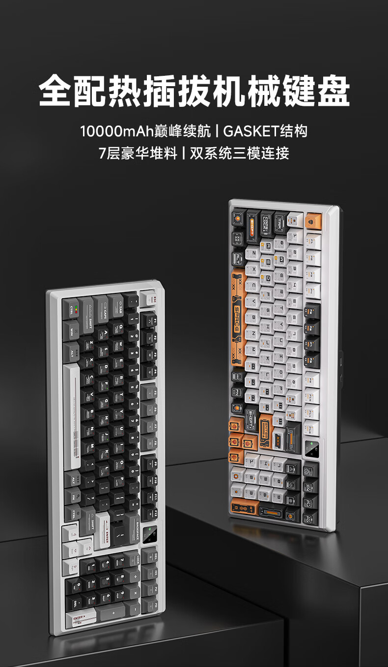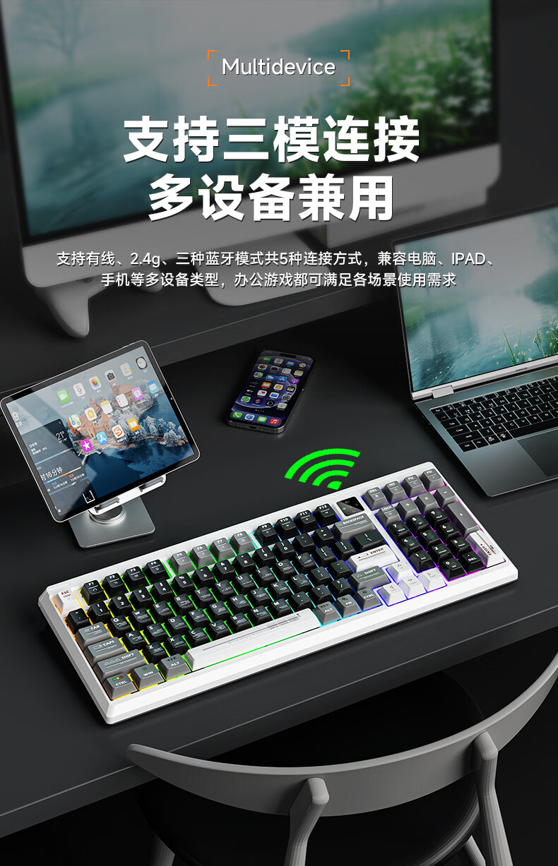 狼途T98无线三模机械键盘Gasket客制化全键热插拔全键无冲蓝牙有线高颜值游戏电竞办公码字键鼠套装 硝基玩家-碎星轴-三模1万mAh