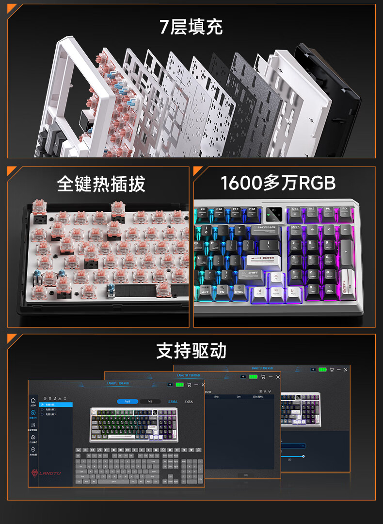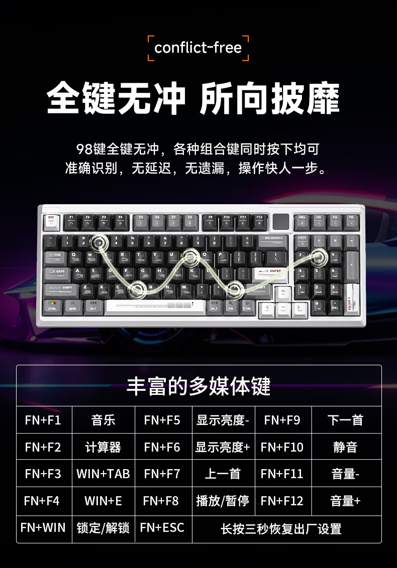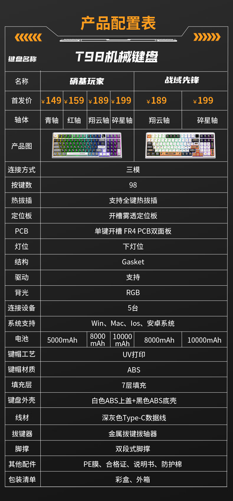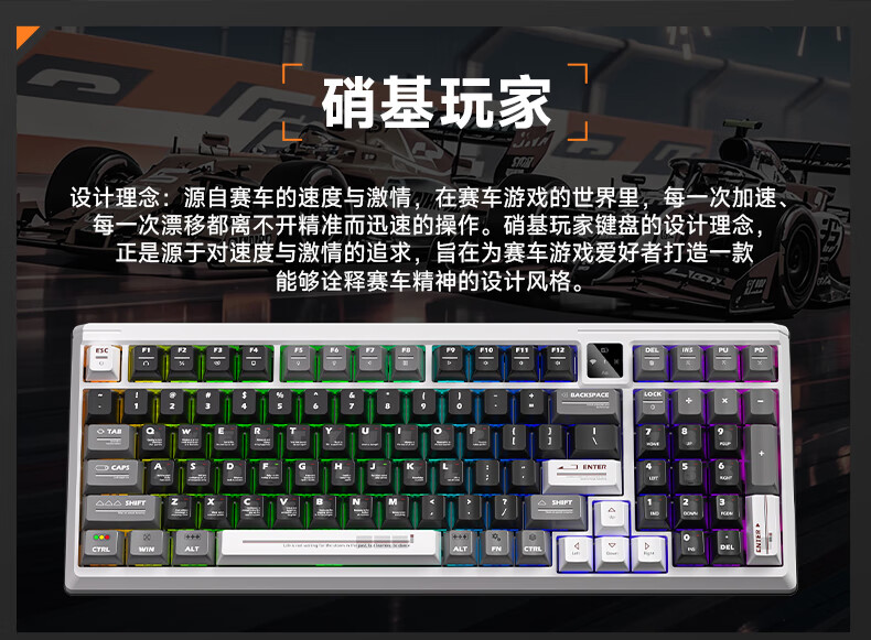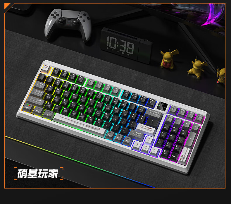 狼途T98无线三模机械键盘Gasket客制化全键热插拔全键无冲蓝牙有线高颜值游戏电竞办公码字键鼠套装 硝基玩家-碎星轴-三模1万mAh
