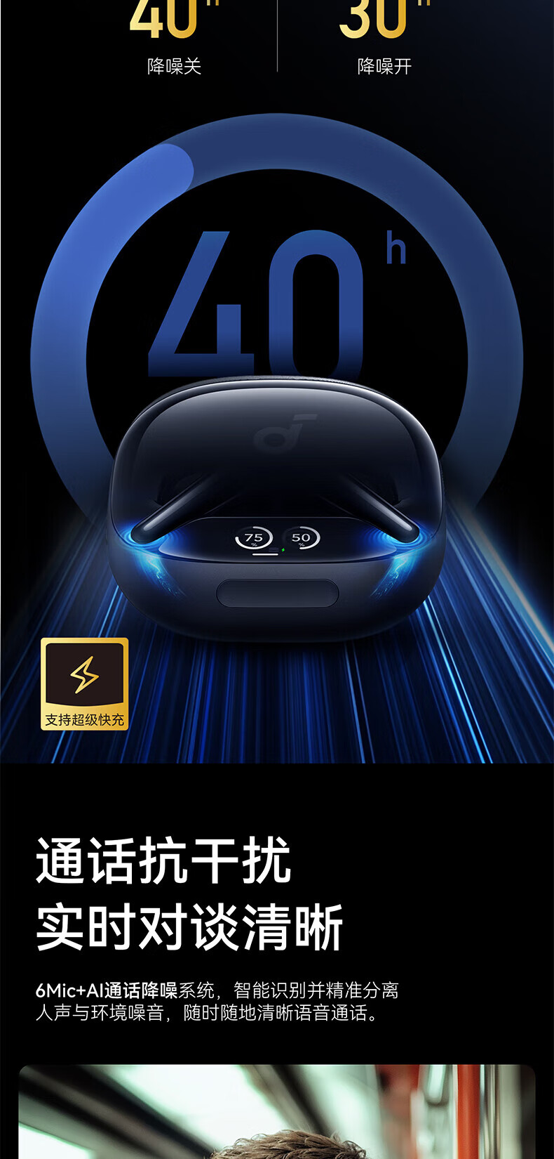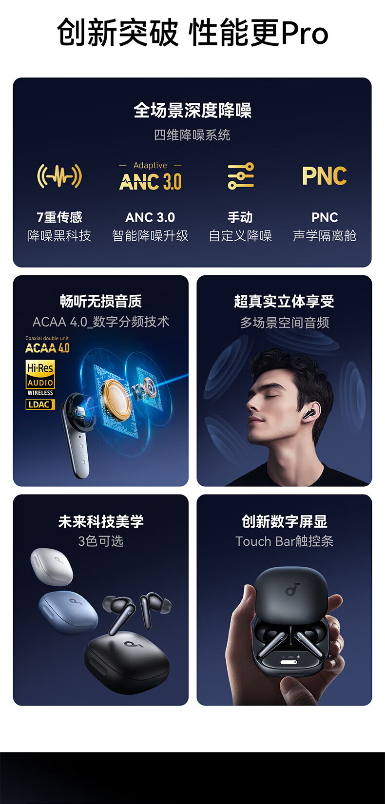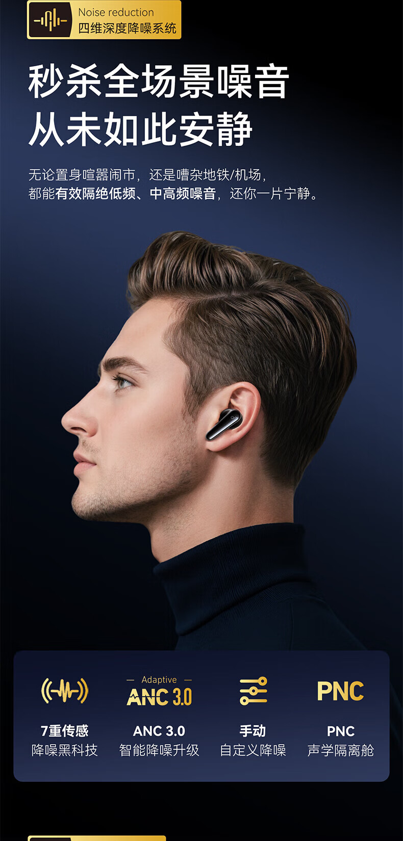声阔liberty4pro降噪舱3代耳机入耳式TWS真无线蓝牙耳机深度降噪半入耳式金标无损音质空间音频小米 【4维深度降噪—LDAC双金标音质】深邃黑