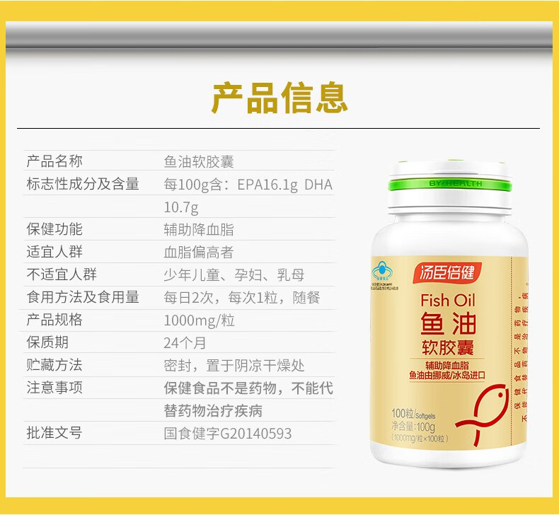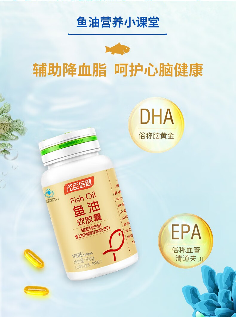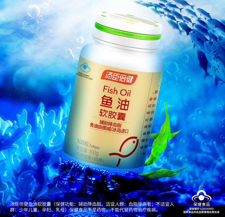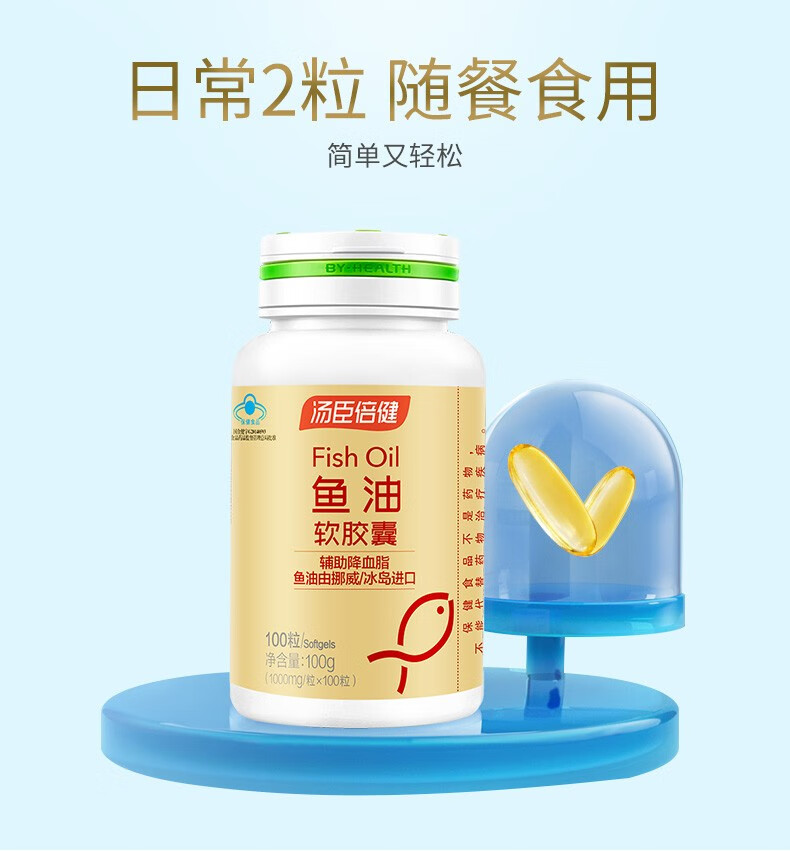 汤臣倍健深海鱼油软胶囊中老年人辅助降血脂 鱼油100粒*2