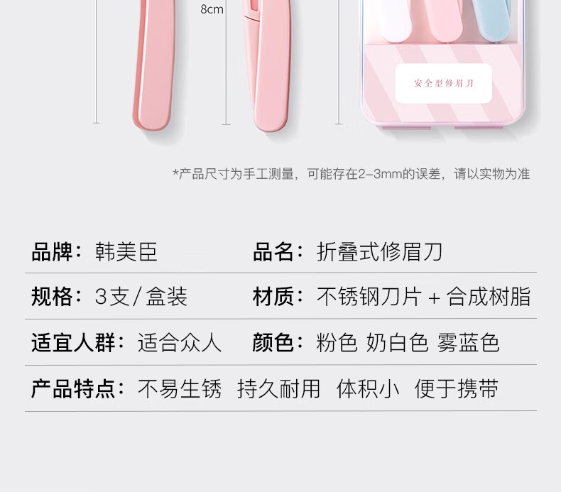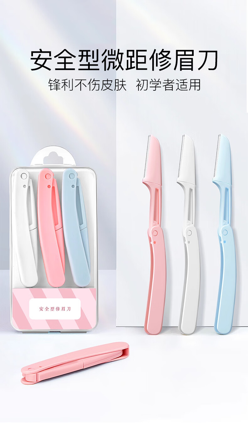 韩美臣韩美臣折叠式修眉刀安全型初学者女刮眉毛刀片男女士专用 修眉刀1盒装(共3把)