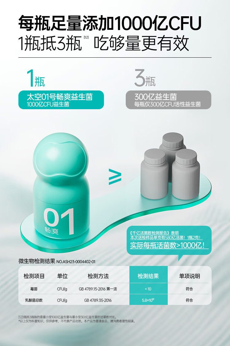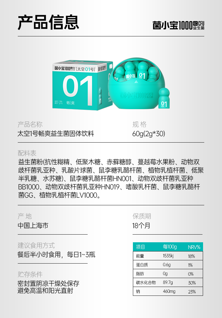 菌小宝益生菌成人孕妇肠胃单瓶1000亿益生菌粉理调 脾胃消化太空1号30瓶