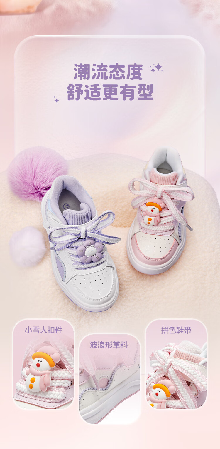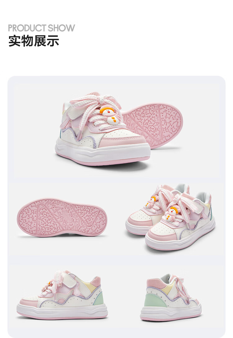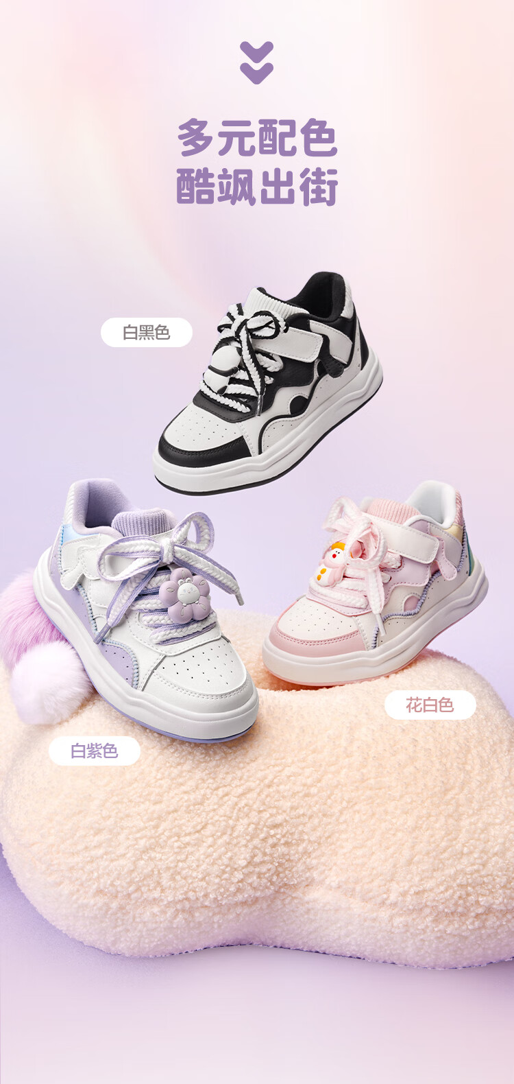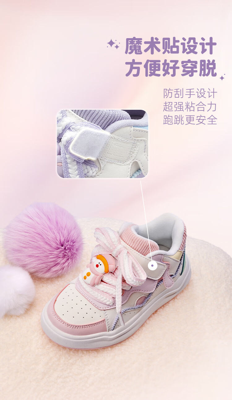 巴拉巴拉童鞋儿童板鞋女童秋冬中大加绒休闲鞋防滑甜美鞋子粉色潮 花白色调00301 30