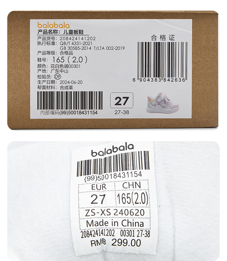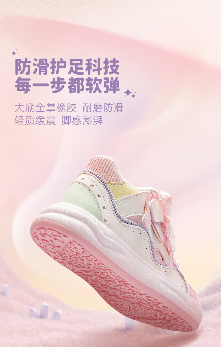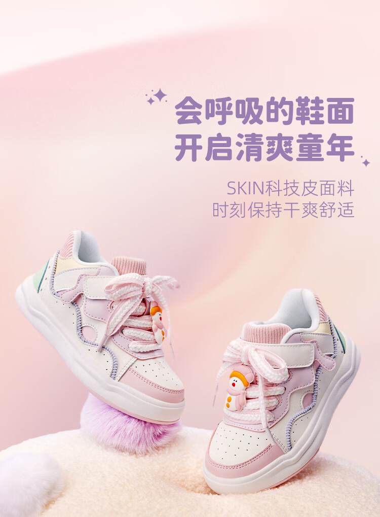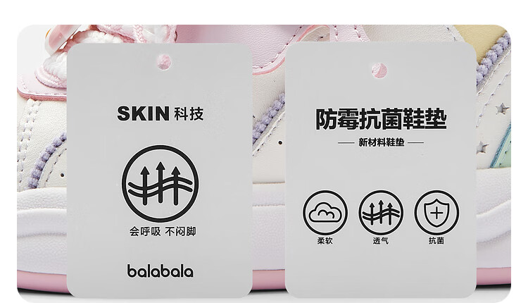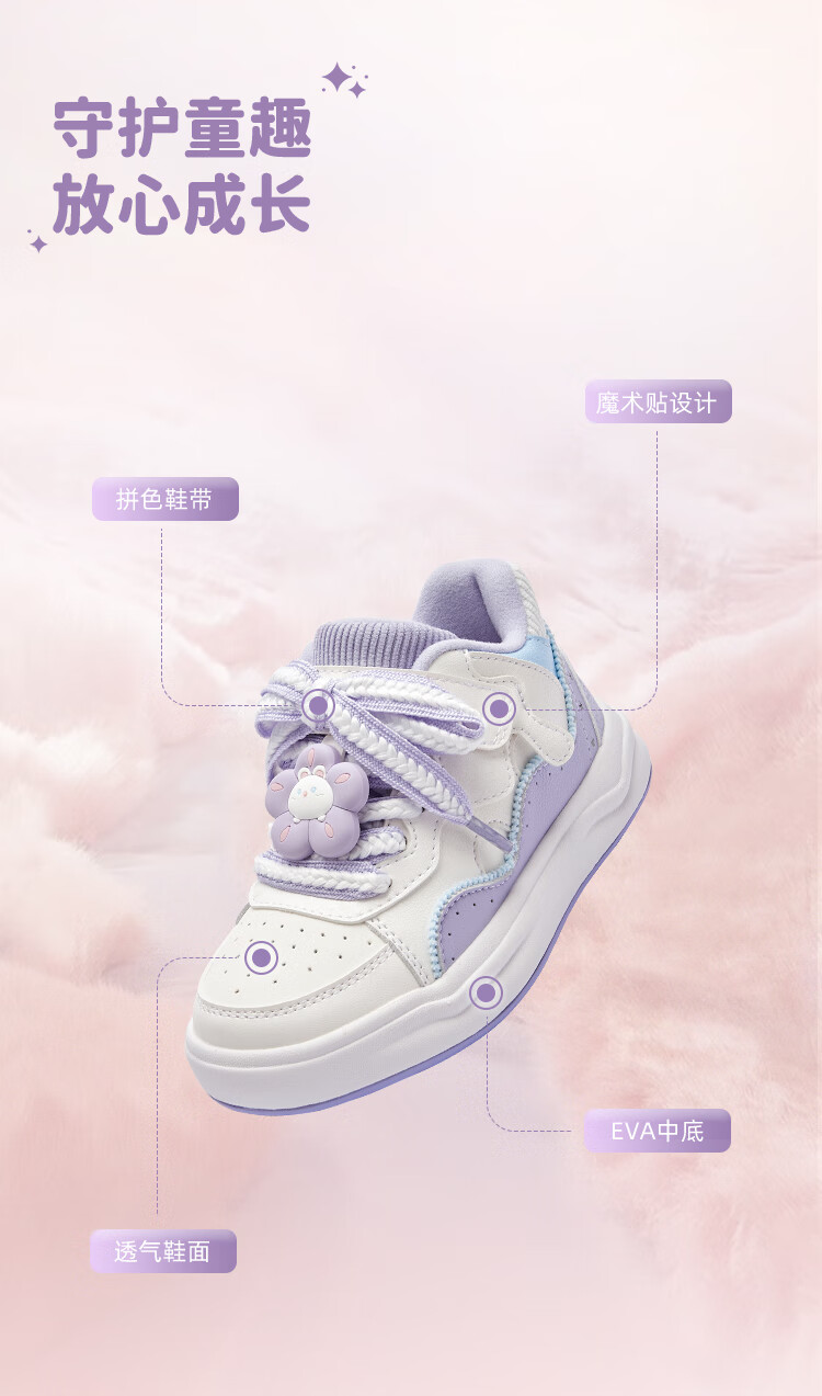 巴拉巴拉童鞋儿童板鞋女童秋冬中大加绒休闲鞋防滑甜美鞋子粉色潮 花白色调00301 30