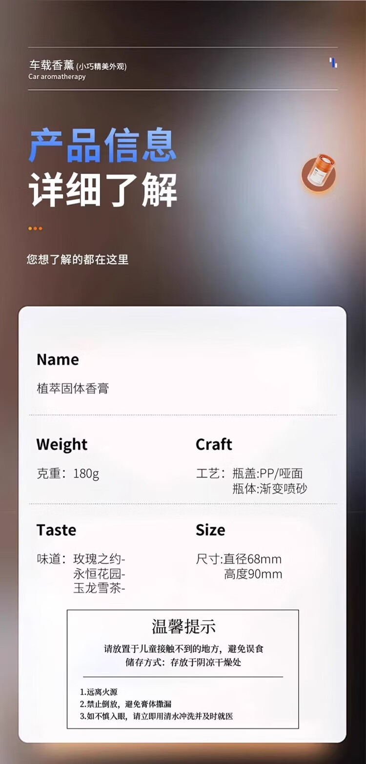 款新款持久留香车载香薰空气清新净化空气无火去异味汽车固体香膏 玉龙茶香180g