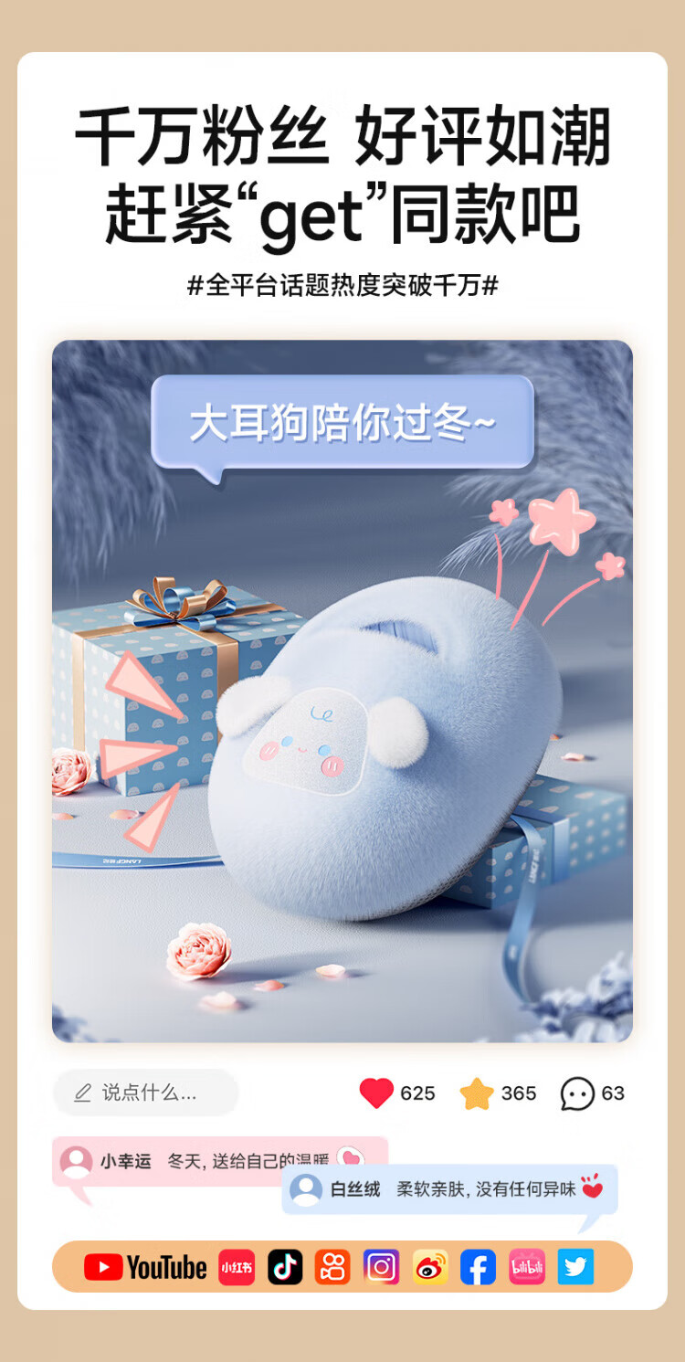 WCZ德国暖脚宝神器冬天保暖腿暖全身床上睡觉被窝专用无线充电热水袋 星黛兔