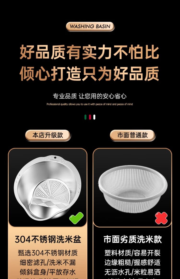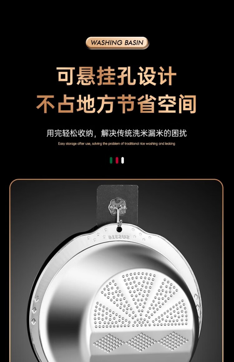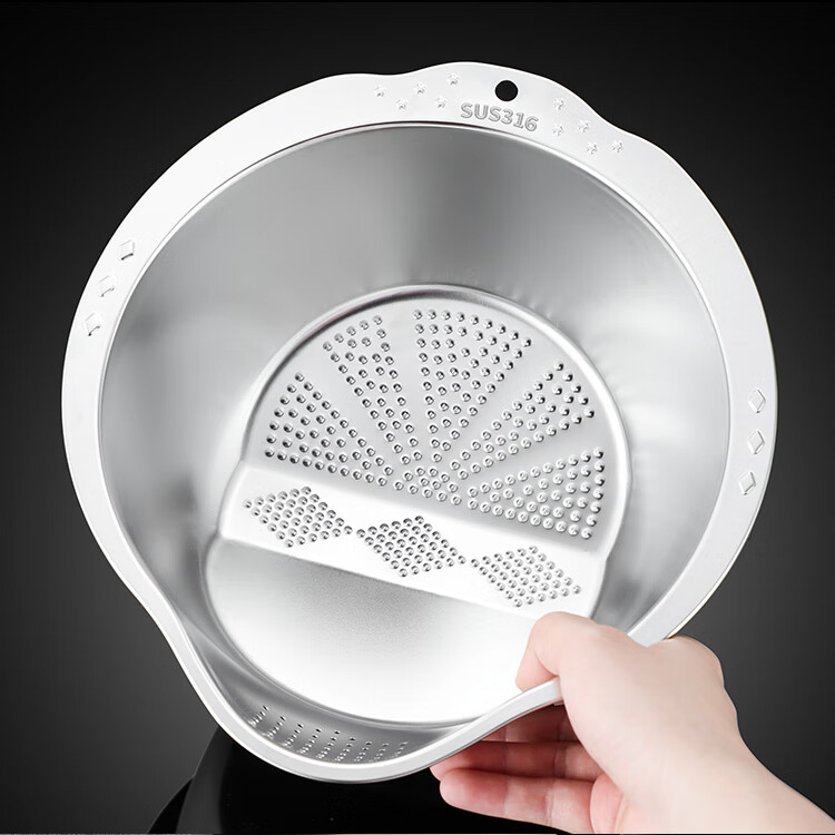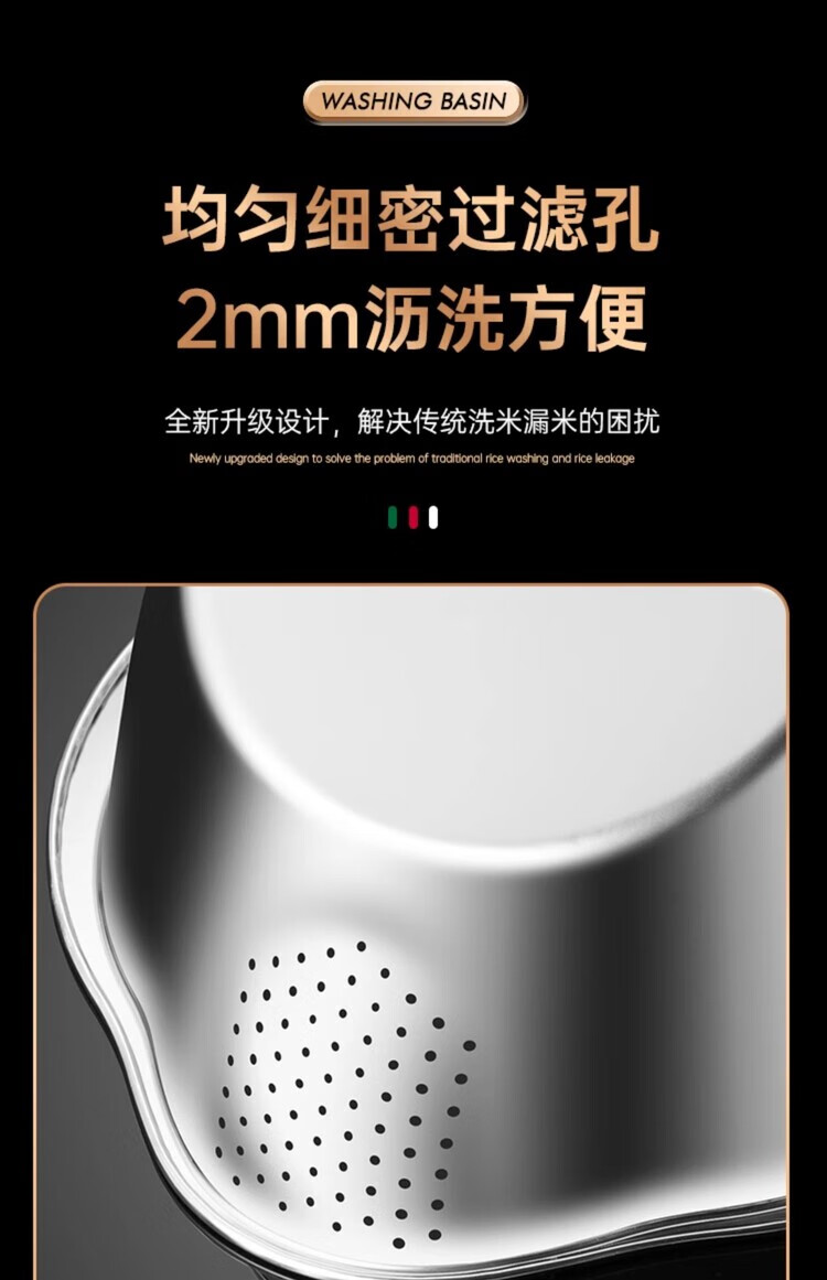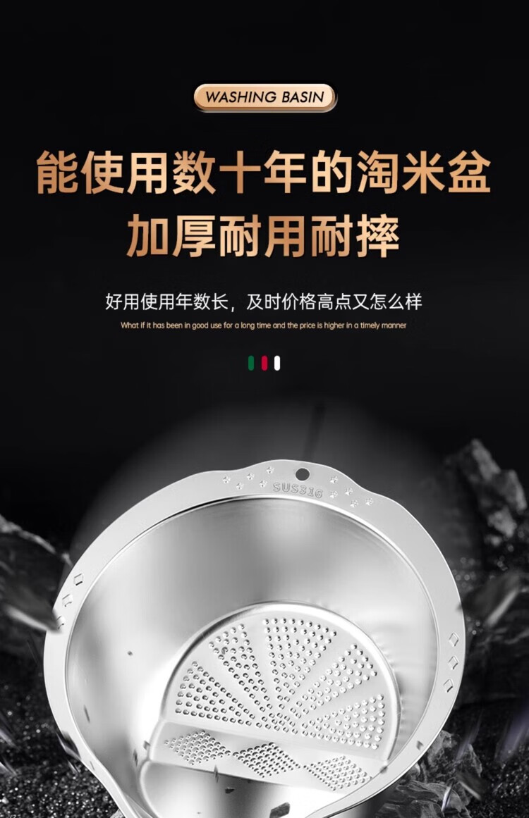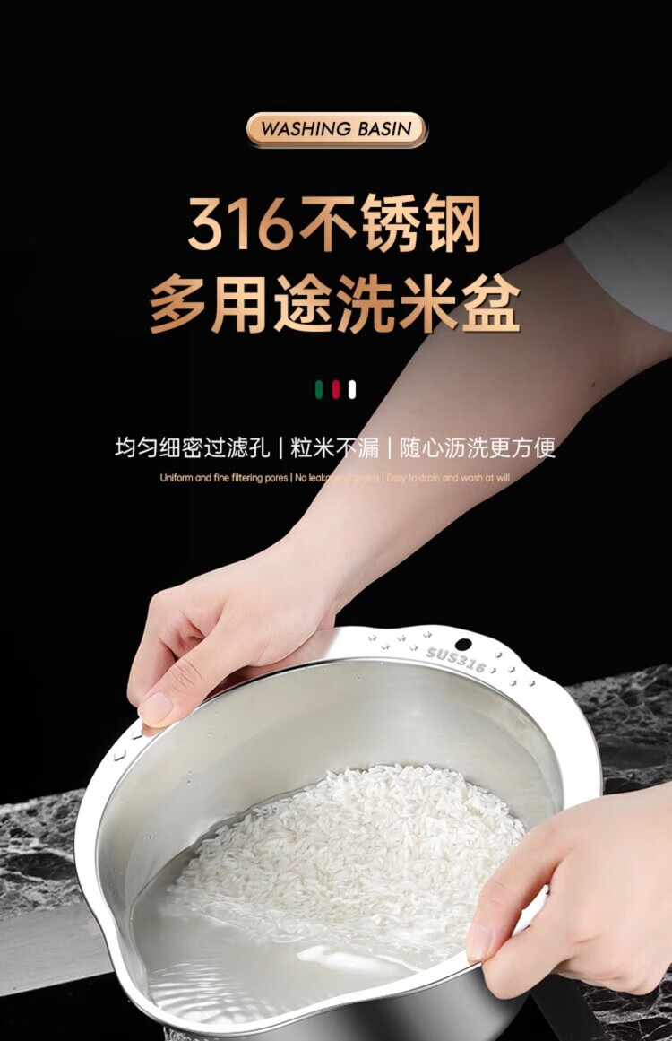 AILUKI日本不锈钢沥水篮淘米神器多功能洗米筛家用厨房洗菜盆食品级水盆 抗菌级316钢淘米盆【带挂钩】