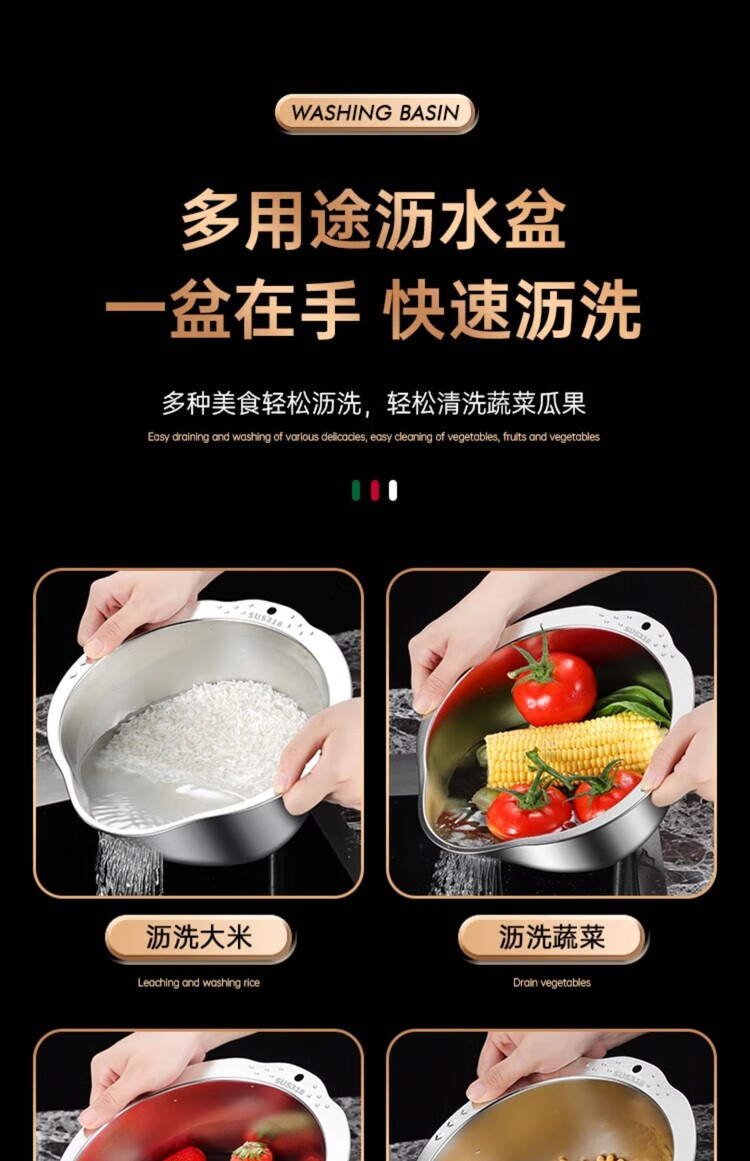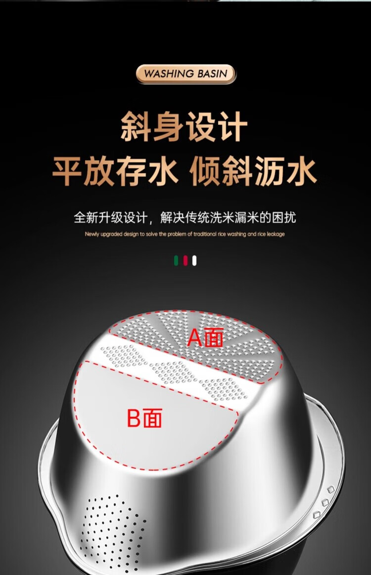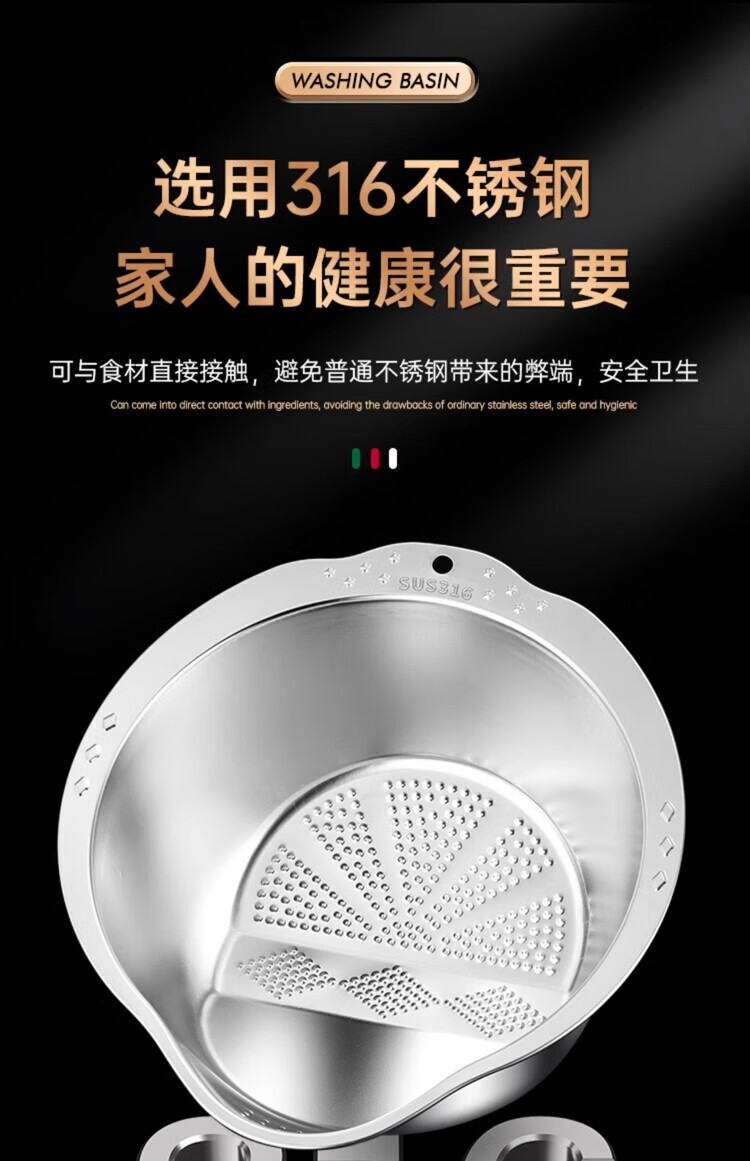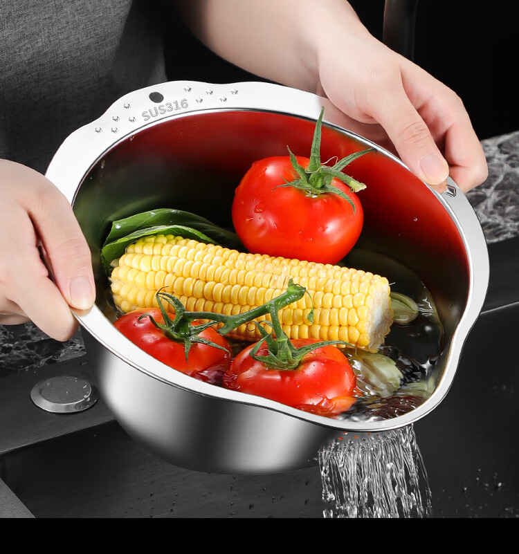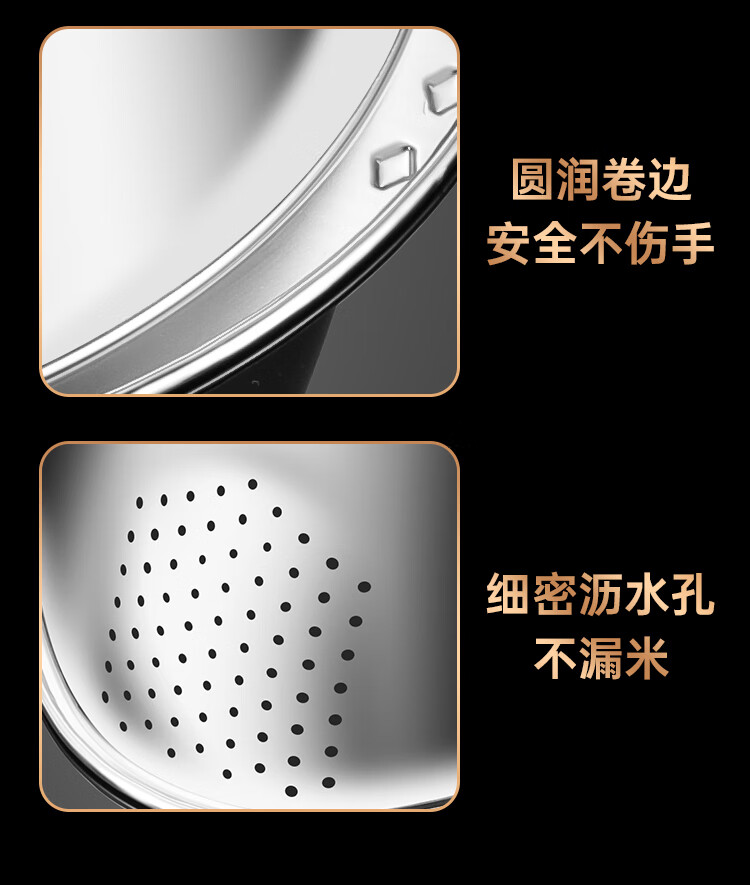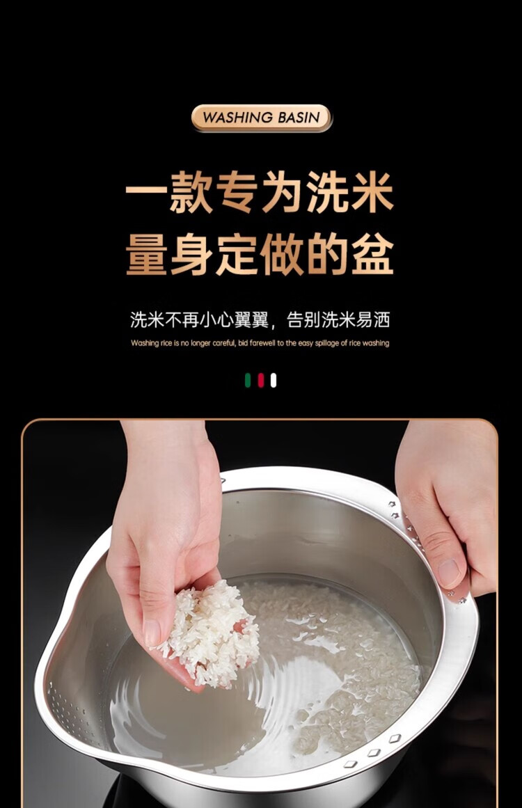 AILUKI日本不锈钢沥水篮淘米神器多功能洗米筛家用厨房洗菜盆食品级水盆 抗菌级316钢淘米盆【带挂钩】