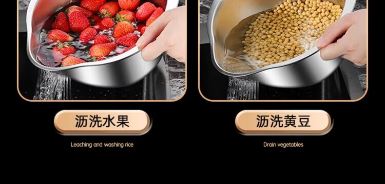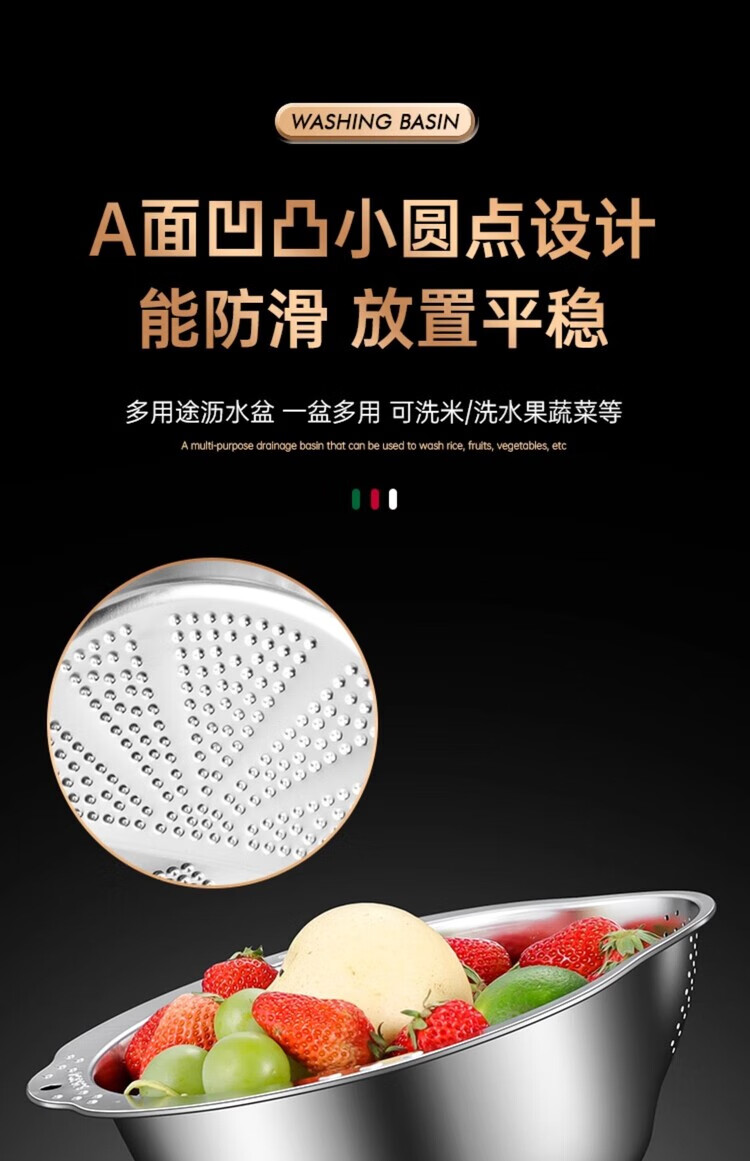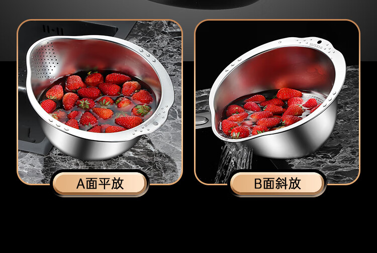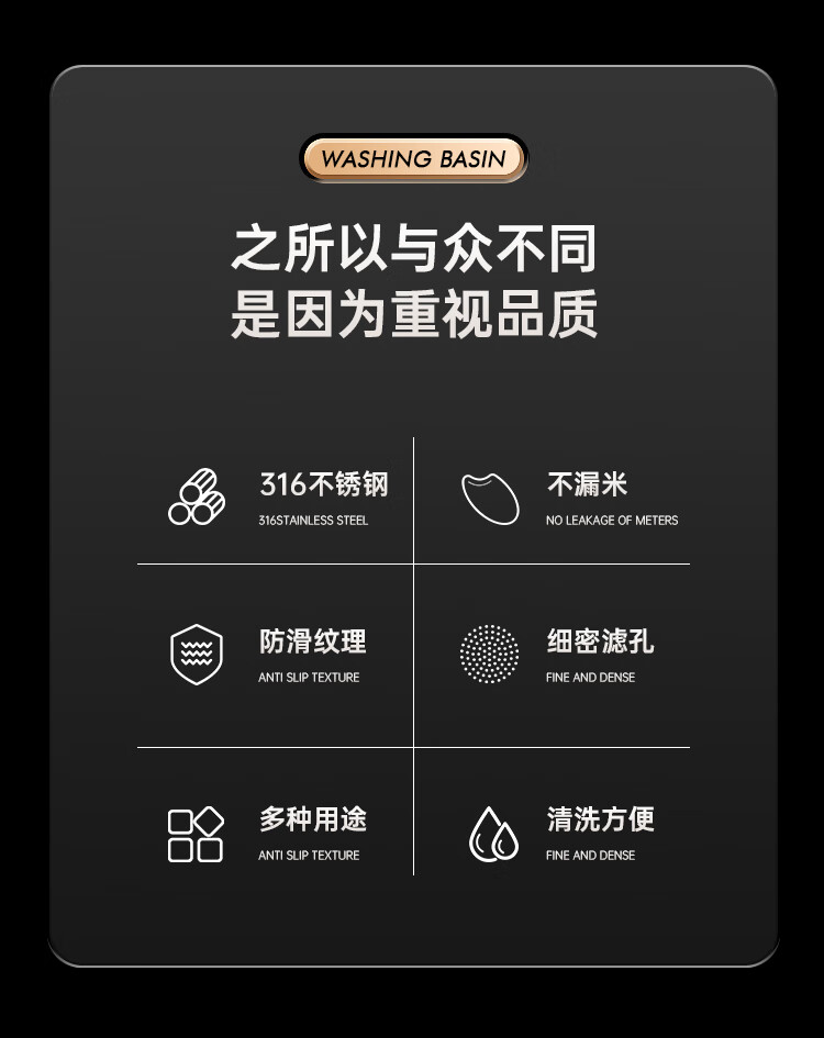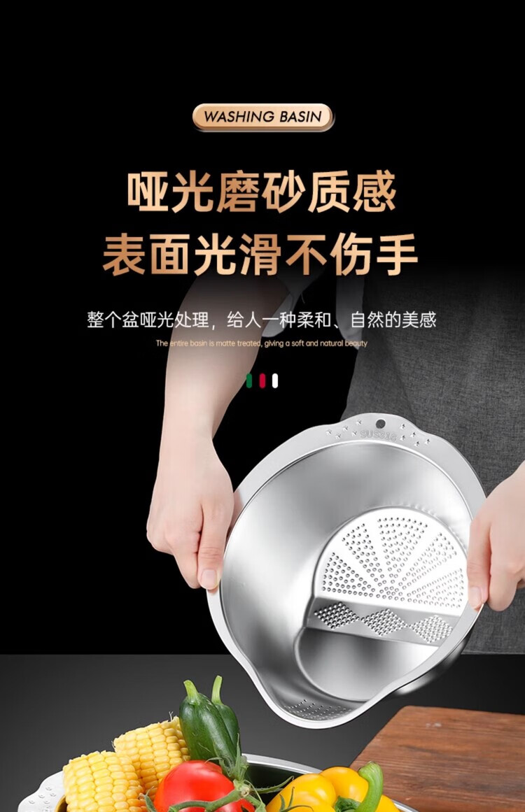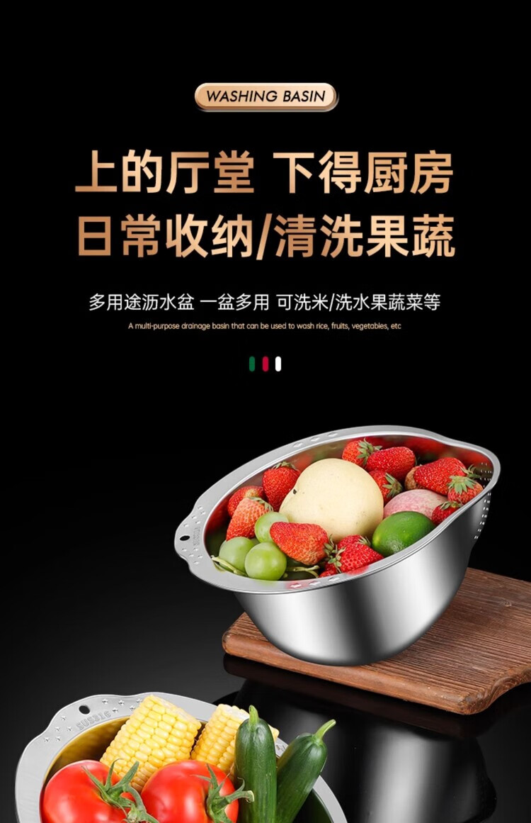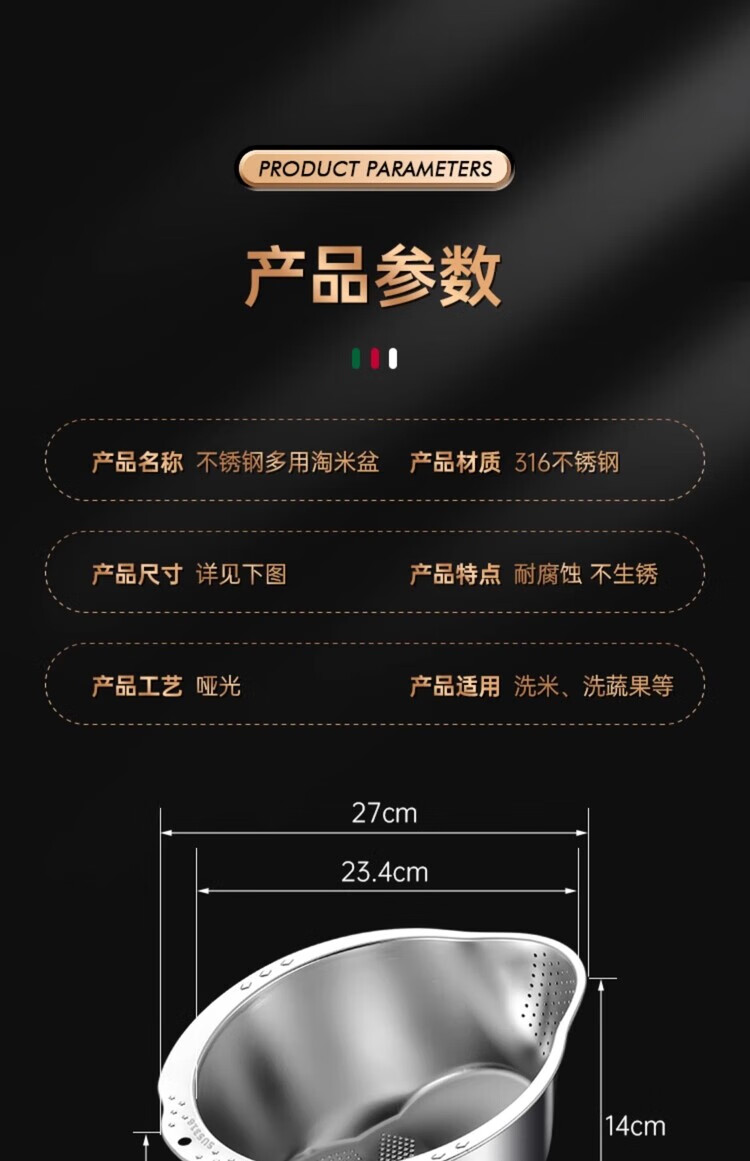 AILUKI日本不锈钢沥水篮淘米神器多功能洗米筛家用厨房洗菜盆食品级水盆 抗菌级316钢淘米盆【带挂钩】