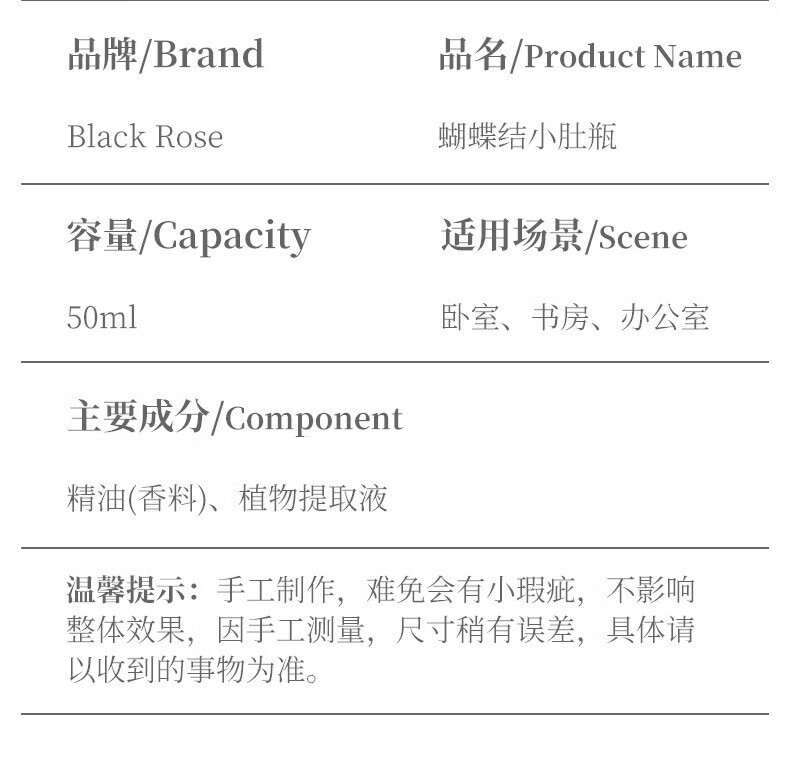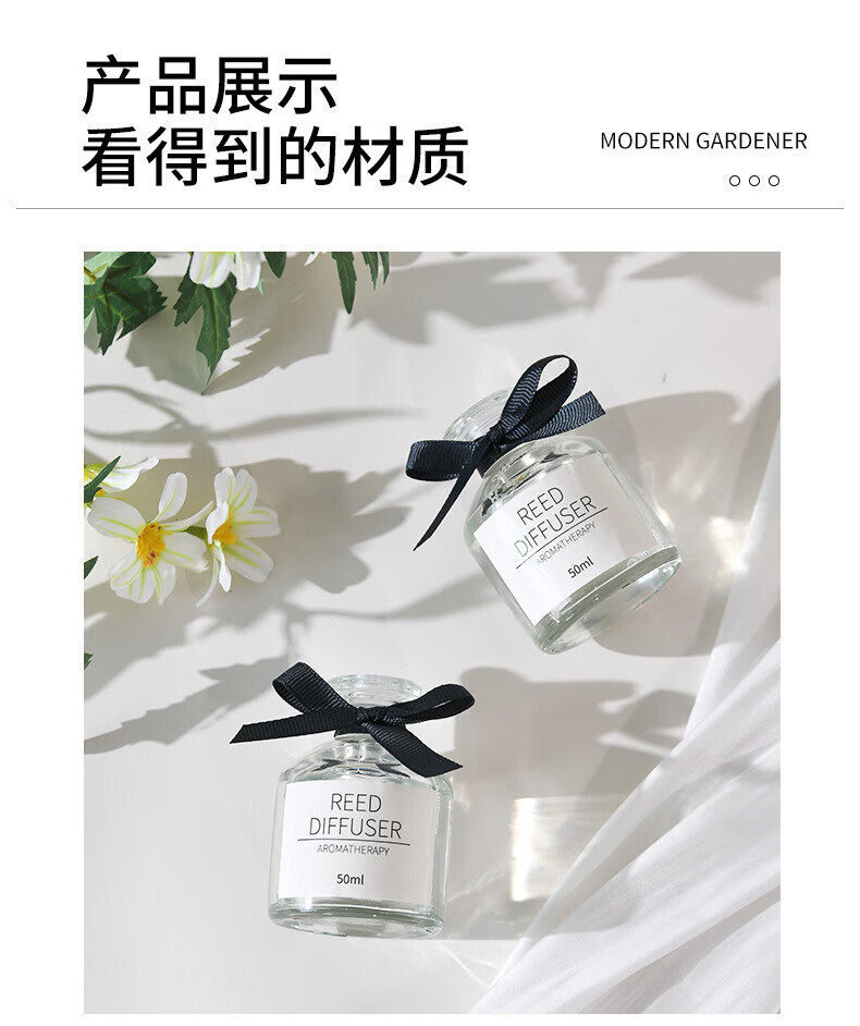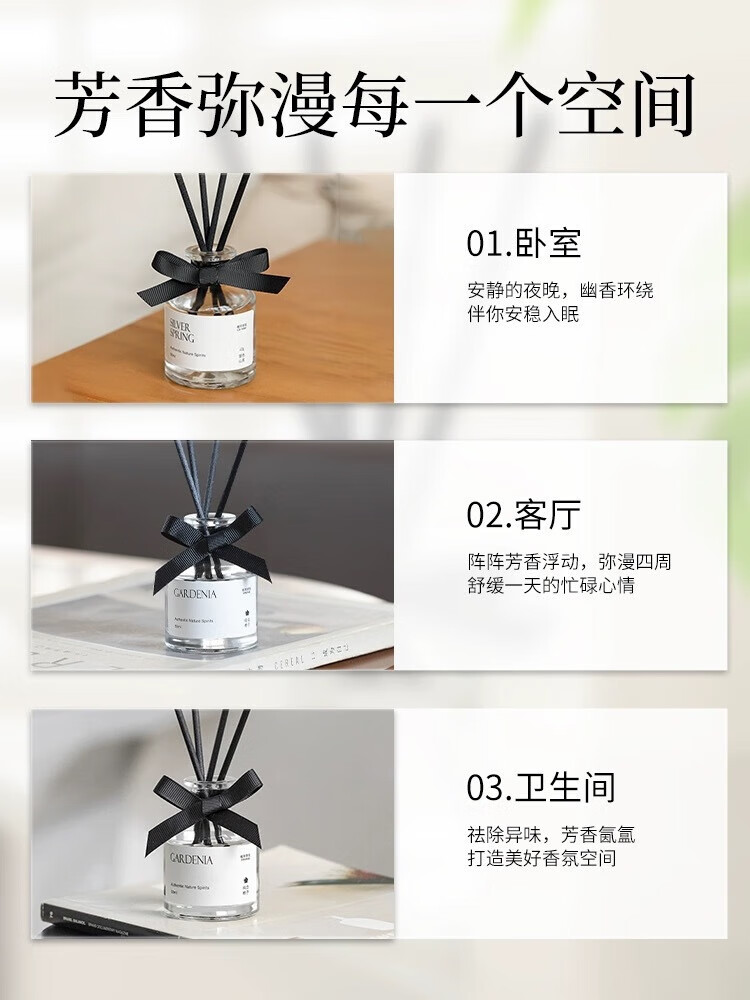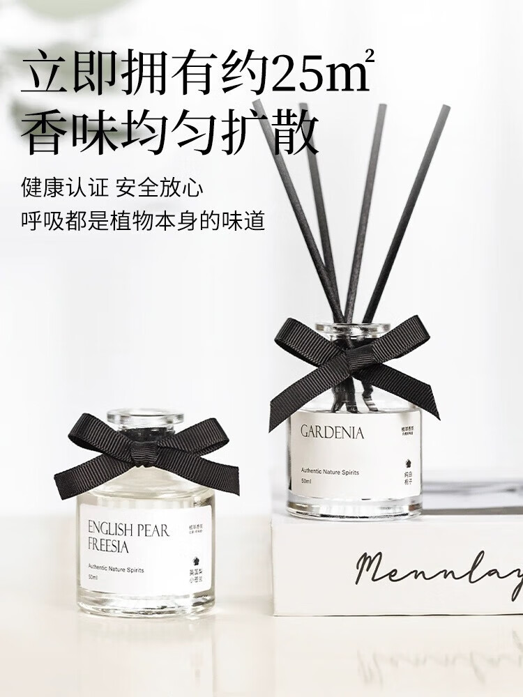 无火香薰蝴蝶结藤条持久清新 栀子花【玻璃瓶】 50ML