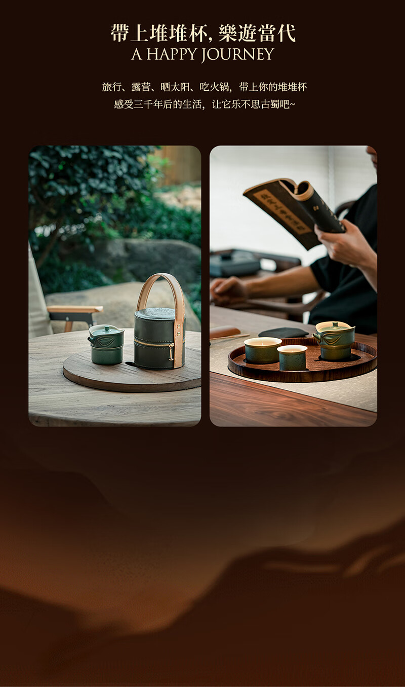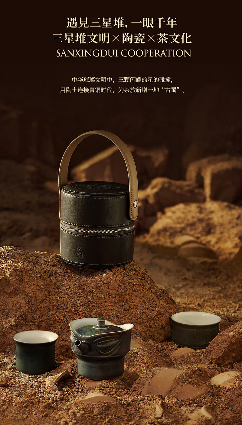 万仟堂 Edenus 旅行茶具高档套装 茶壶茶杯便携茶具包 三星堆联名快客杯