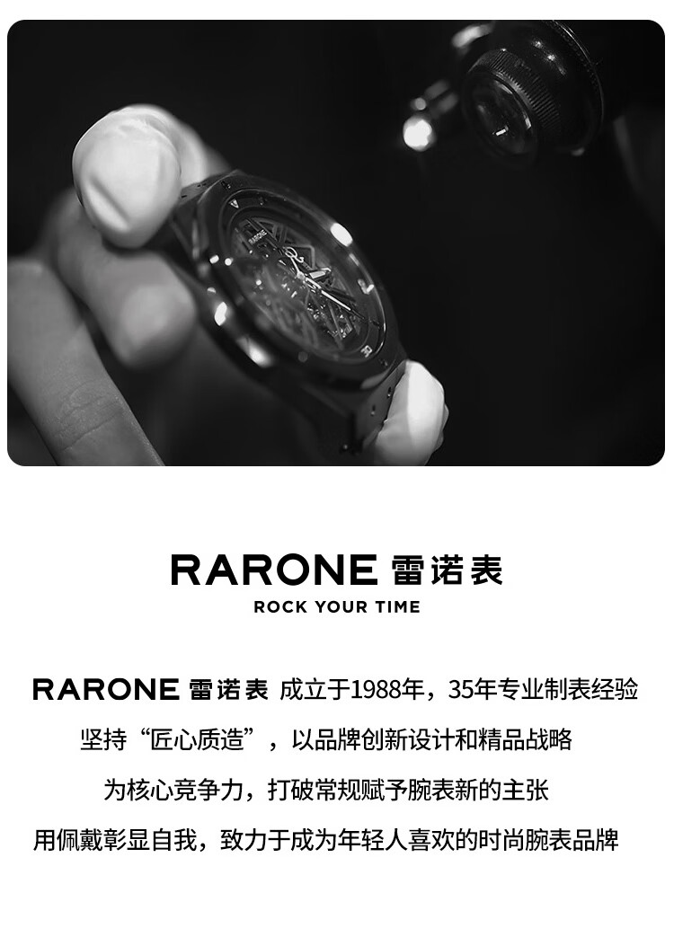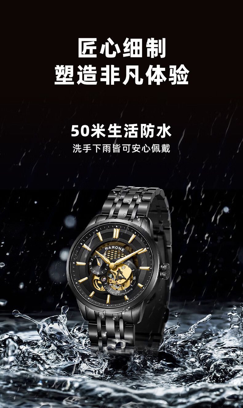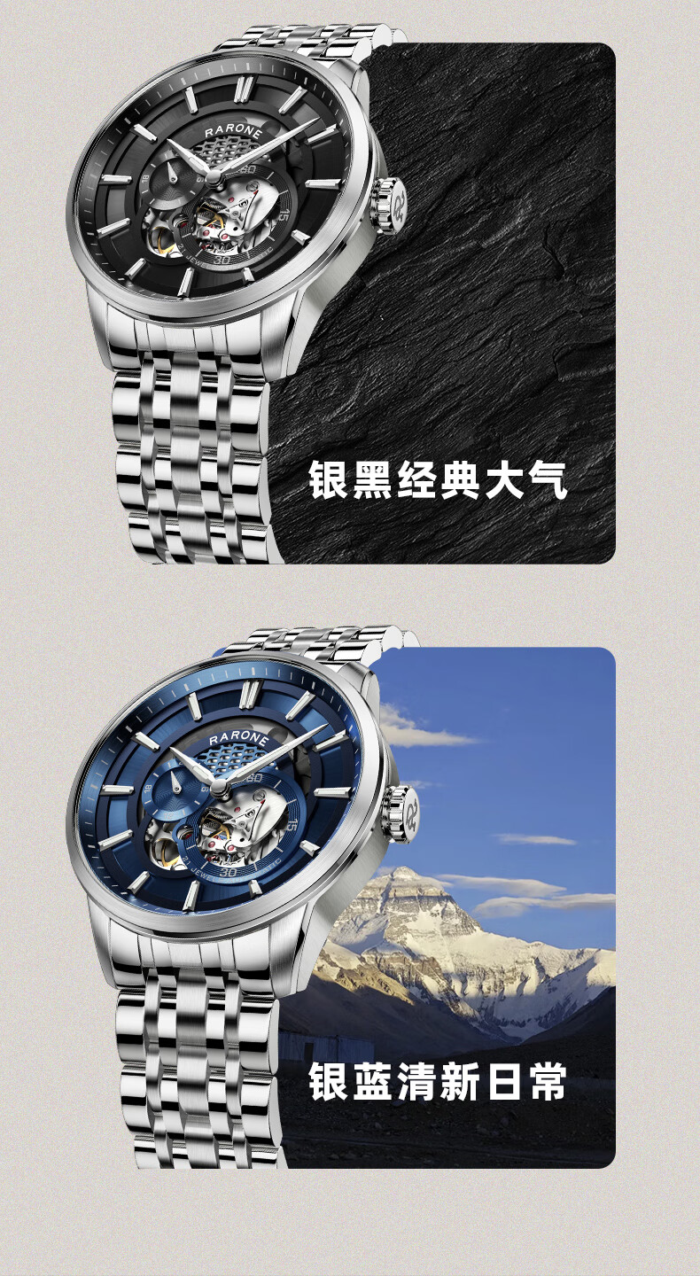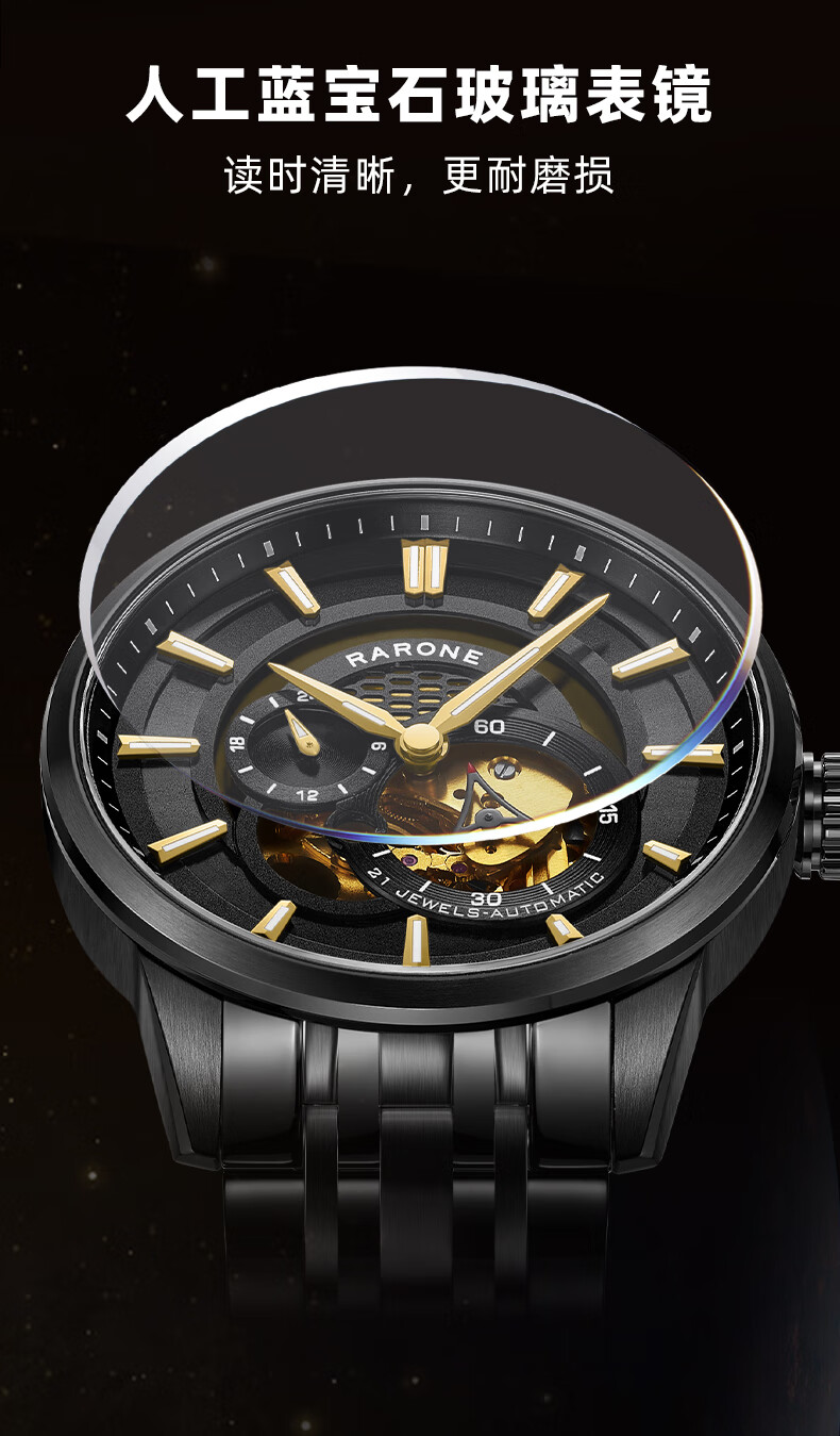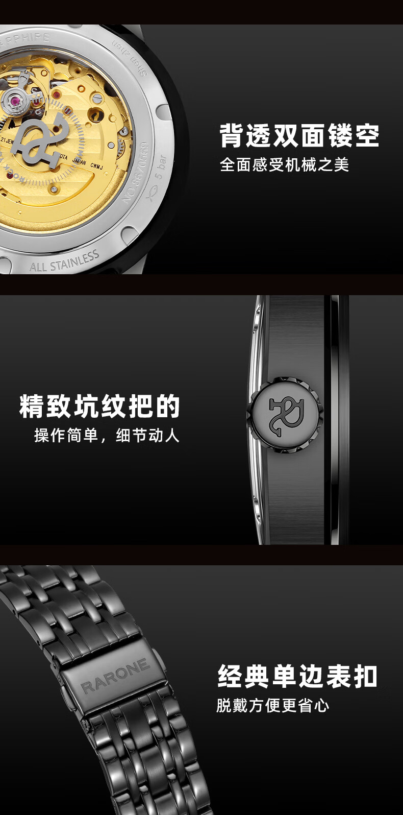 雷诺(RARONE)星际系列潮流镂空全自动男士机械表钢带腕表礼物