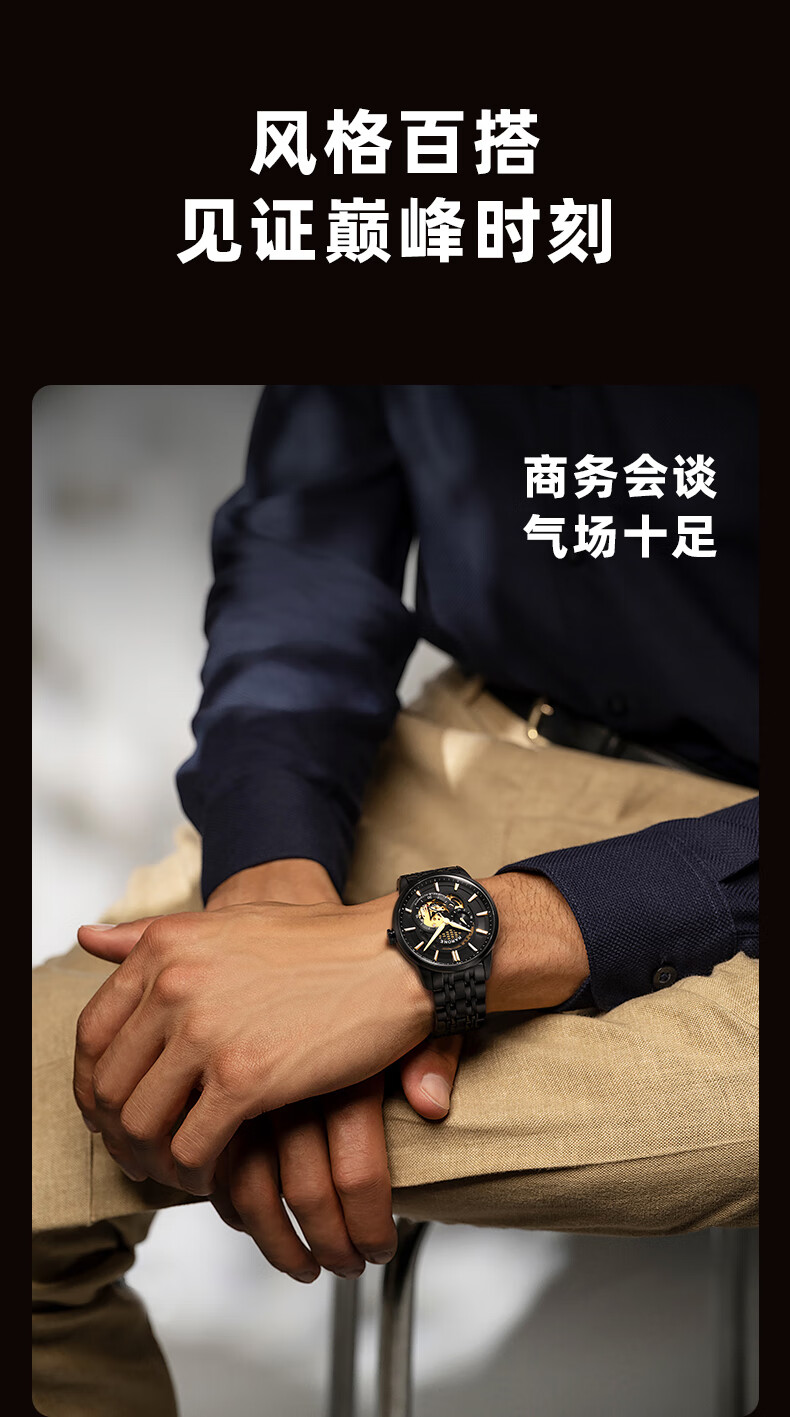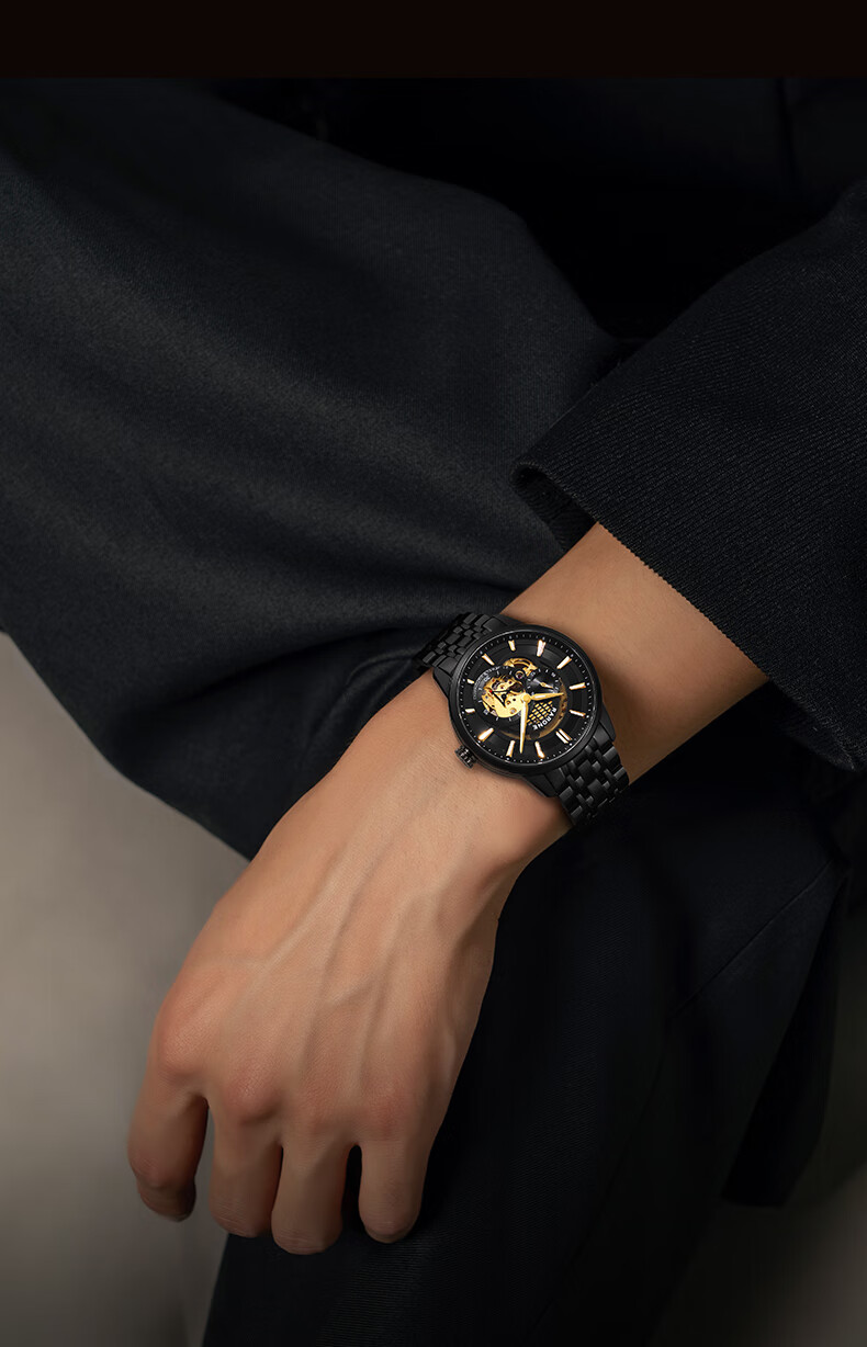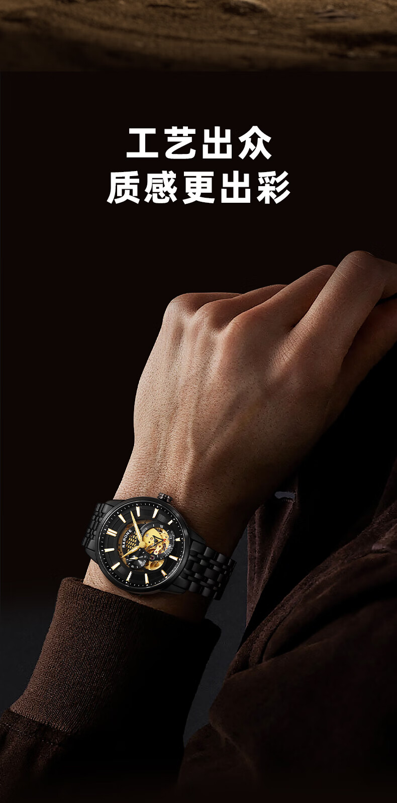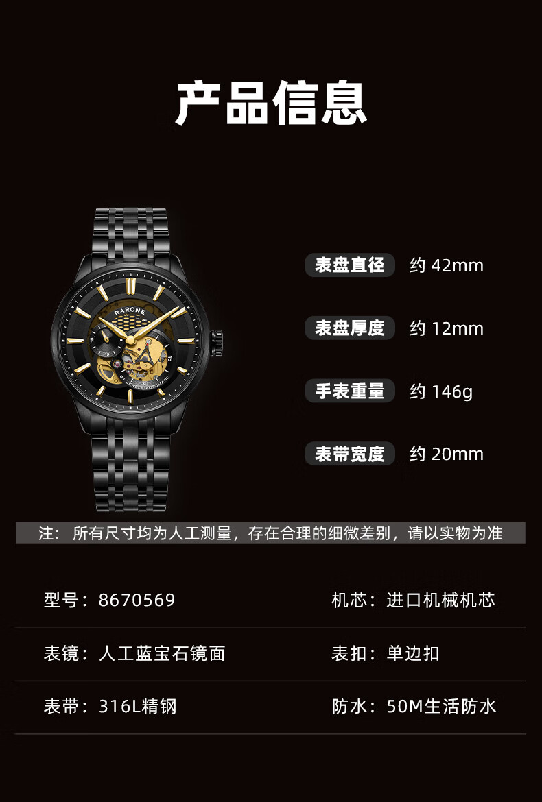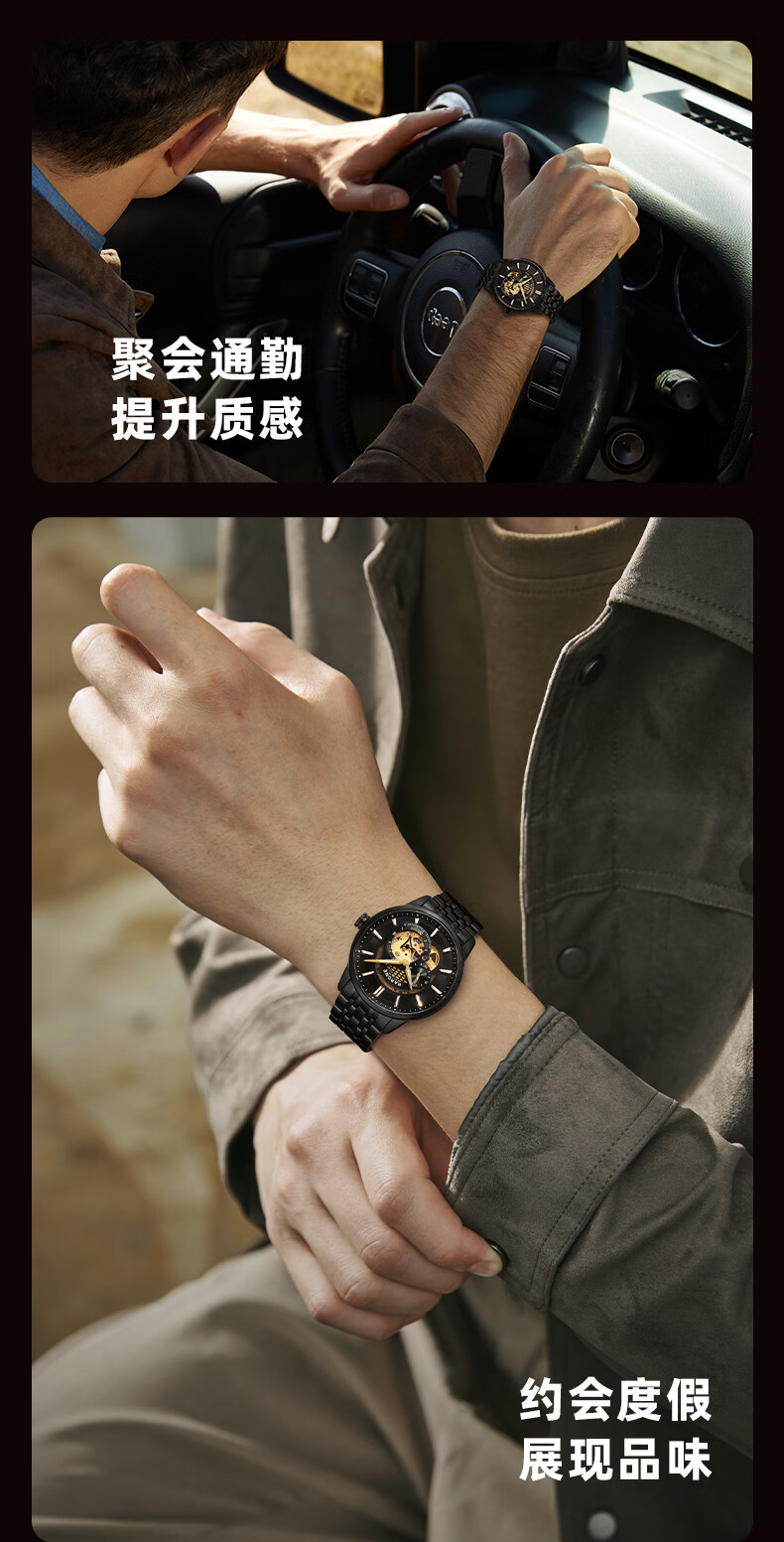 雷诺(RARONE)星际系列潮流镂空全自动男士机械表钢带腕表礼物