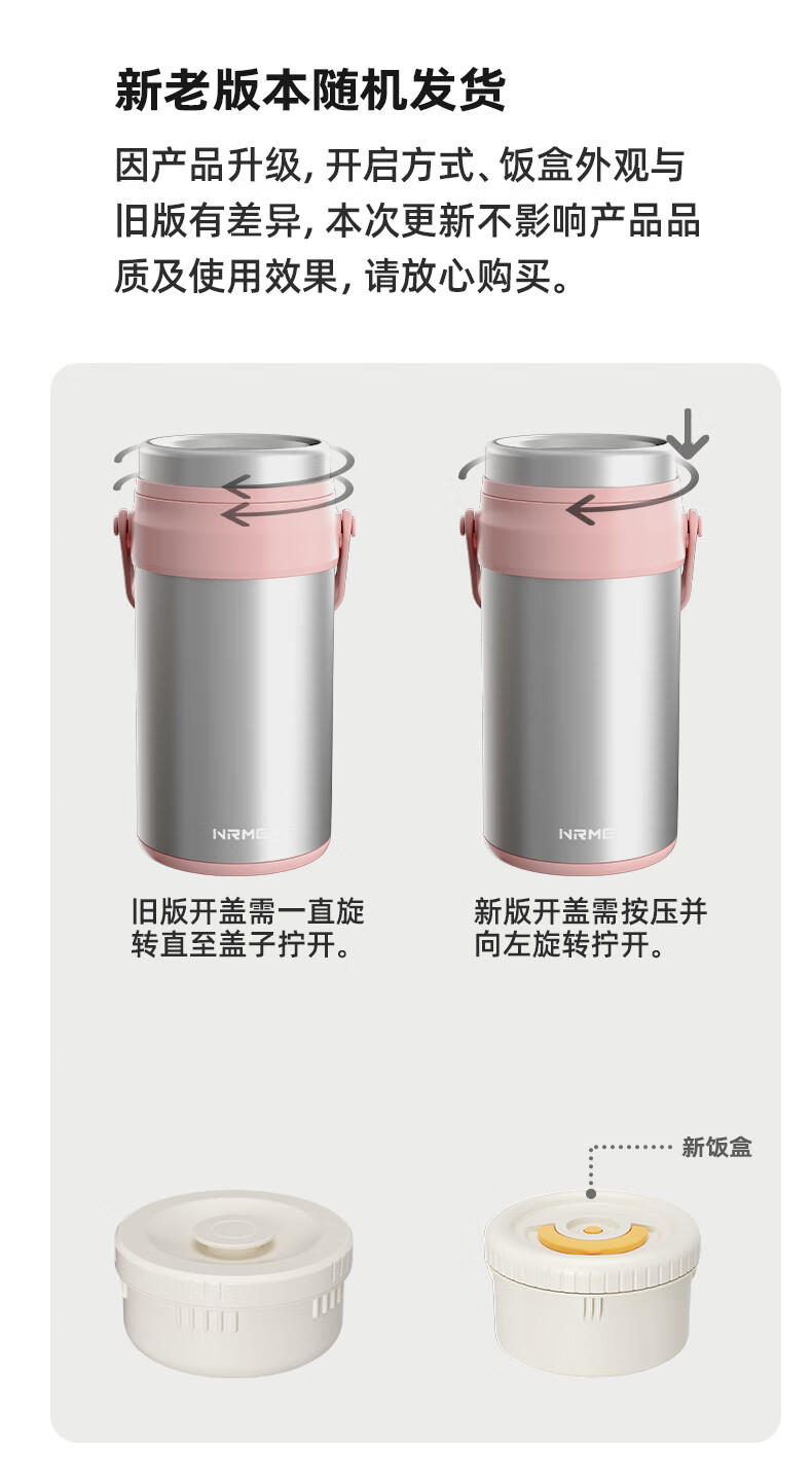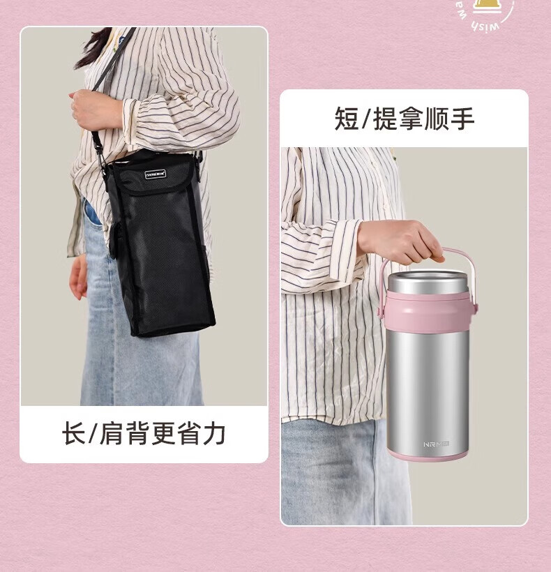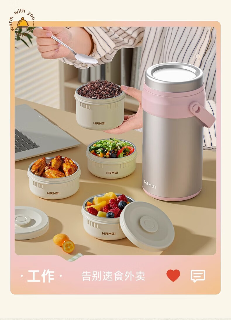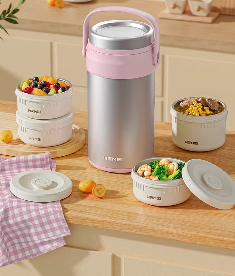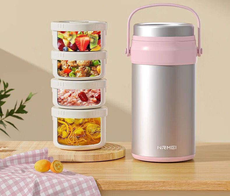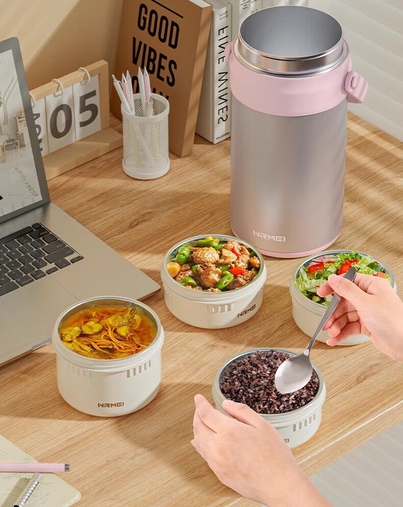 恩尔美(nRMEi)保温饭盒24小时超长保温提桶锅大容量学生专用上班族带饭多层饭盒 金银粉【316+保温袋+餐具】4层3L