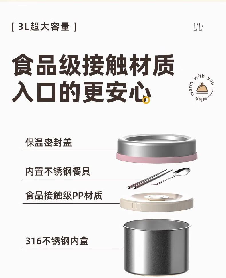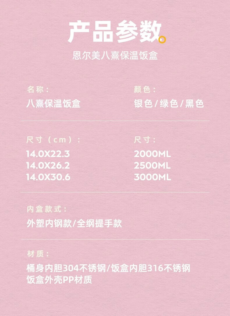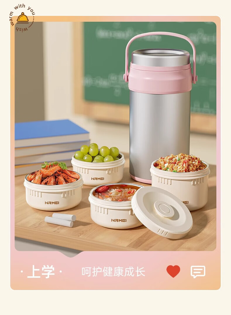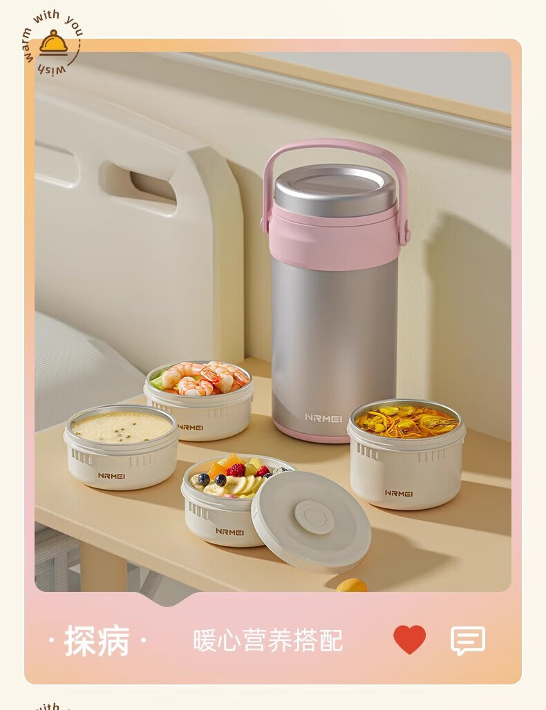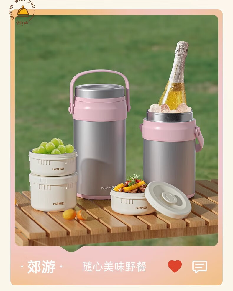 恩尔美(nRMEi)保温饭盒24小时超长保温提桶锅大容量学生专用上班族带饭多层饭盒 金银粉【316+保温袋+餐具】4层3L