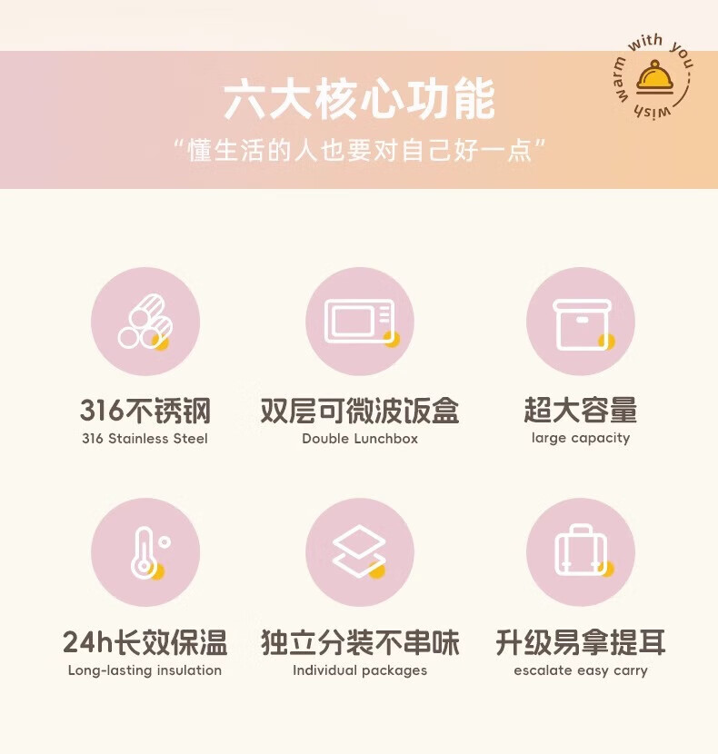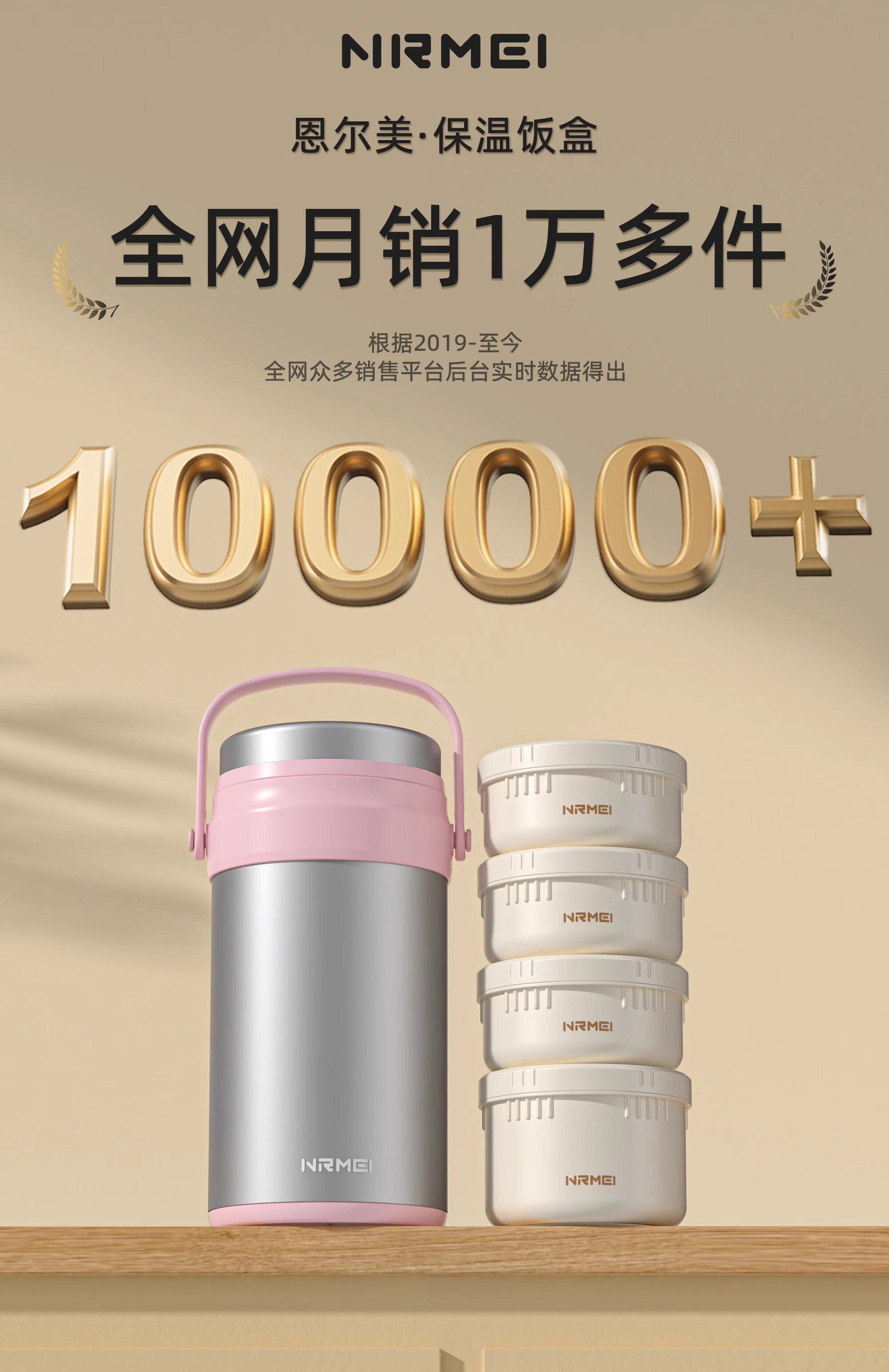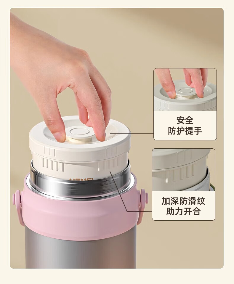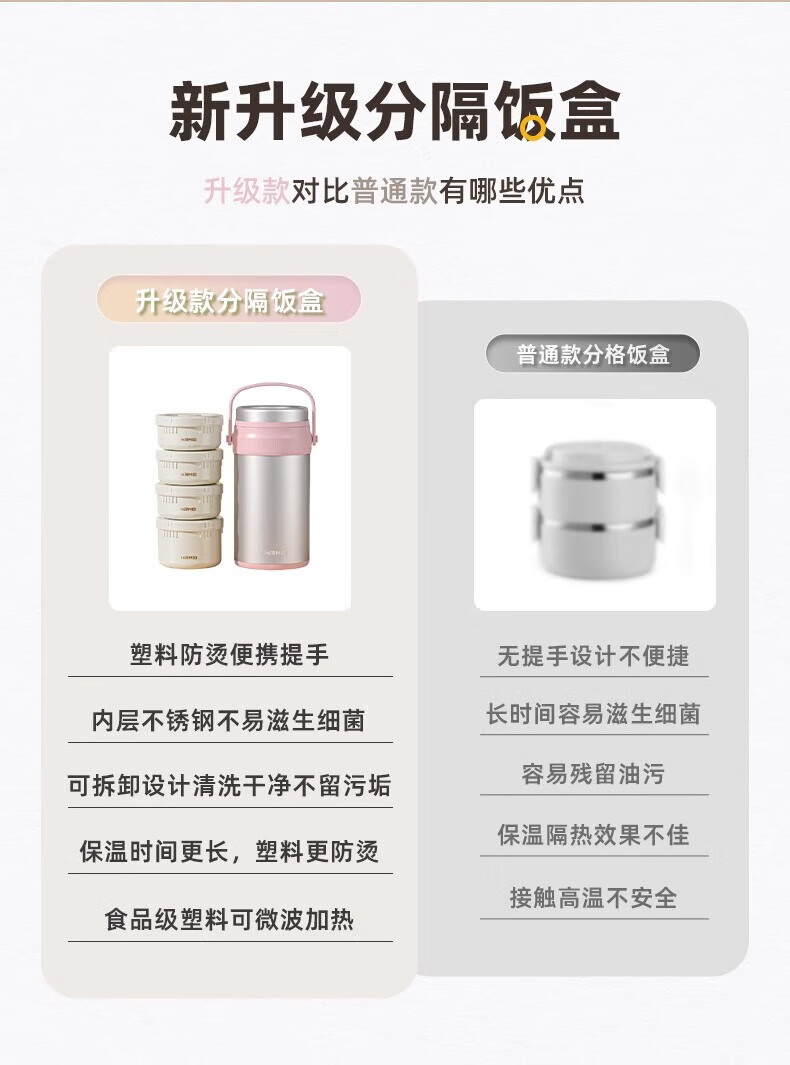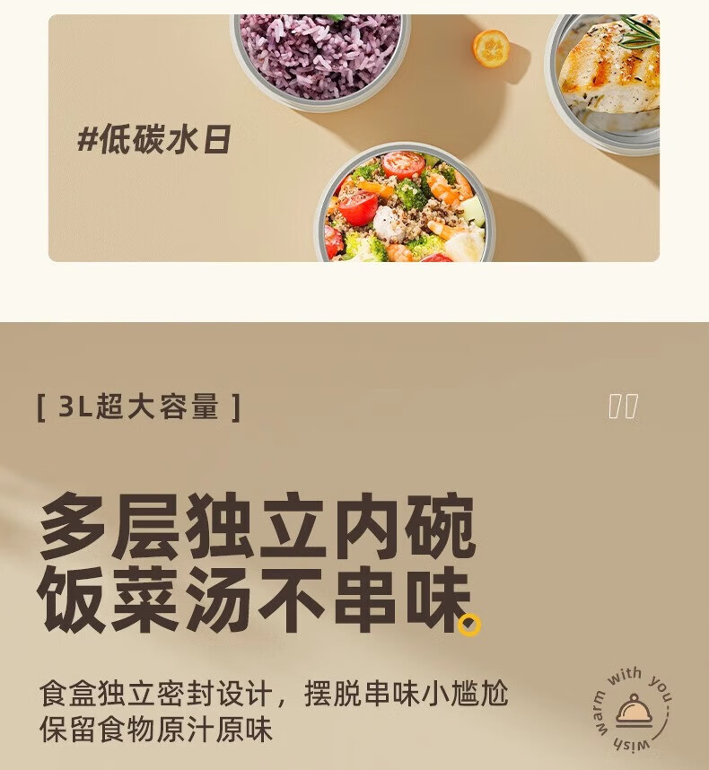 恩尔美(nRMEi)保温饭盒24小时超长保温提桶锅大容量学生专用上班族带饭多层饭盒 金银粉【316+保温袋+餐具】4层3L