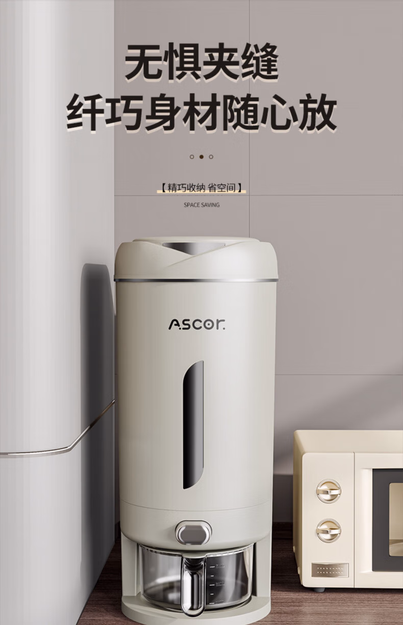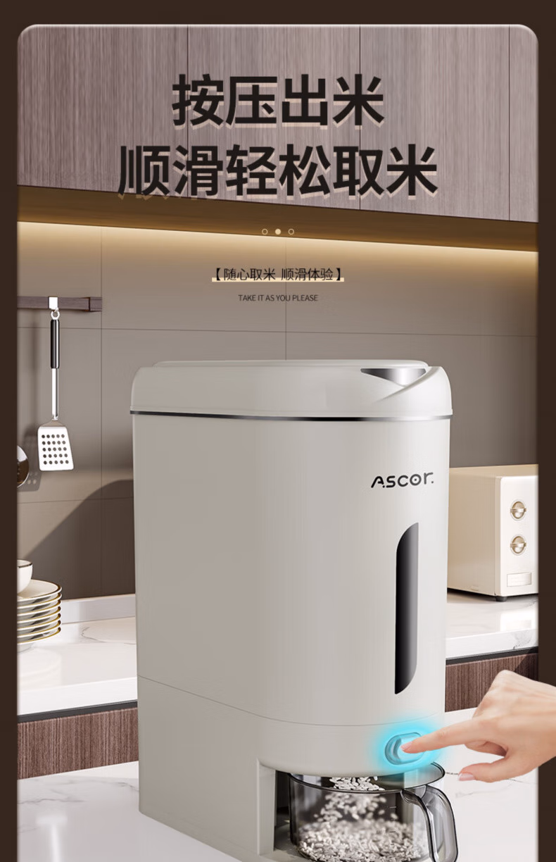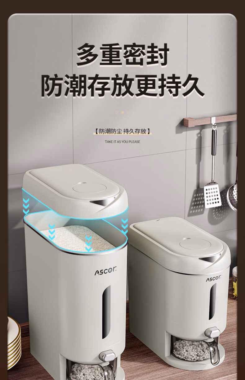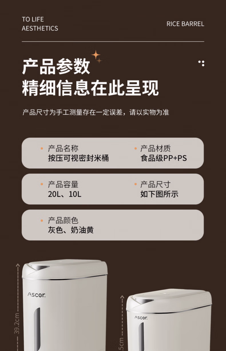 DEATKN日本高端米桶家用2025新款密封储米缸米箱防潮厨房大米储存容器装 奶油黄 装一键出米 送量米 10斤
