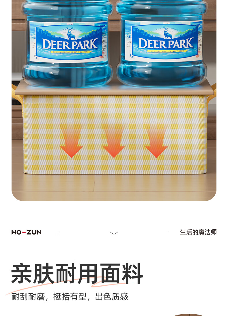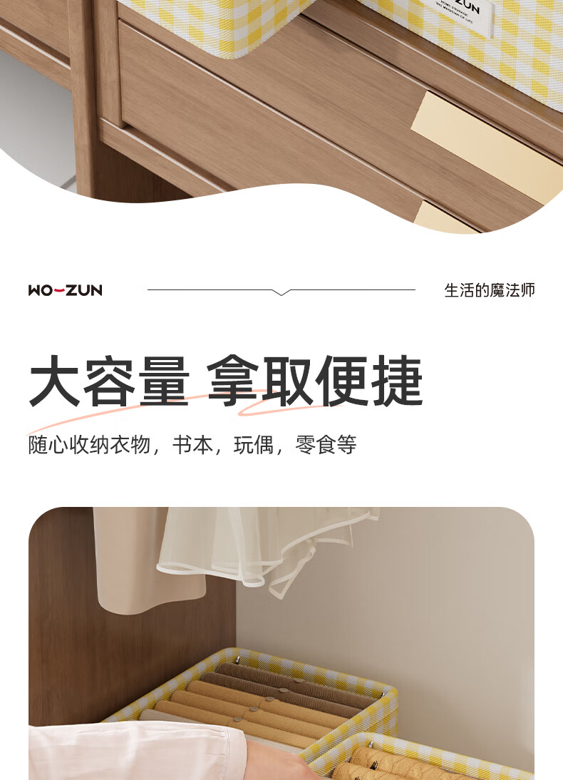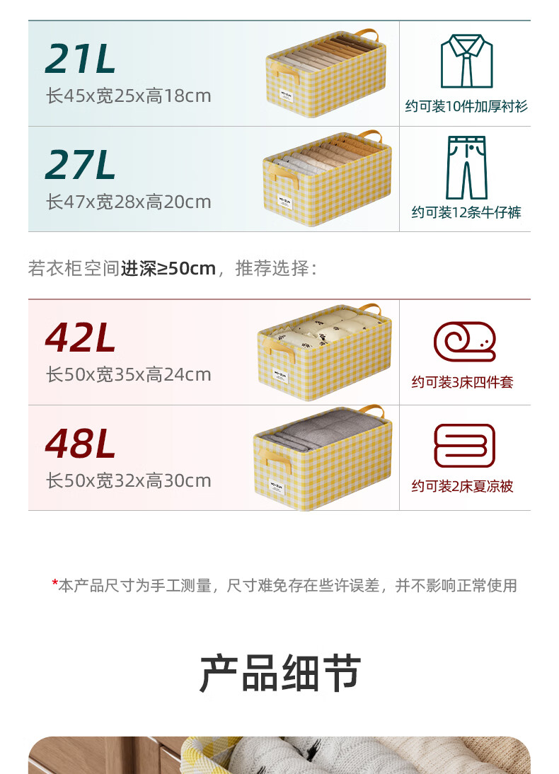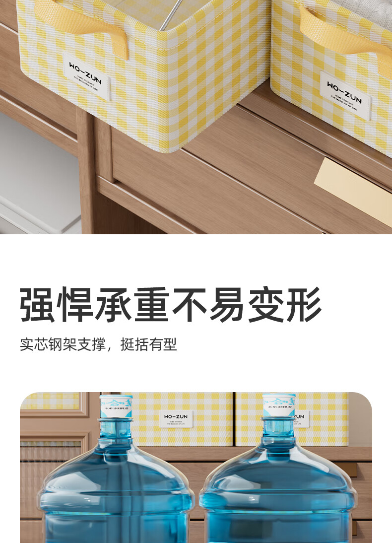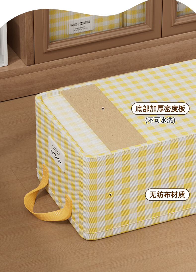 沃尊衣柜衣服收纳盒分层裤子收纳神器超大容量衣物收纳筐四件套整理盒 黄色格子-13L【实芯钢架】30*24*17cm
