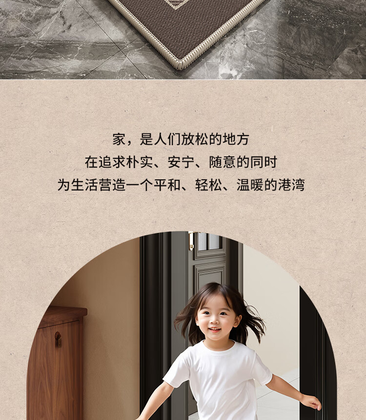 布迪思入户门地垫门口脚垫中古风高端防水防滑可裁剪玄关楼梯台阶垫 安愉【羊脂绒】 50*80CM